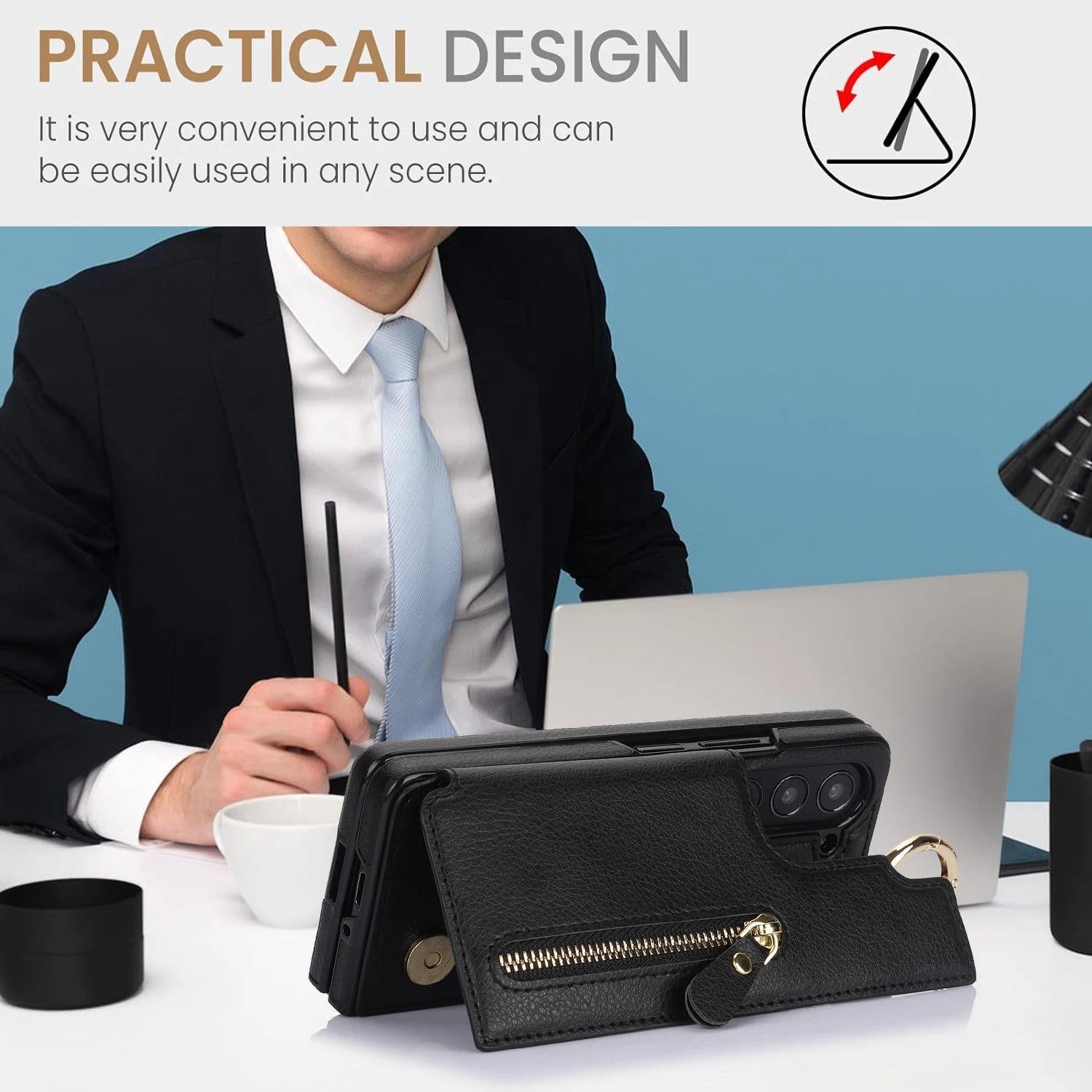 Folding Card Bag Finger Ring Leather Stand Case for Samsung Galaxy Z Fold 3 4 5 6 5G ZFold6 Zipper Wallet Business ZFold5 Cover