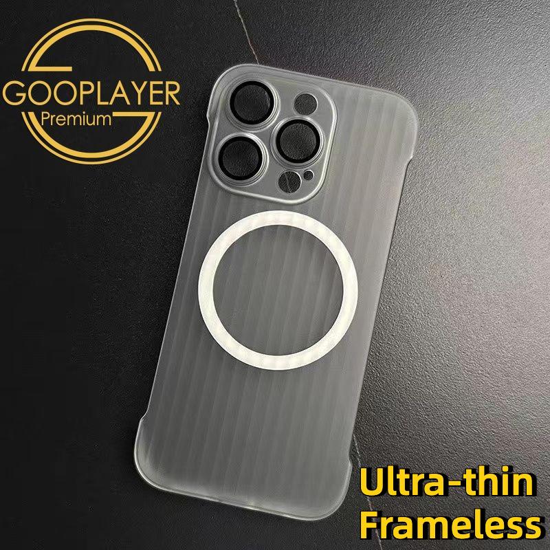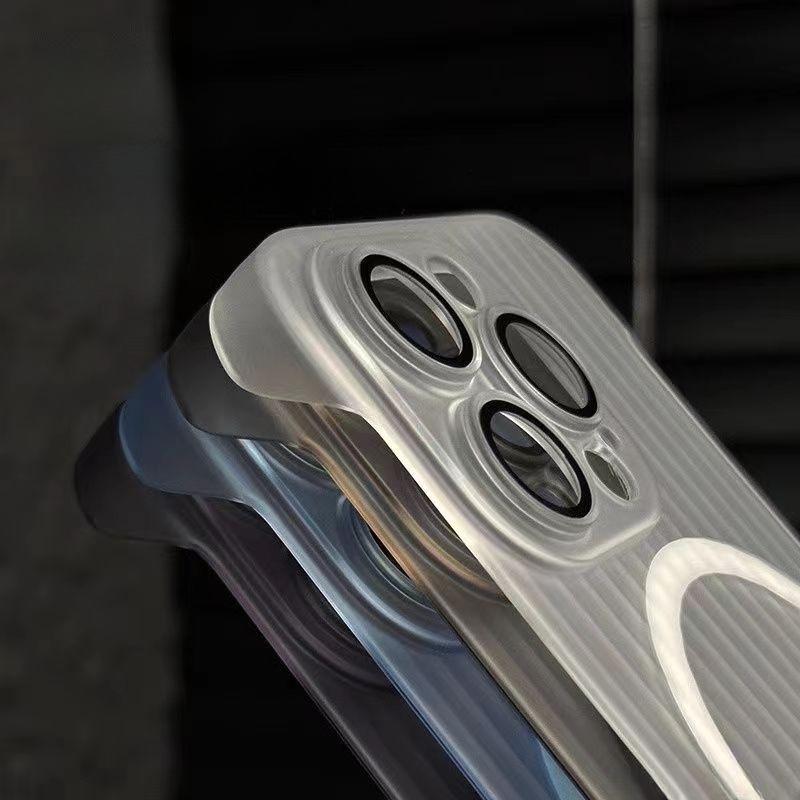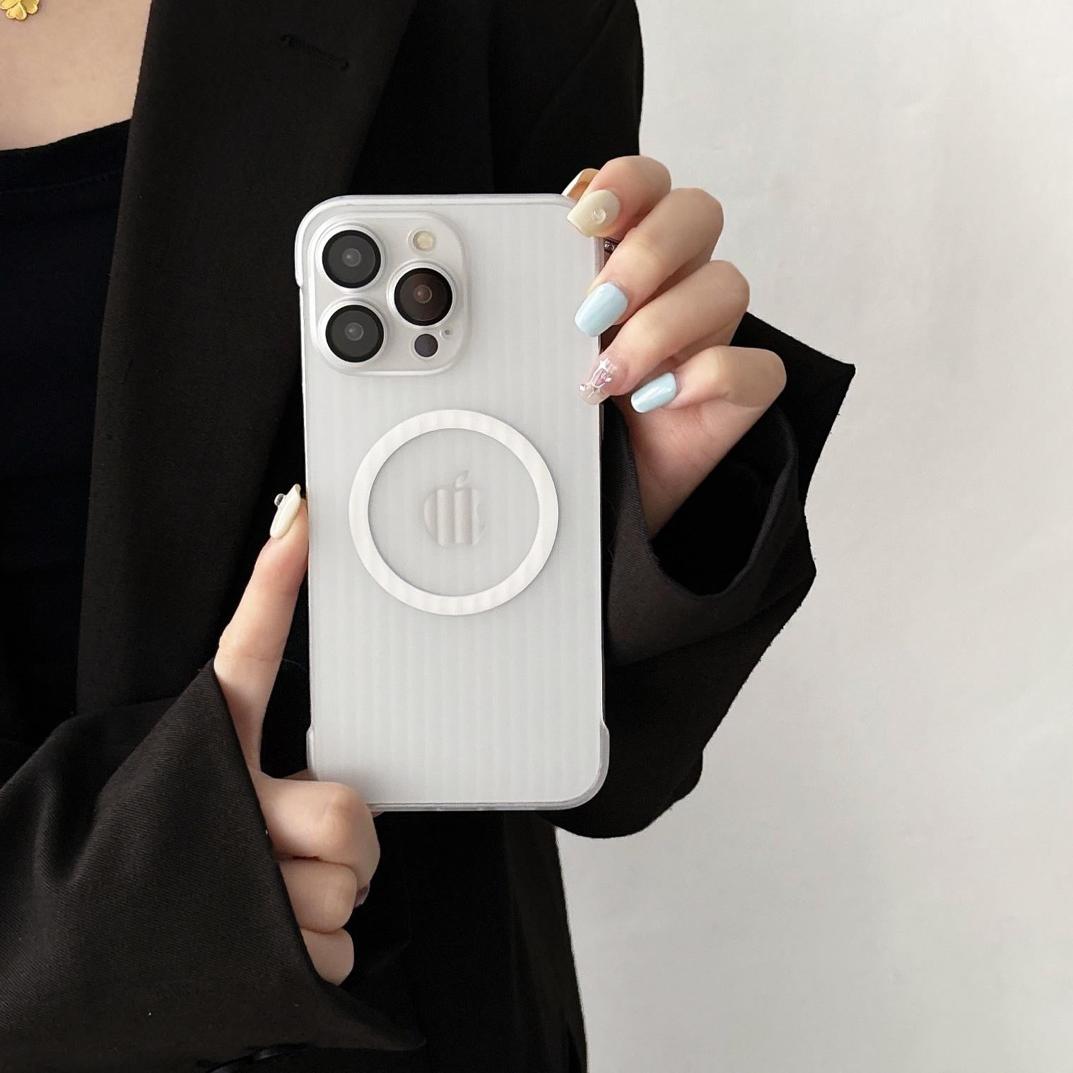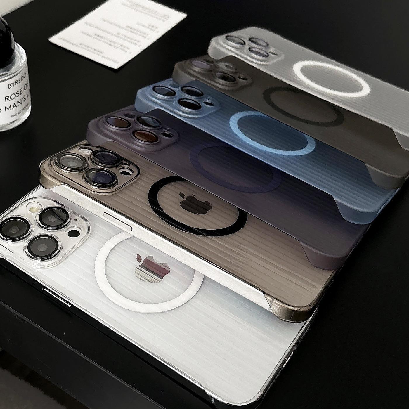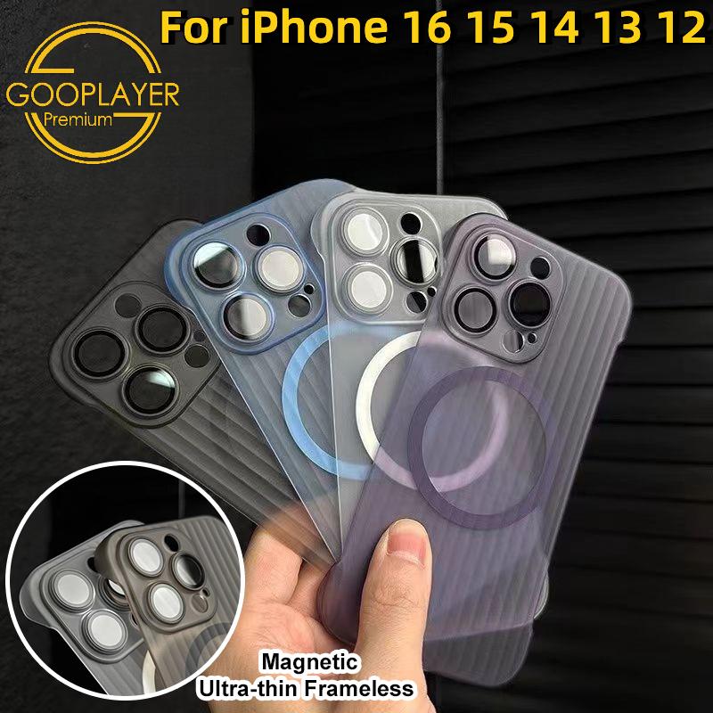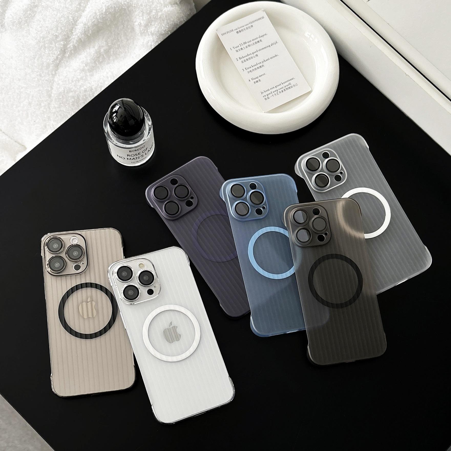 For iPhone 16 15 14 13 12 Pro Max Phone Case, Ultrathin Frameless Corrugated Grille Magnetic PC Hard for Magsafe Support Wireless Charging Matte Frozen Fog Clear High Transparency Full Cover