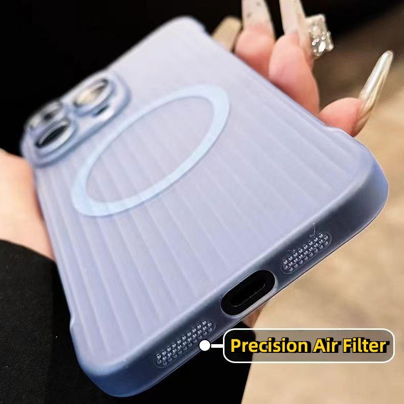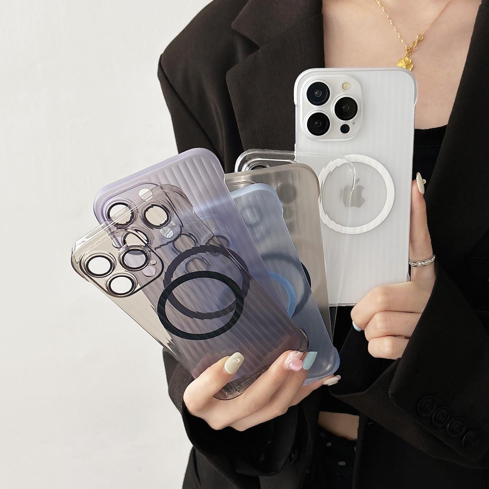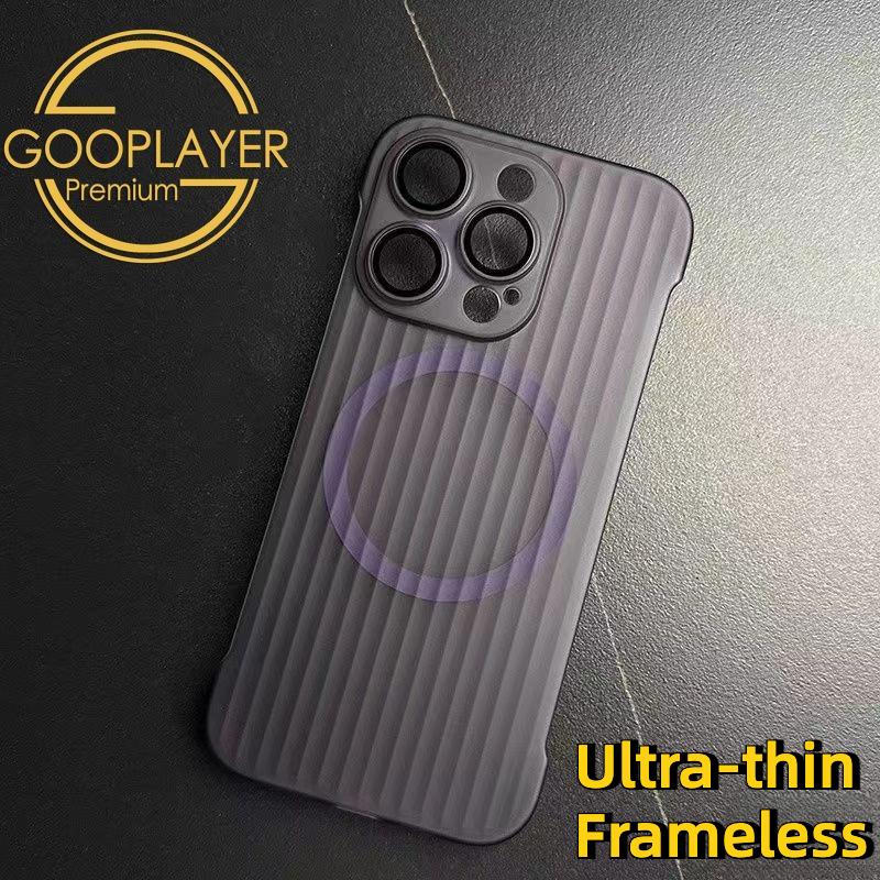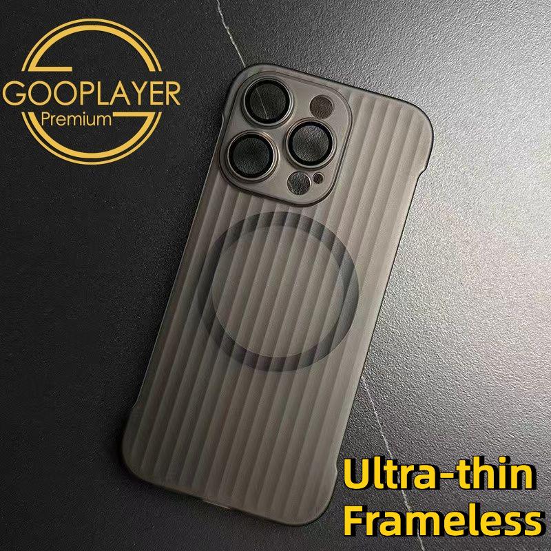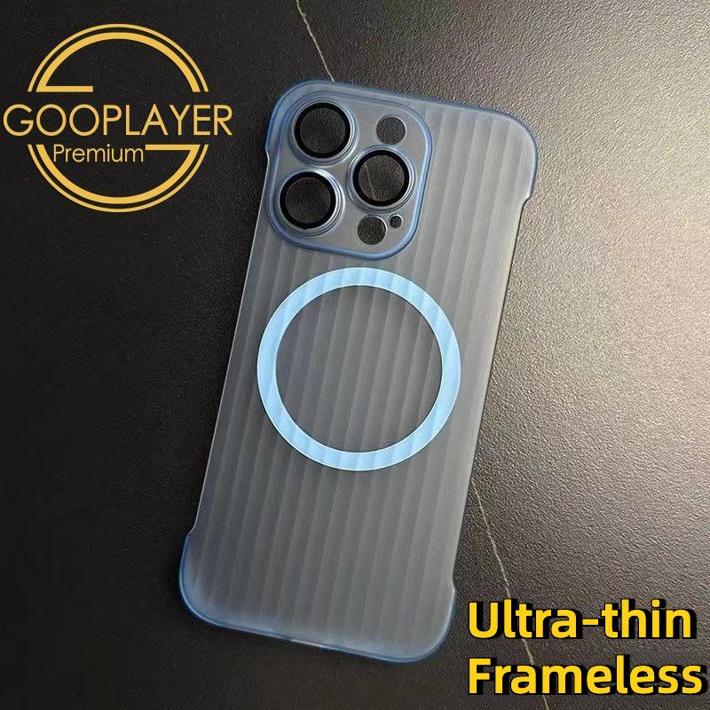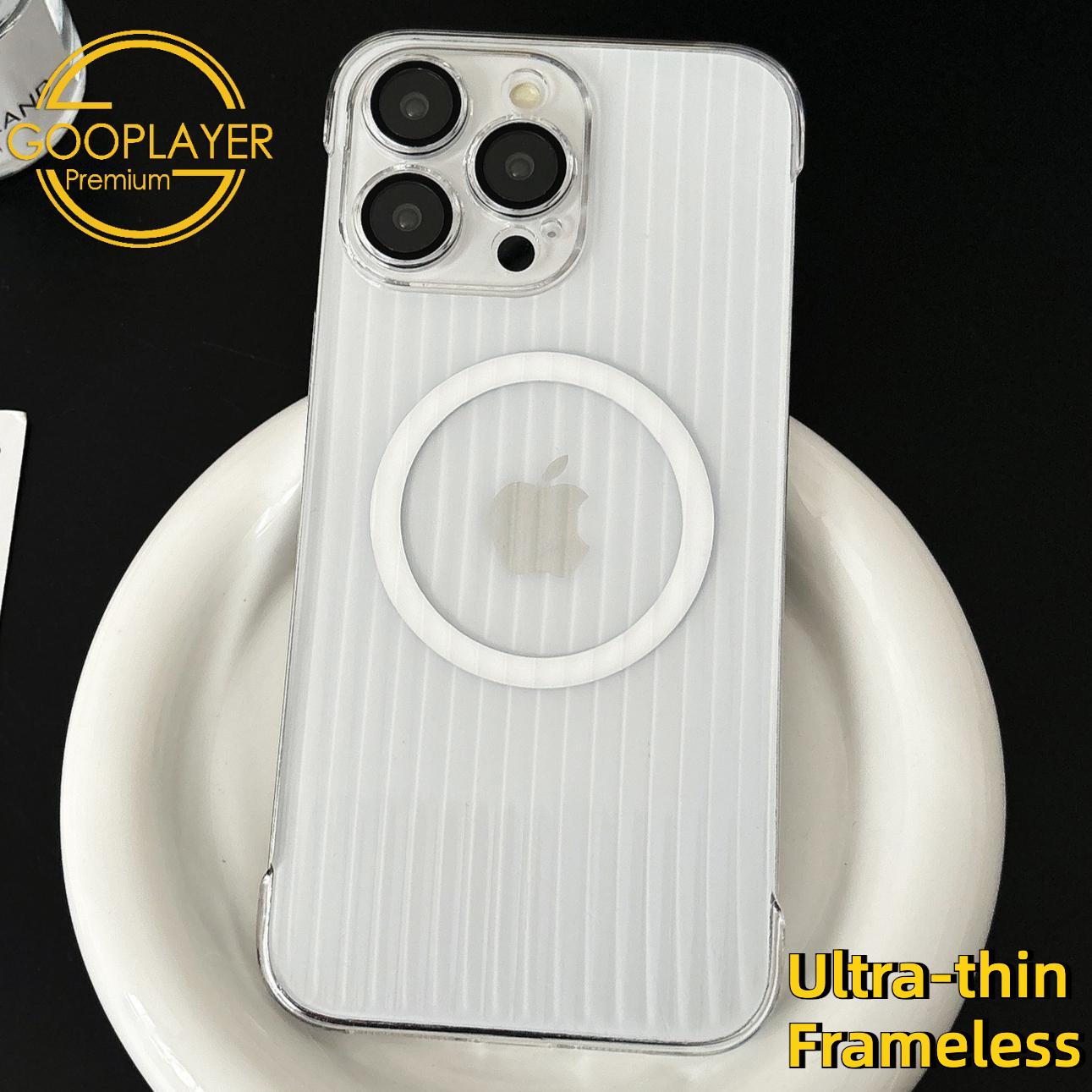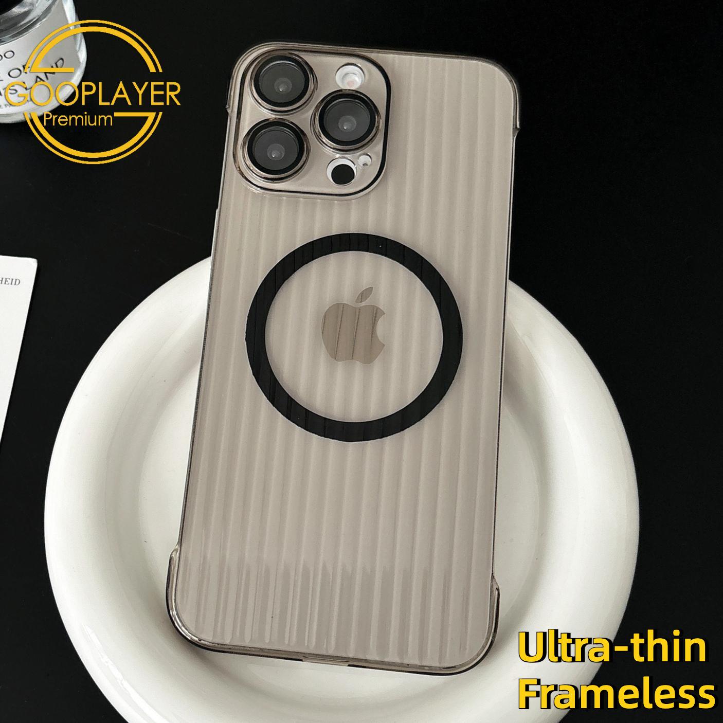For iPhone 16 15 14 13 12 Pro Max Phone Case, Ultrathin Frameless Corrugated Grille Magnetic PC Hard for Magsafe Support Wireless Charging Matte Frozen Fog Clear High Transparency Full Cover