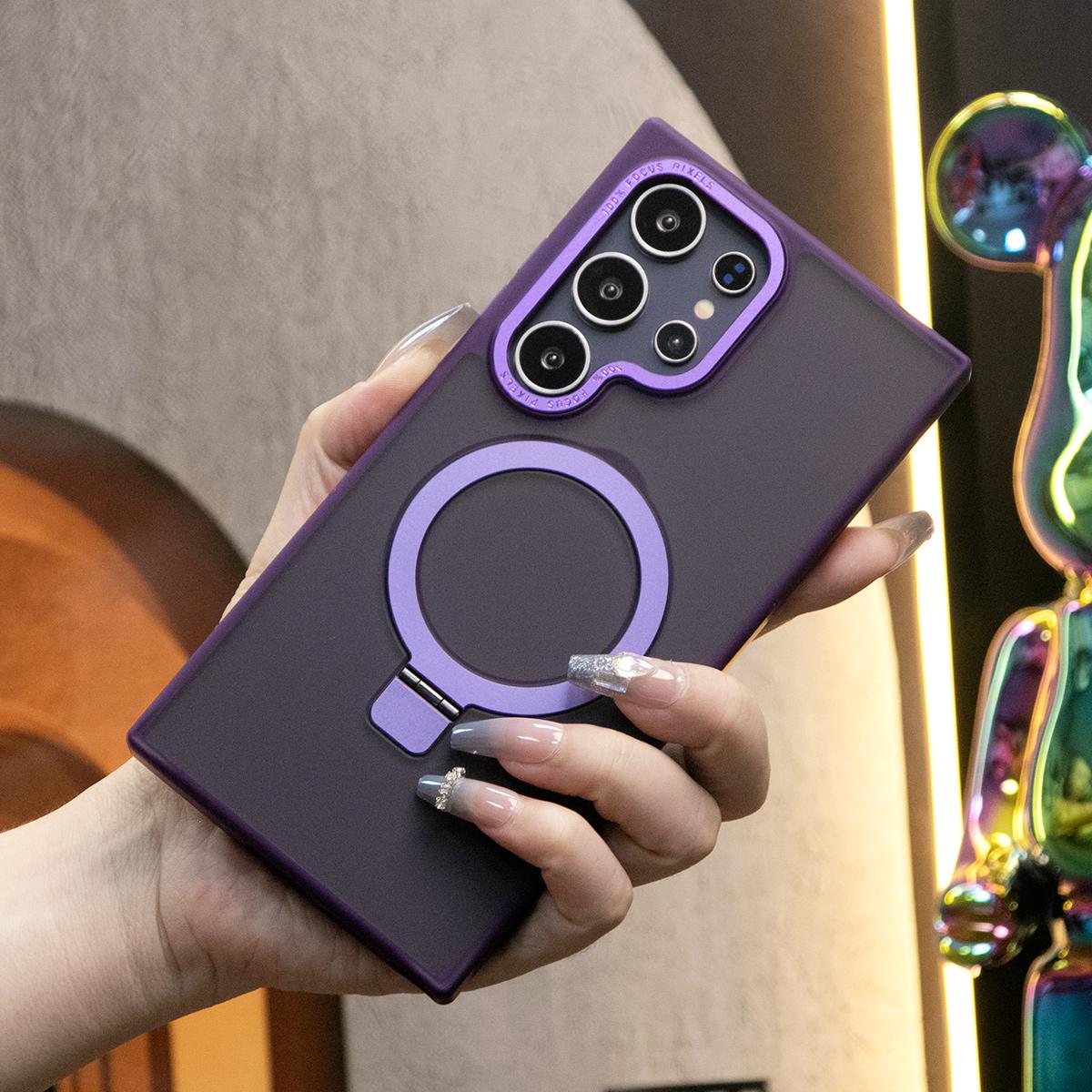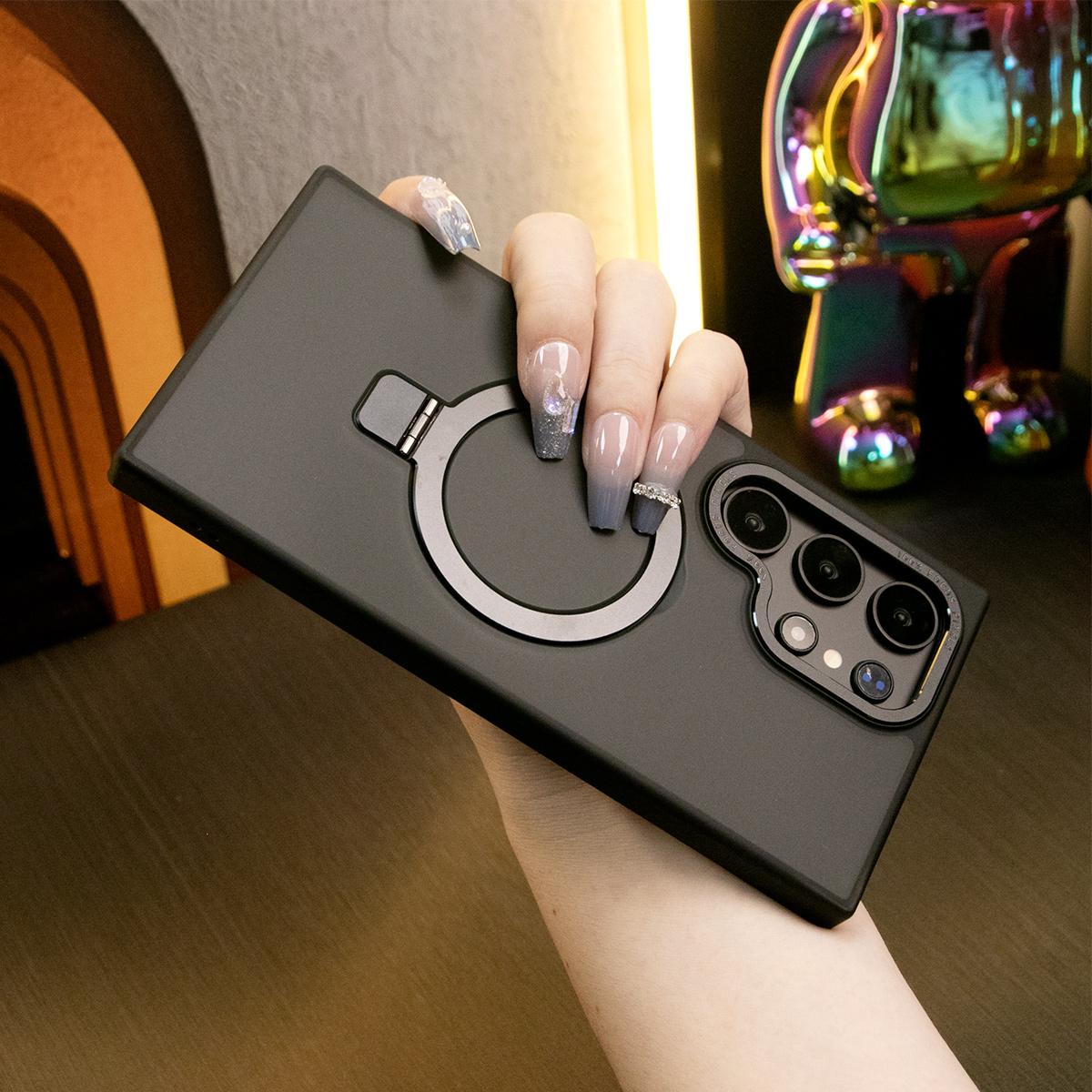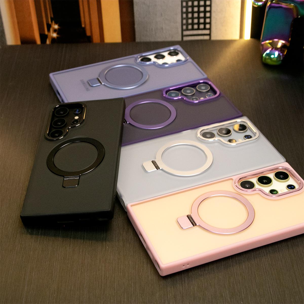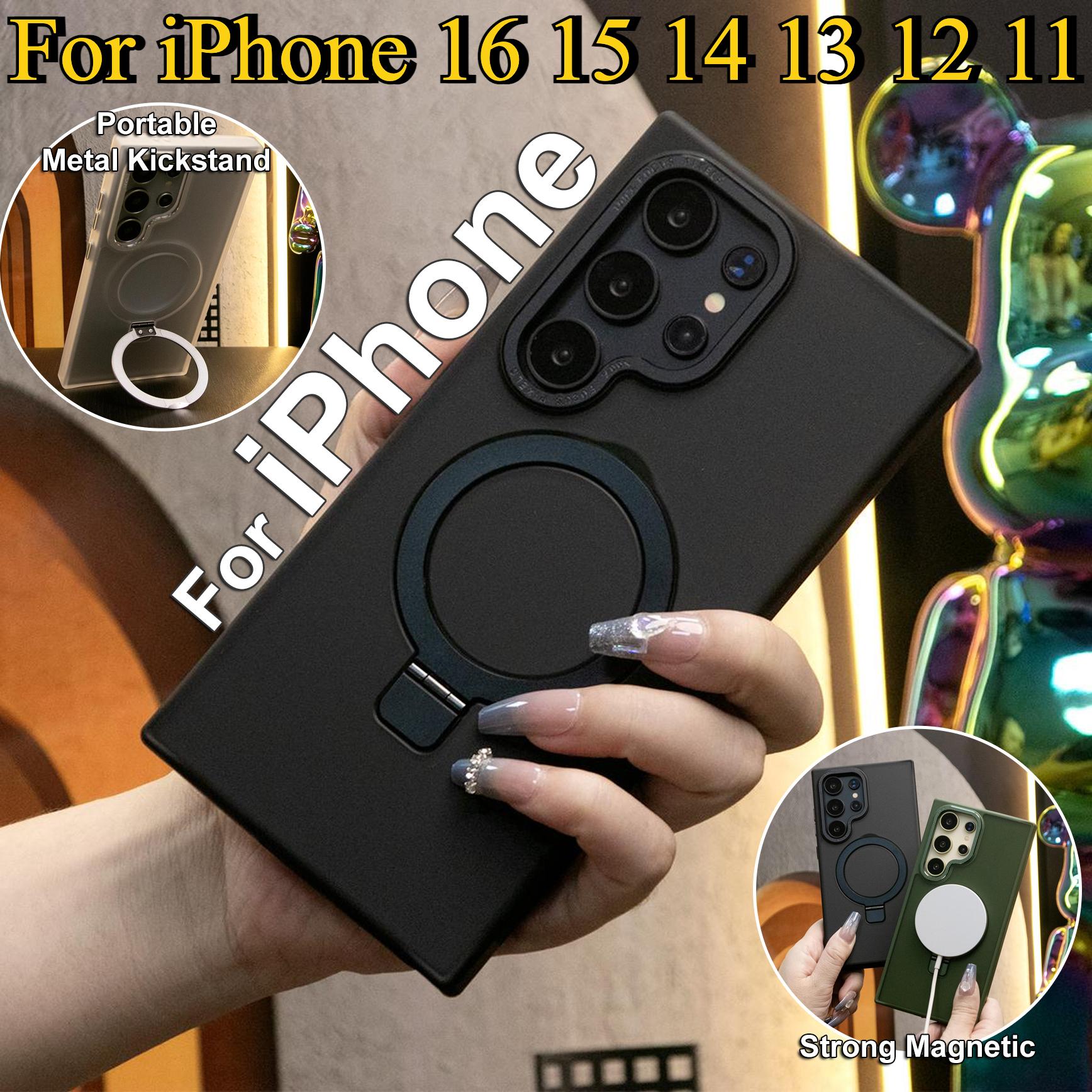 For iPhone 16 15 14 13 12 11 Phone Case, Matte Clear Acrylic Magnetic Metal Frame Kickstand [Compatible with MagSafe] [Not Yellowing] Shockproof Hard Full Cover