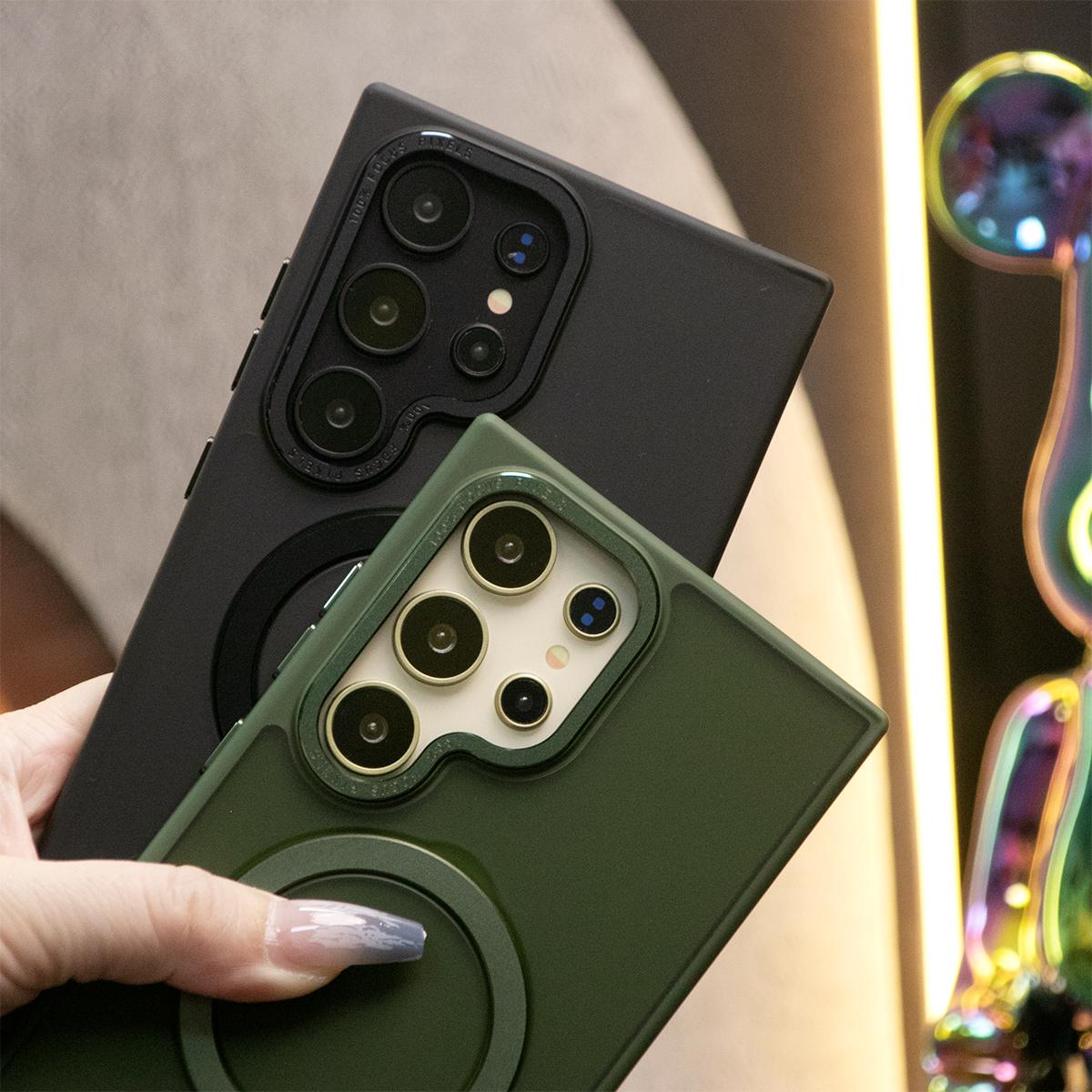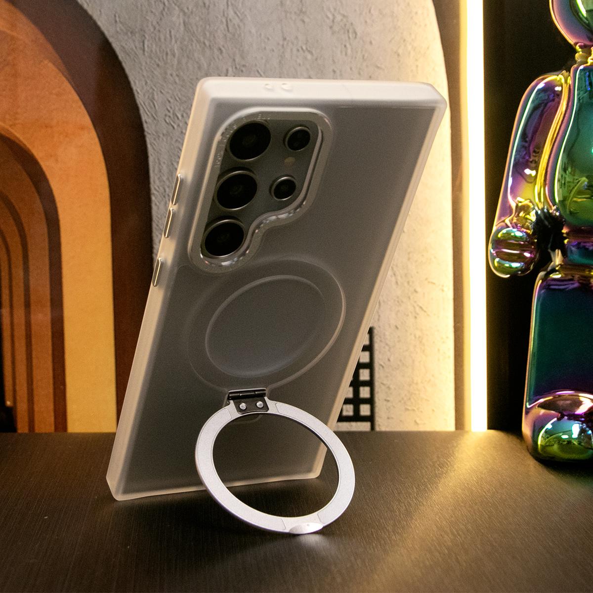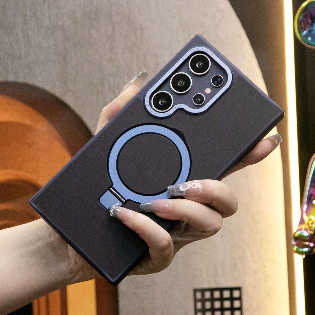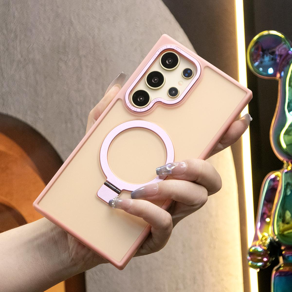 For iPhone 16 15 14 13 12 11 Phone Case, Matte Clear Acrylic Magnetic Metal Frame Kickstand [Compatible with MagSafe] [Not Yellowing] Shockproof Hard Full Cover