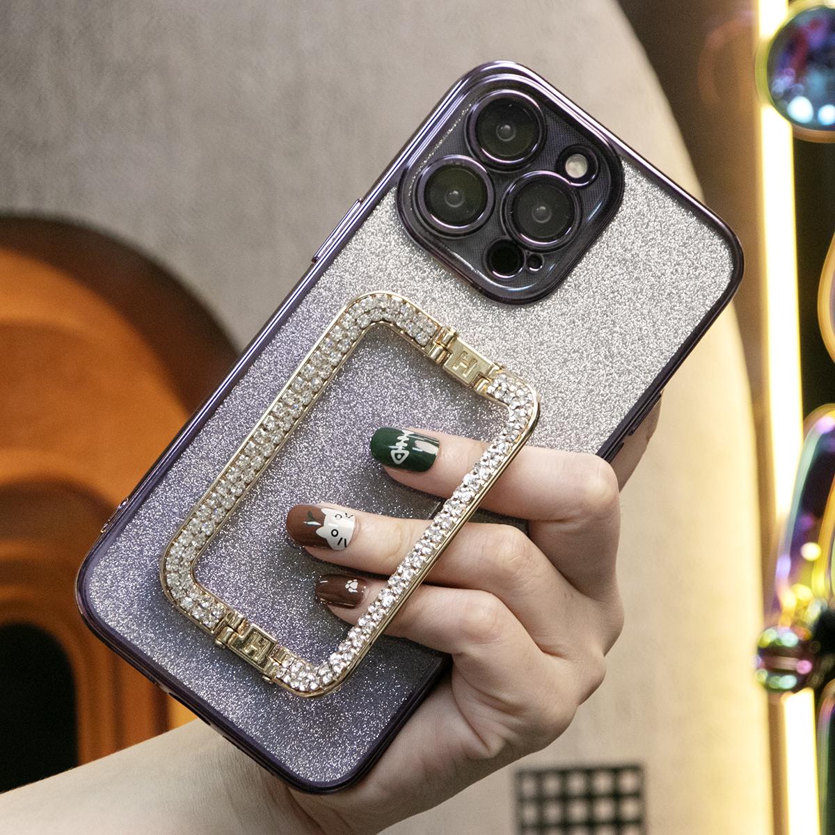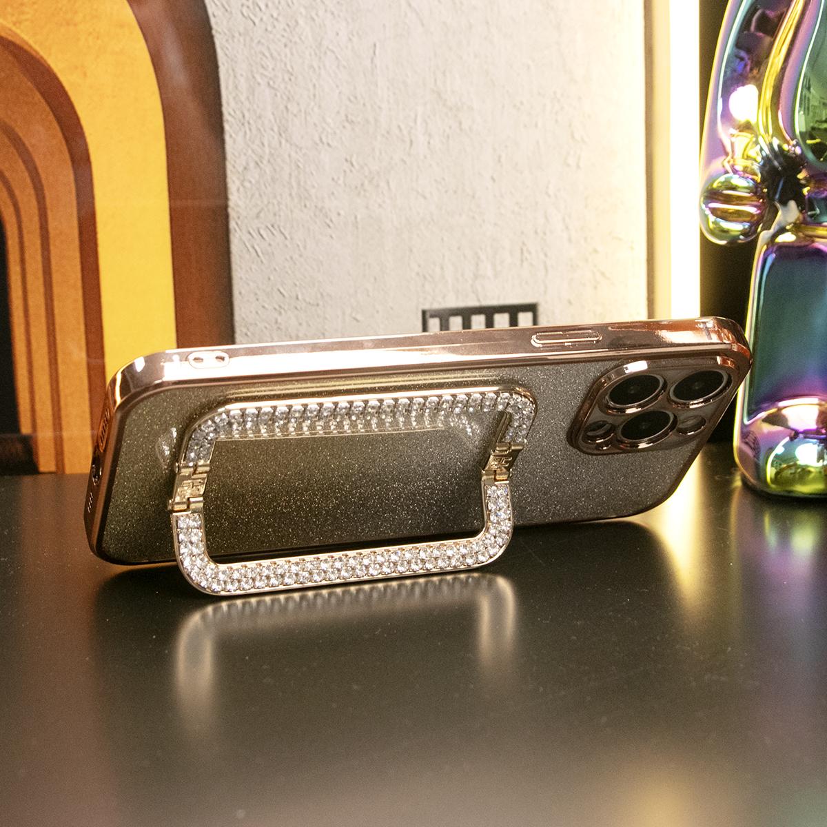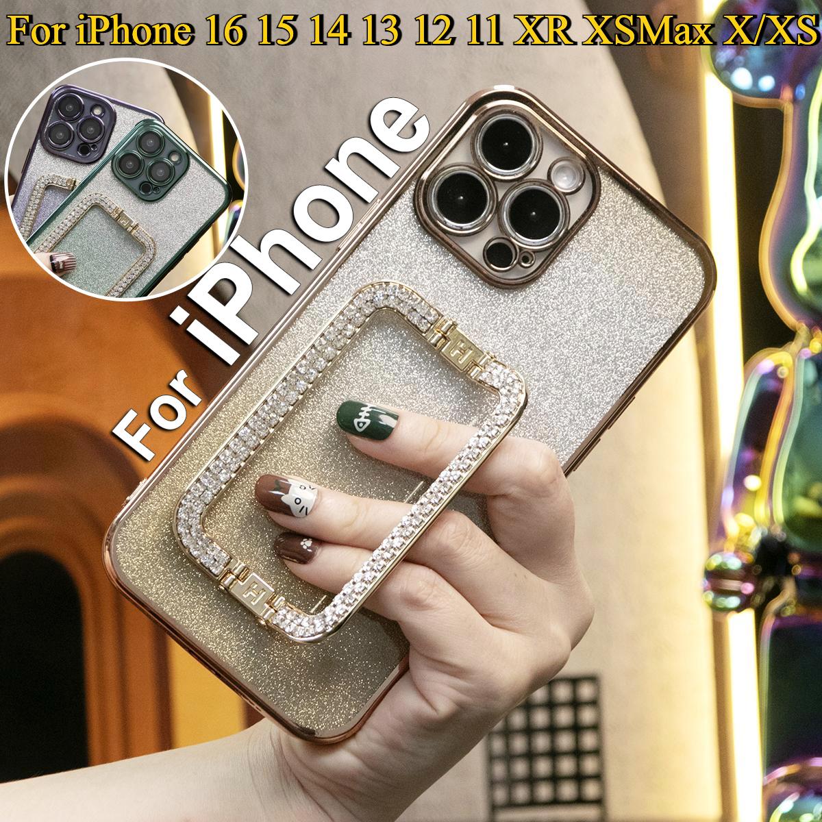 For iPhone 16 15 14 13 12 11 XR XSMax X/XS Phone Case, Rhinestone Square Kickstand, Glitter Gradient Clear Plating Luxury Elegant Case Pop Stand Shockproof Soft Cover