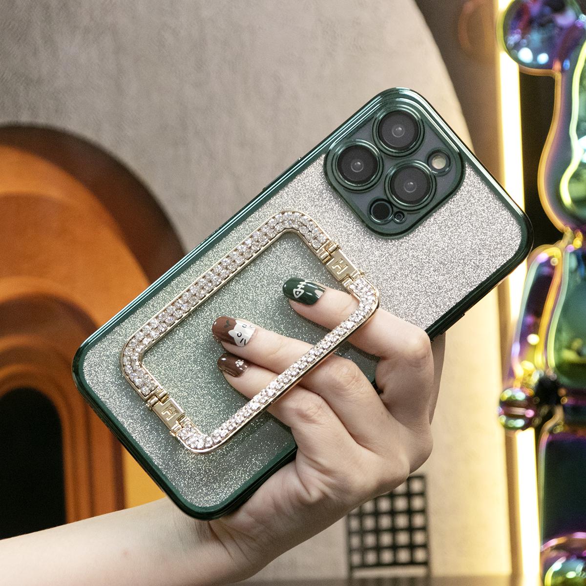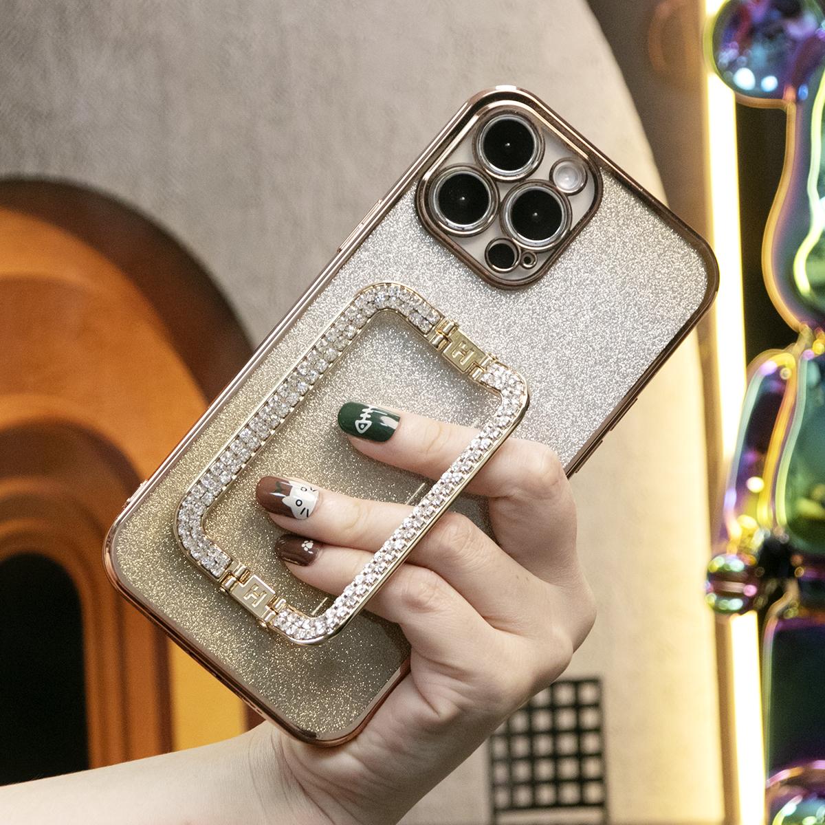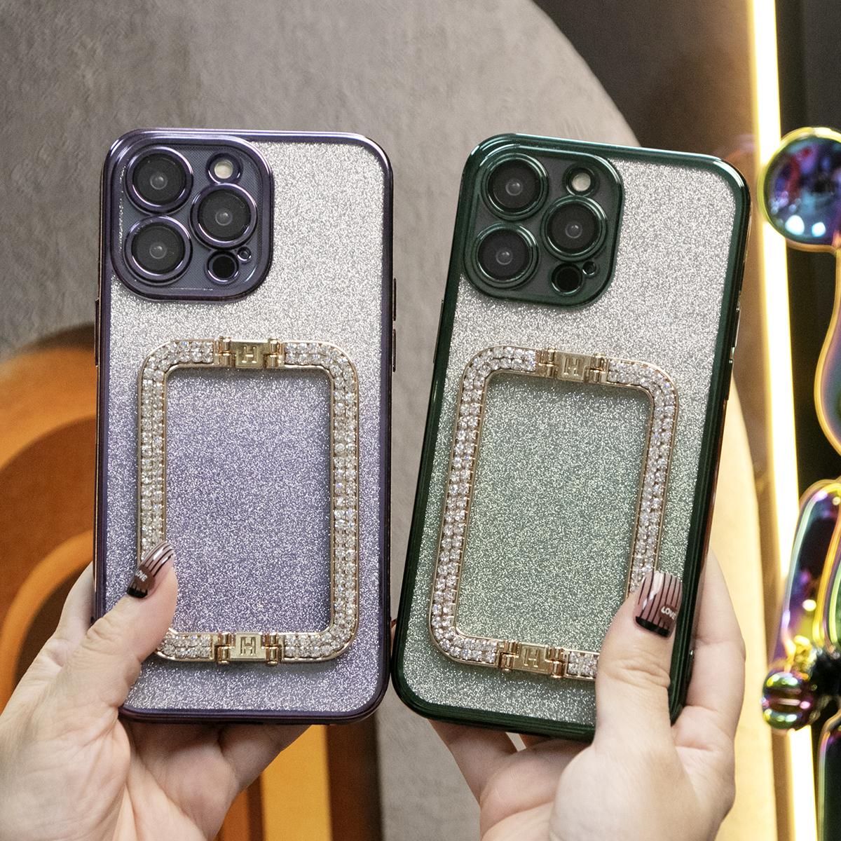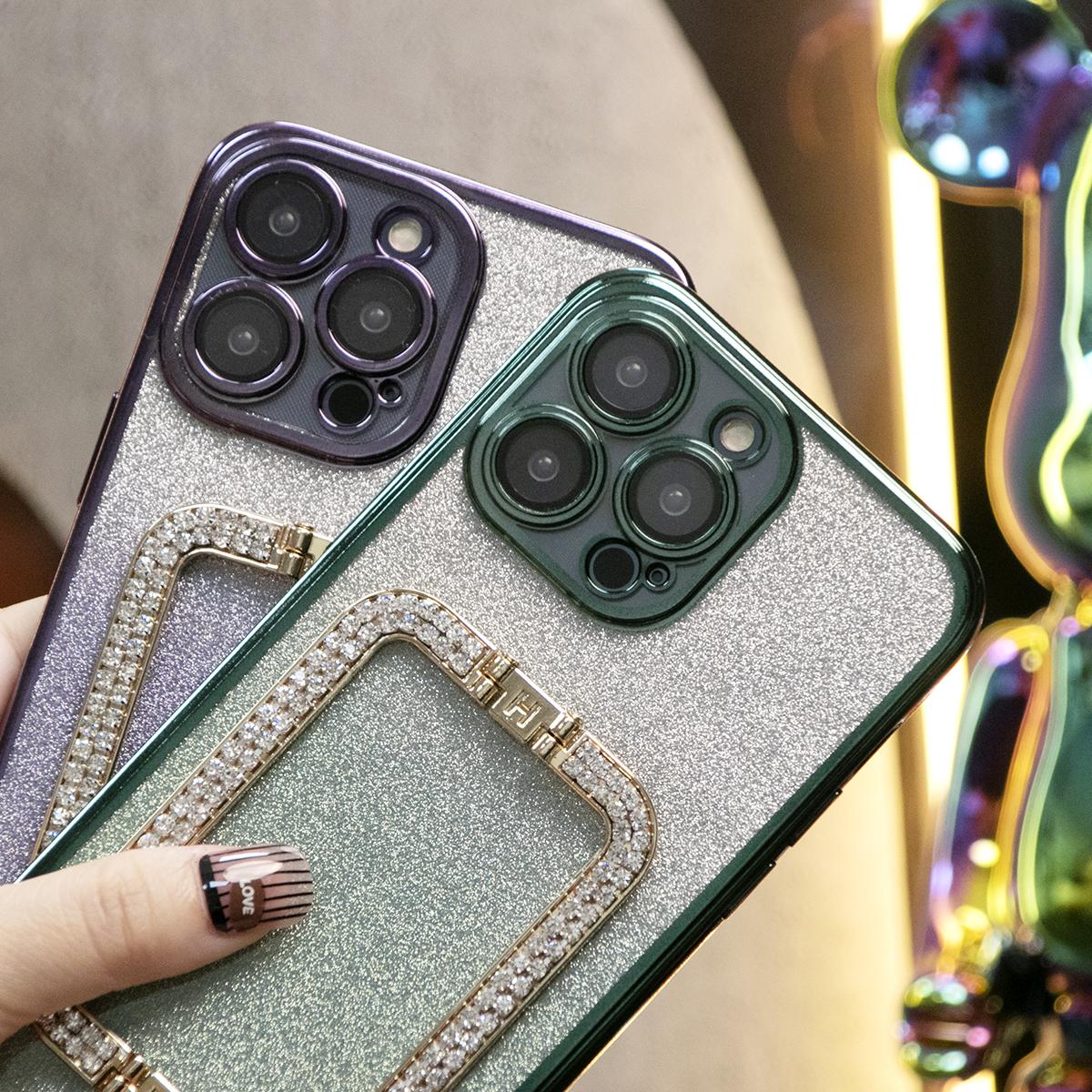 For iPhone 16 15 14 13 12 11 XR XSMax X/XS Phone Case, Rhinestone Square Kickstand, Glitter Gradient Clear Plating Luxury Elegant Case Pop Stand Shockproof Soft Cover