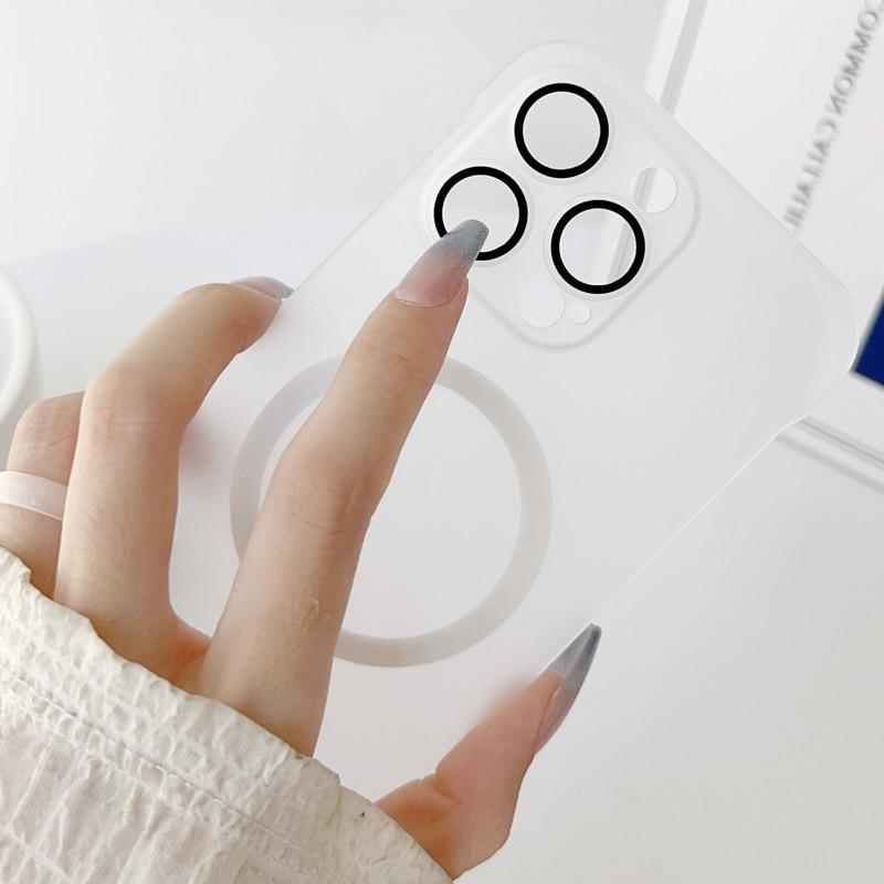 For iPhone 16 15 14 13 12 Pro Max Phone Case, Ultrathin Frameless Magnetic PC Hard for Magsafe Support Wireless Charging Matte Clear High Transparency Full Cover