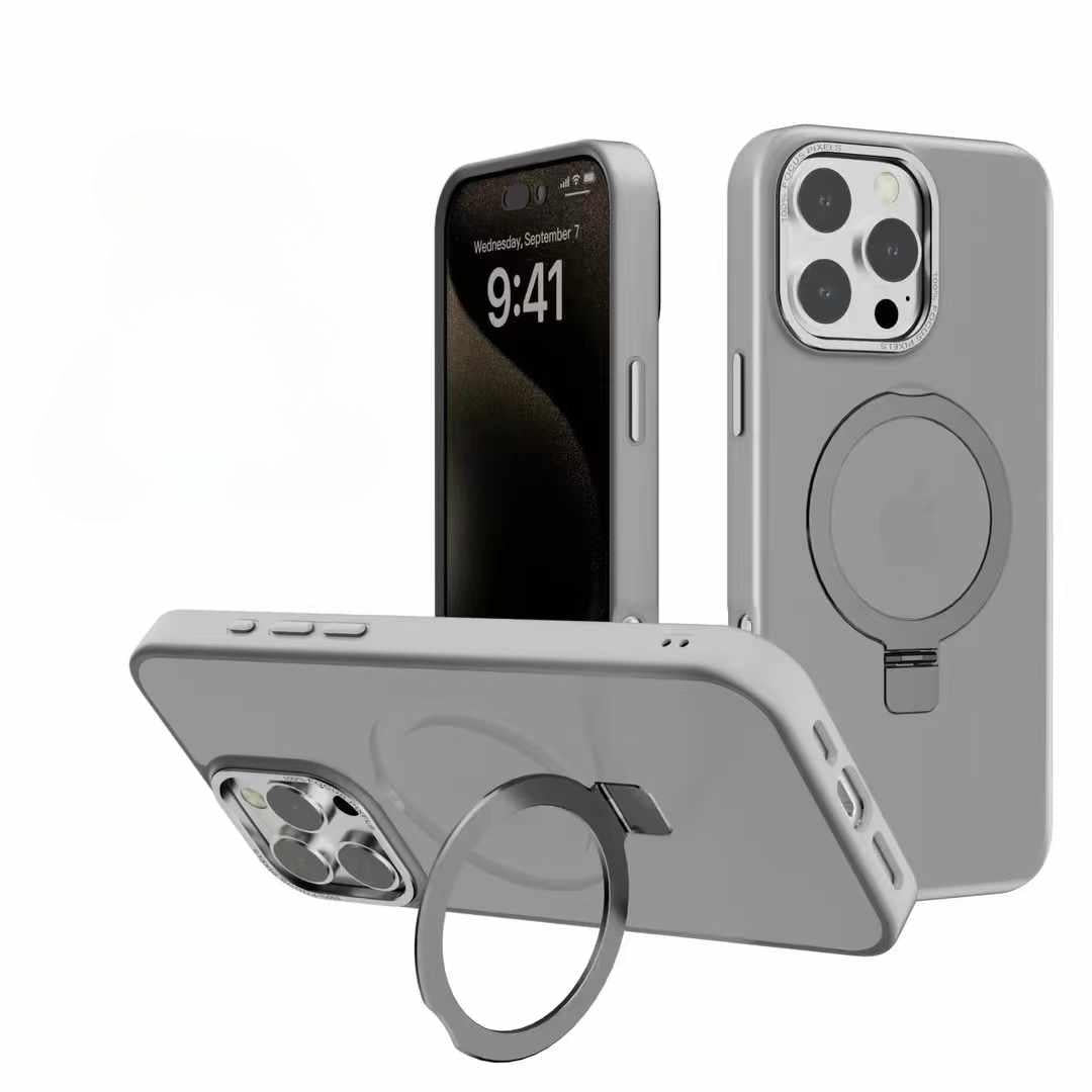 For iPhone 16 15 14 13 Pro Max Phone Case, Aluminum Magnetic Kickstand Acrylic Metal Lens For Magsafe Support Wireless Charging Transparent Anti-Fall Hard Full Cover