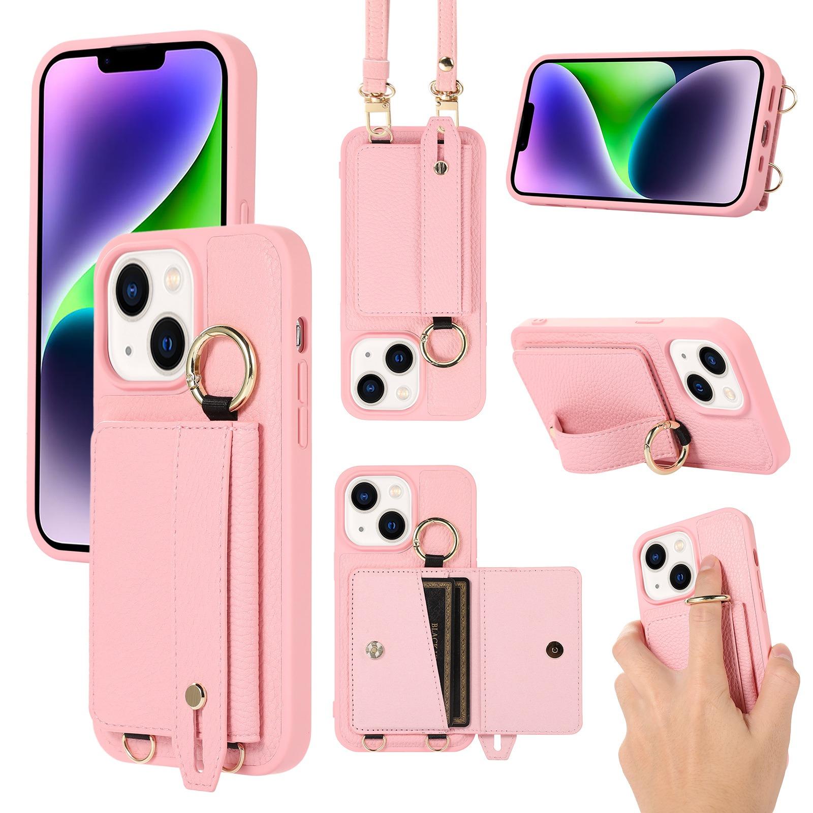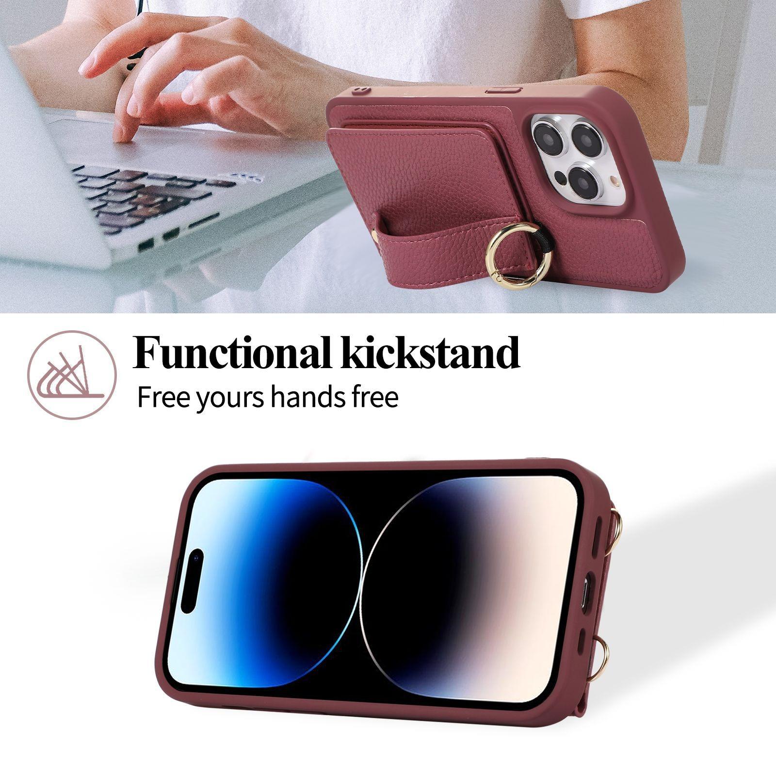 For iPhone 16ProMax 16 15 14 13 12 11 Leather Phone Case with Double Folding Wallet Lanyard, Anti-Fall Card Slot Wristband Ring Kickstand Shockproof Business Hard Full Cover