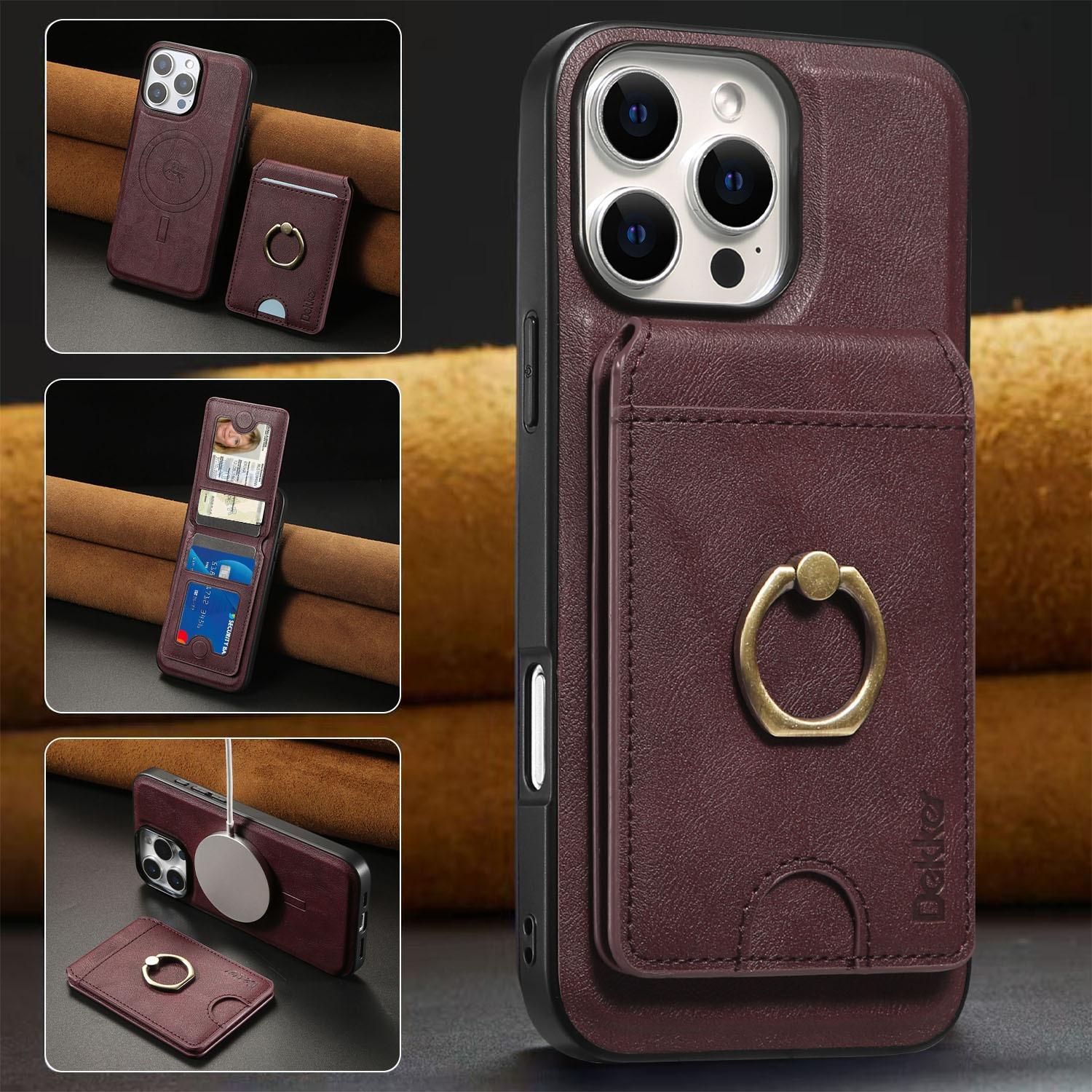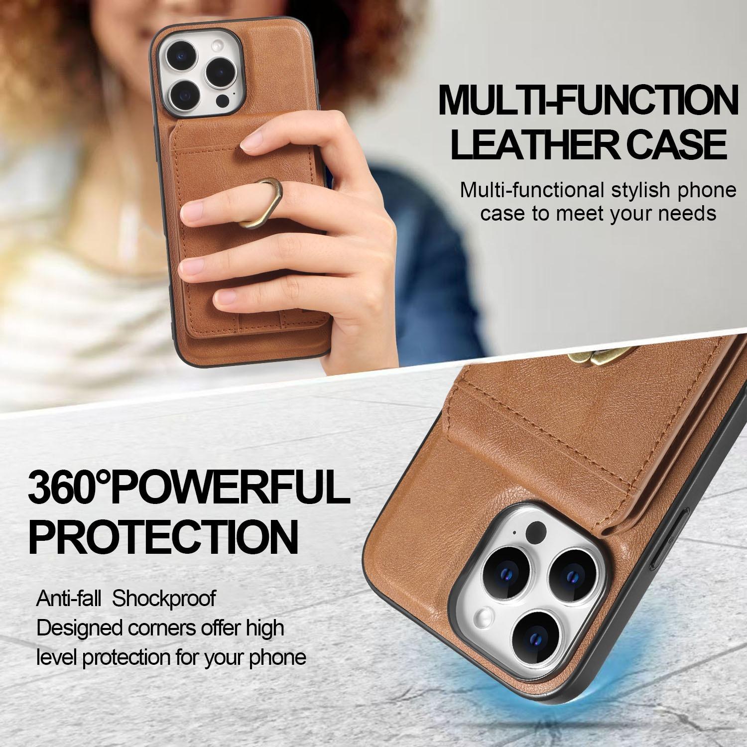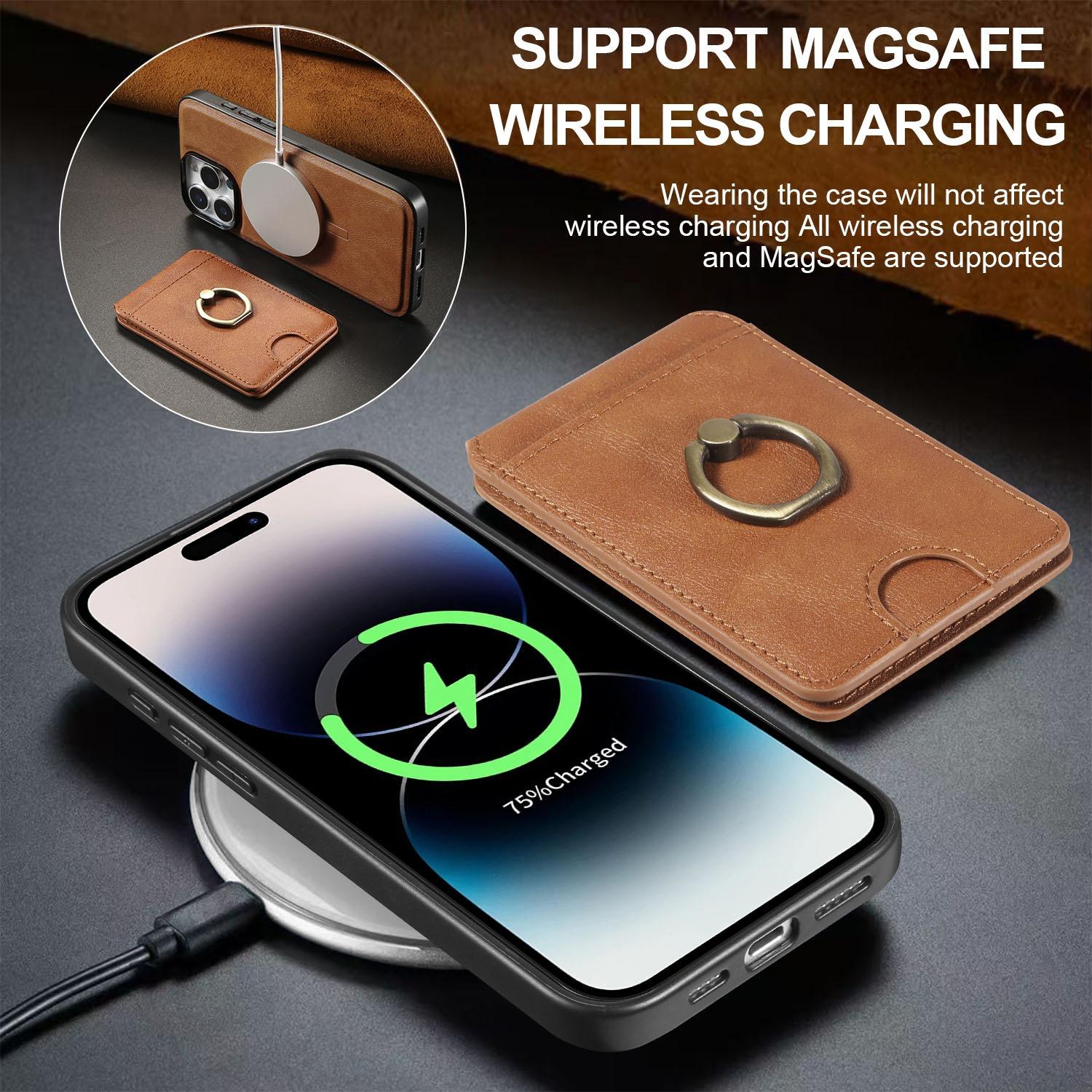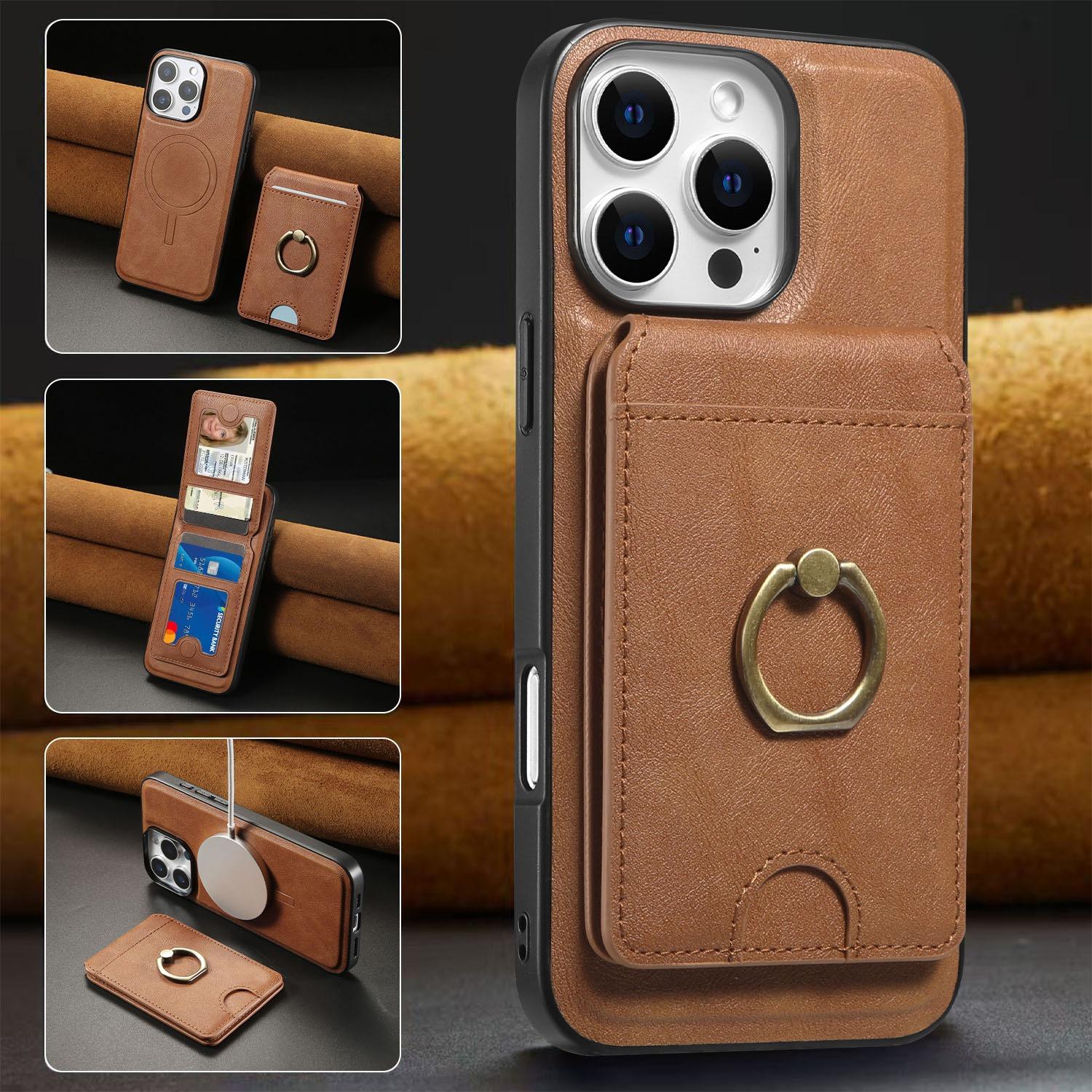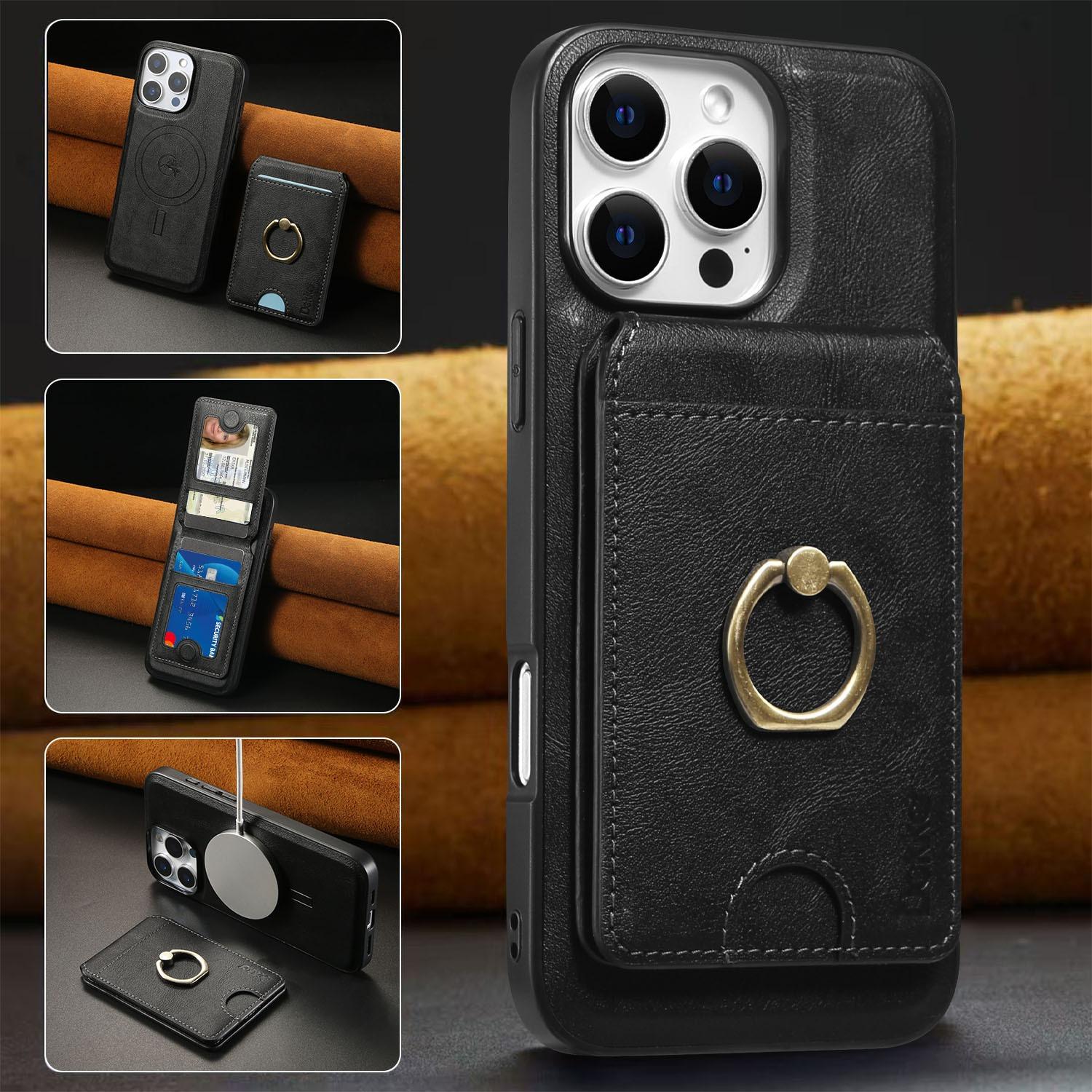 For iPhone 16ProMax 16 15 14 13 12 Leather Phone Case with Strong Magnetic Wallet Ring Stand, Anti-Fall Card Bag Kickstand for Magsafe Shockproof Business Hard Full Cover