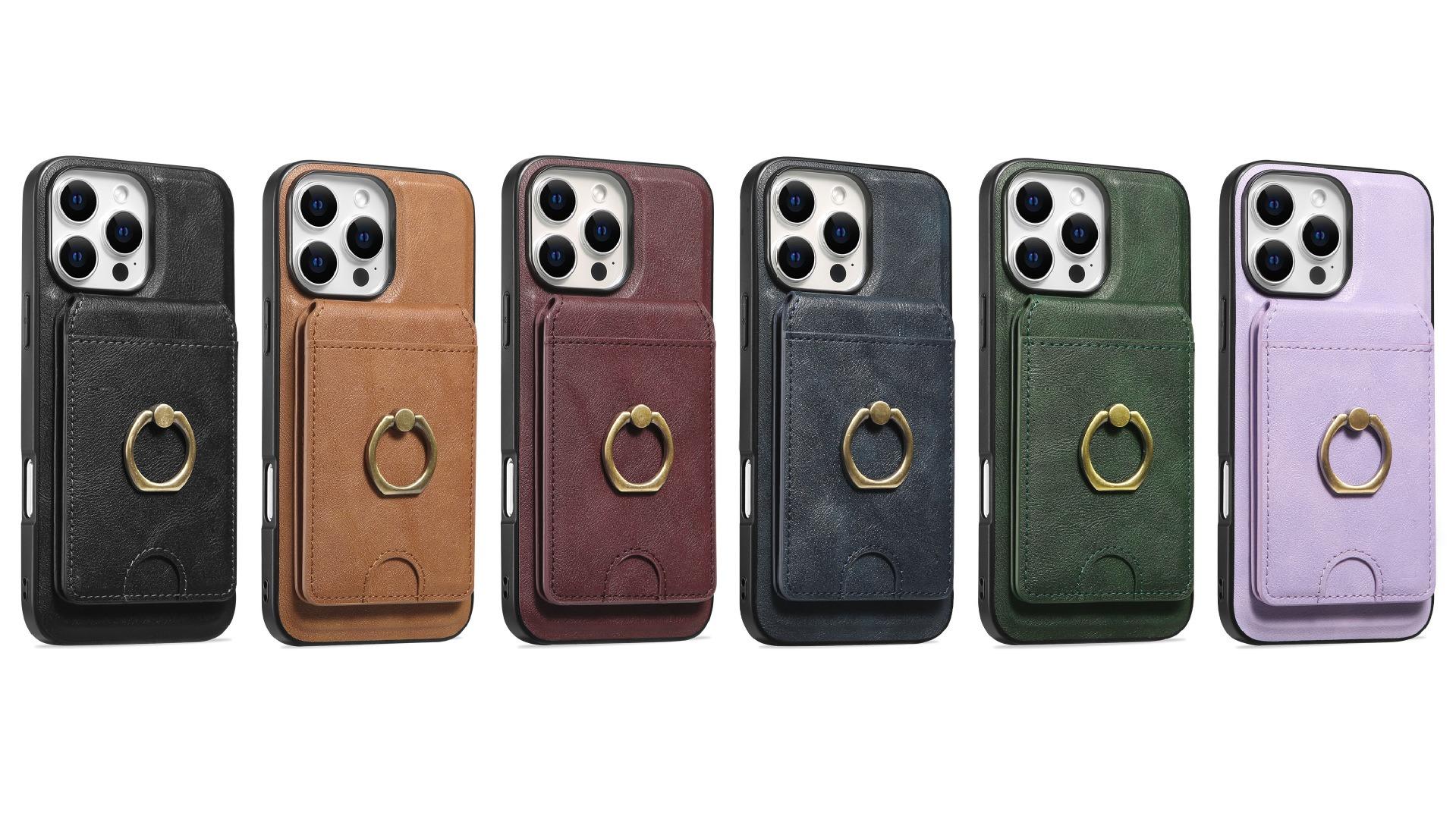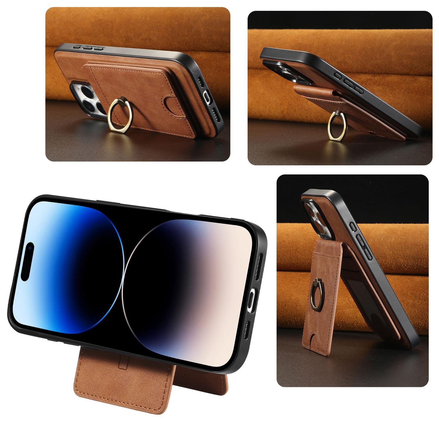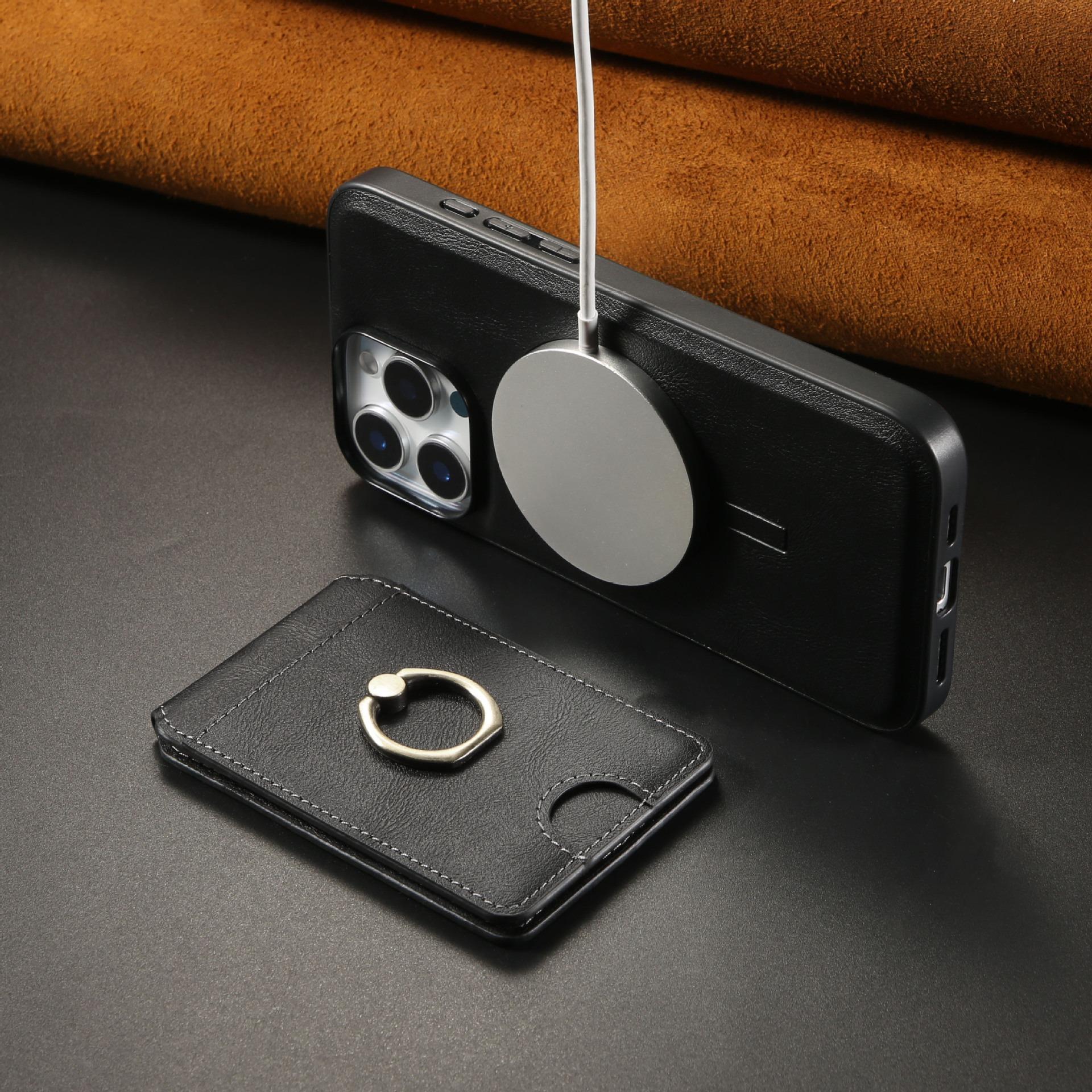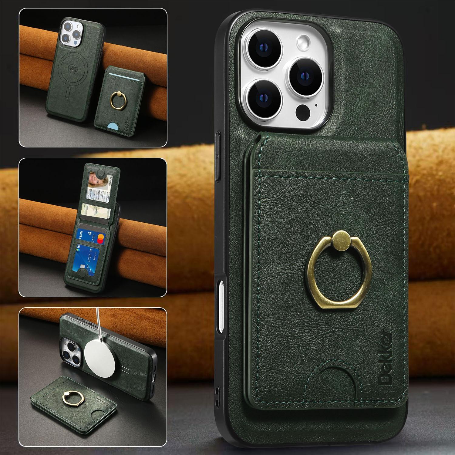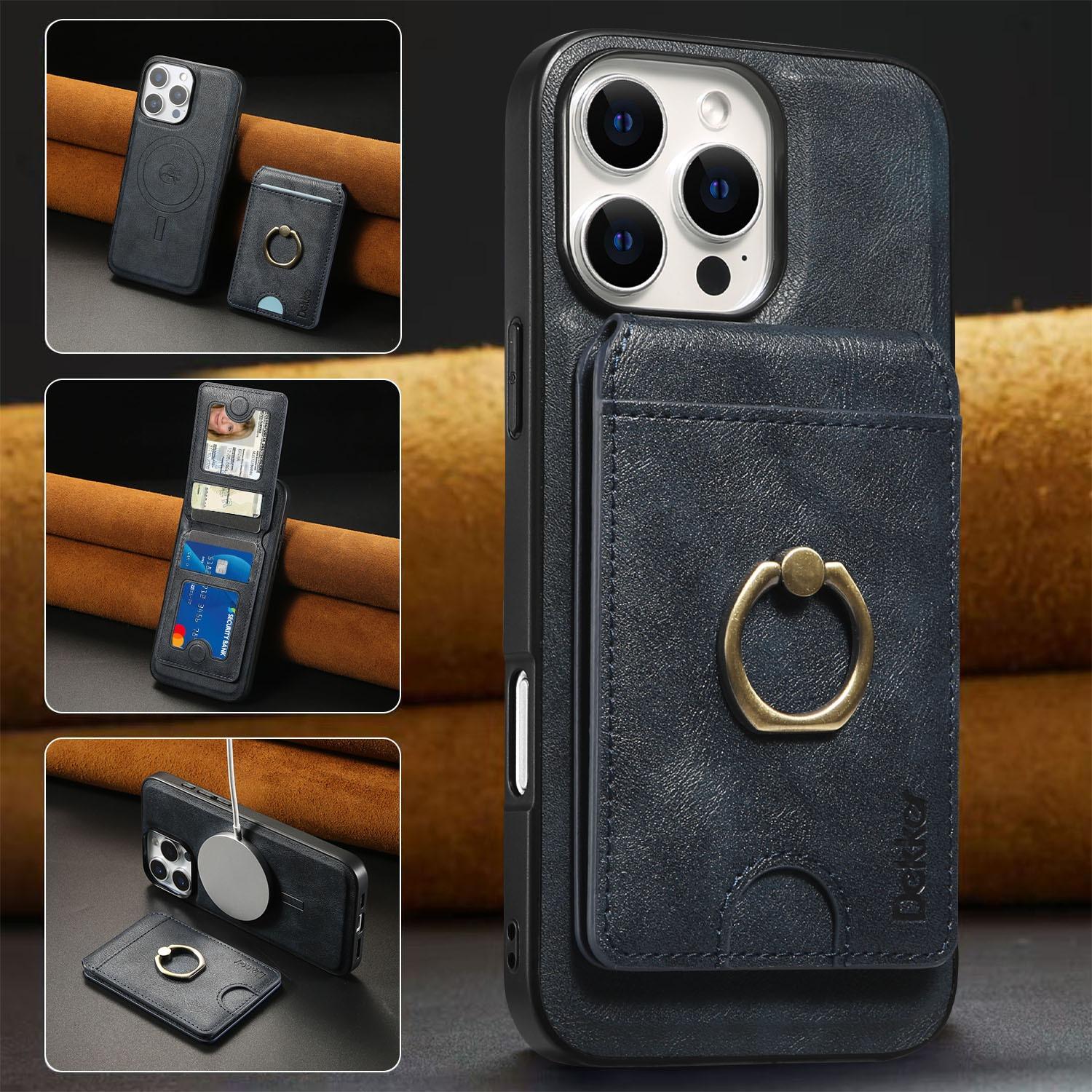 For iPhone 16ProMax 16 15 14 13 12 Leather Phone Case with Strong Magnetic Wallet Ring Stand, Anti-Fall Card Bag Kickstand for Magsafe Shockproof Business Hard Full Cover