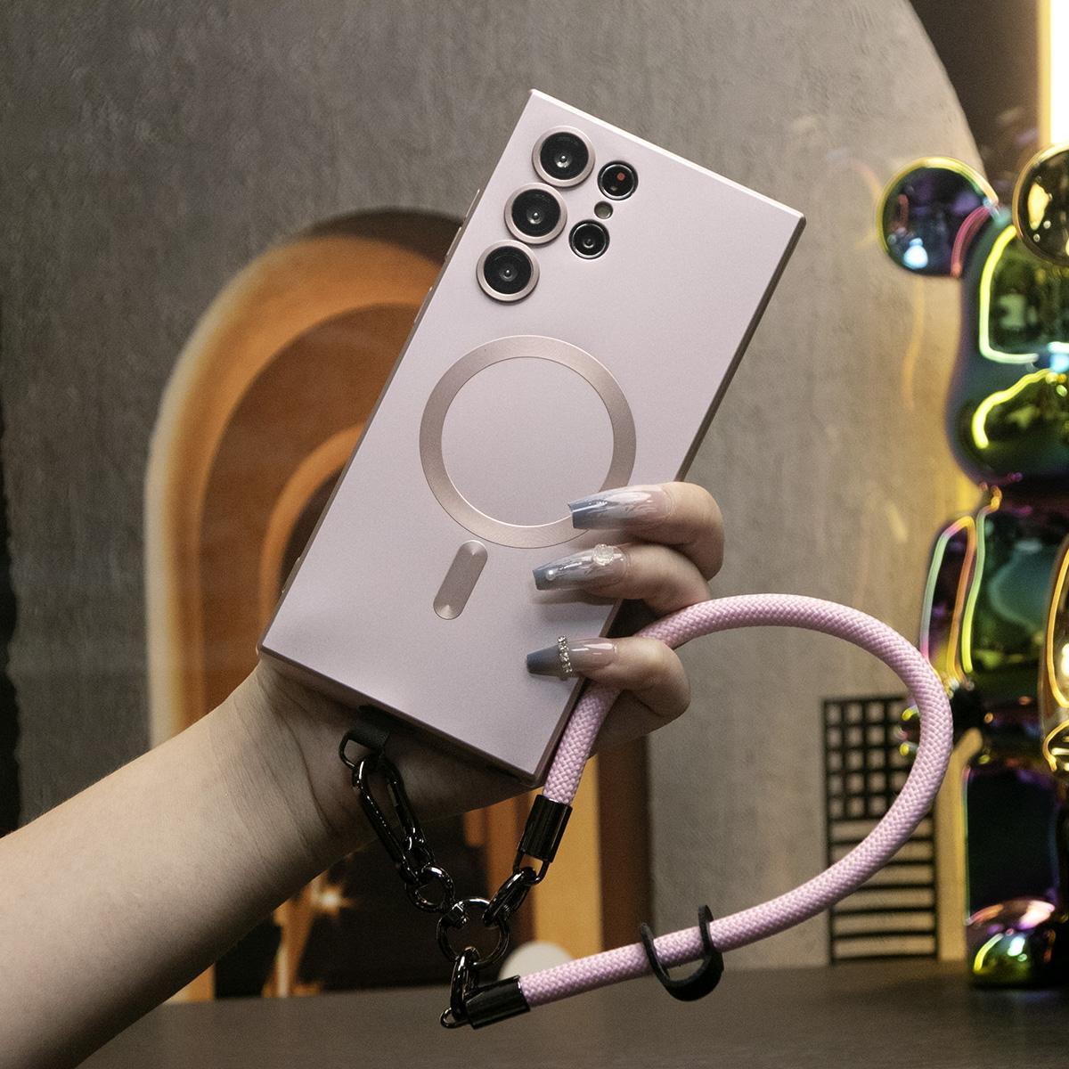 For Samsung A14 A15 A16 A24 A25 A26 A34 A35 A36 A54 A55 A56 A05 A05S A06 Phone Case, Metallic Paint Magnetic Soft Glossy Slim, Full Camera Cover With Multifunctional Climbing Rope