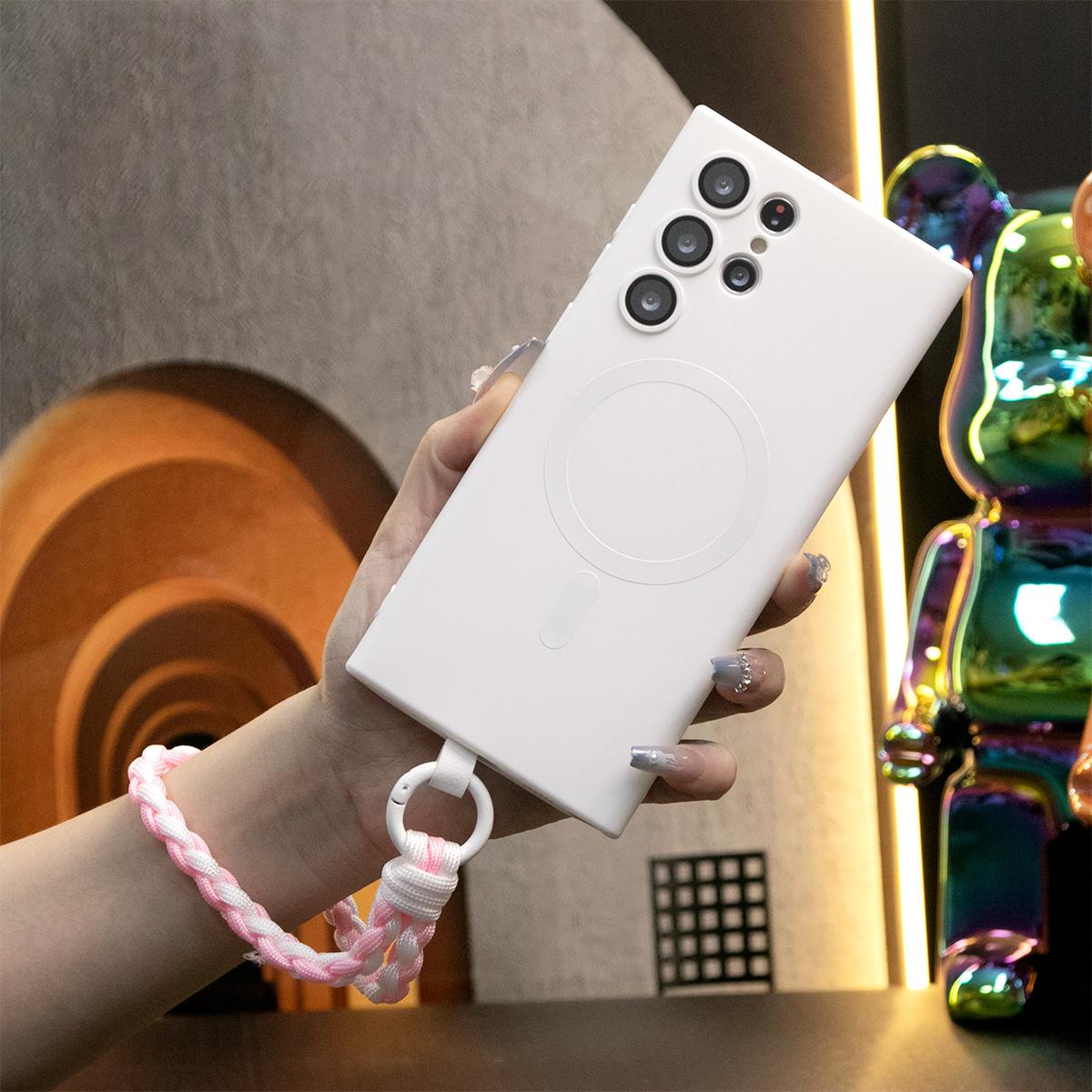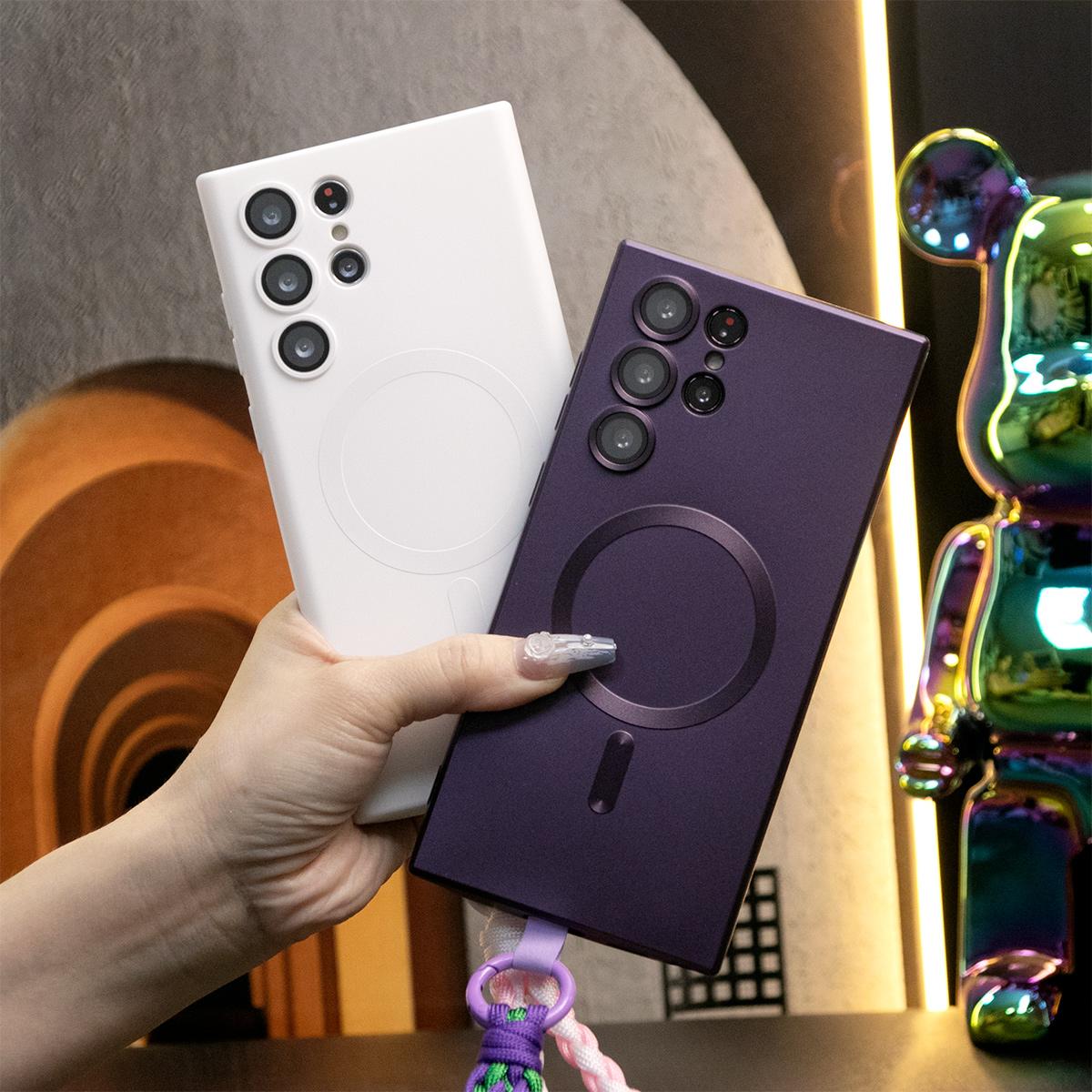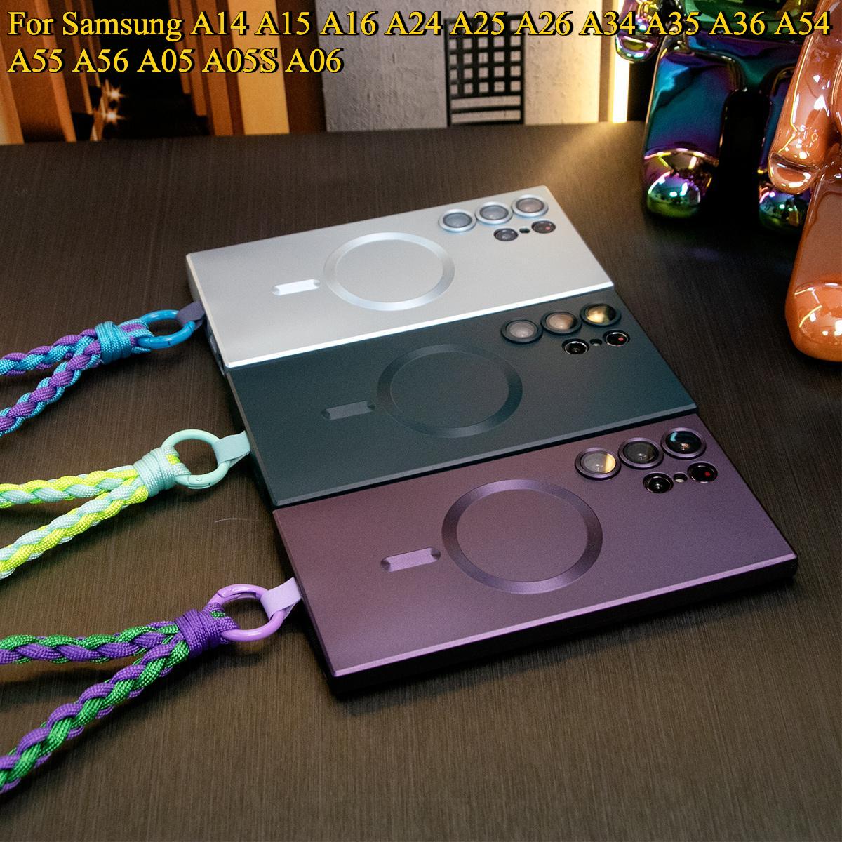 For Samsung A14 A15 A16 A24 A25 A26 A34 A35 A36 A54 A55 A56 A05 A05S A06 Phone Case, Metallic Paint Magnetic Soft Glossy Slim, Full Camera Soft Cover With Woven Wristband