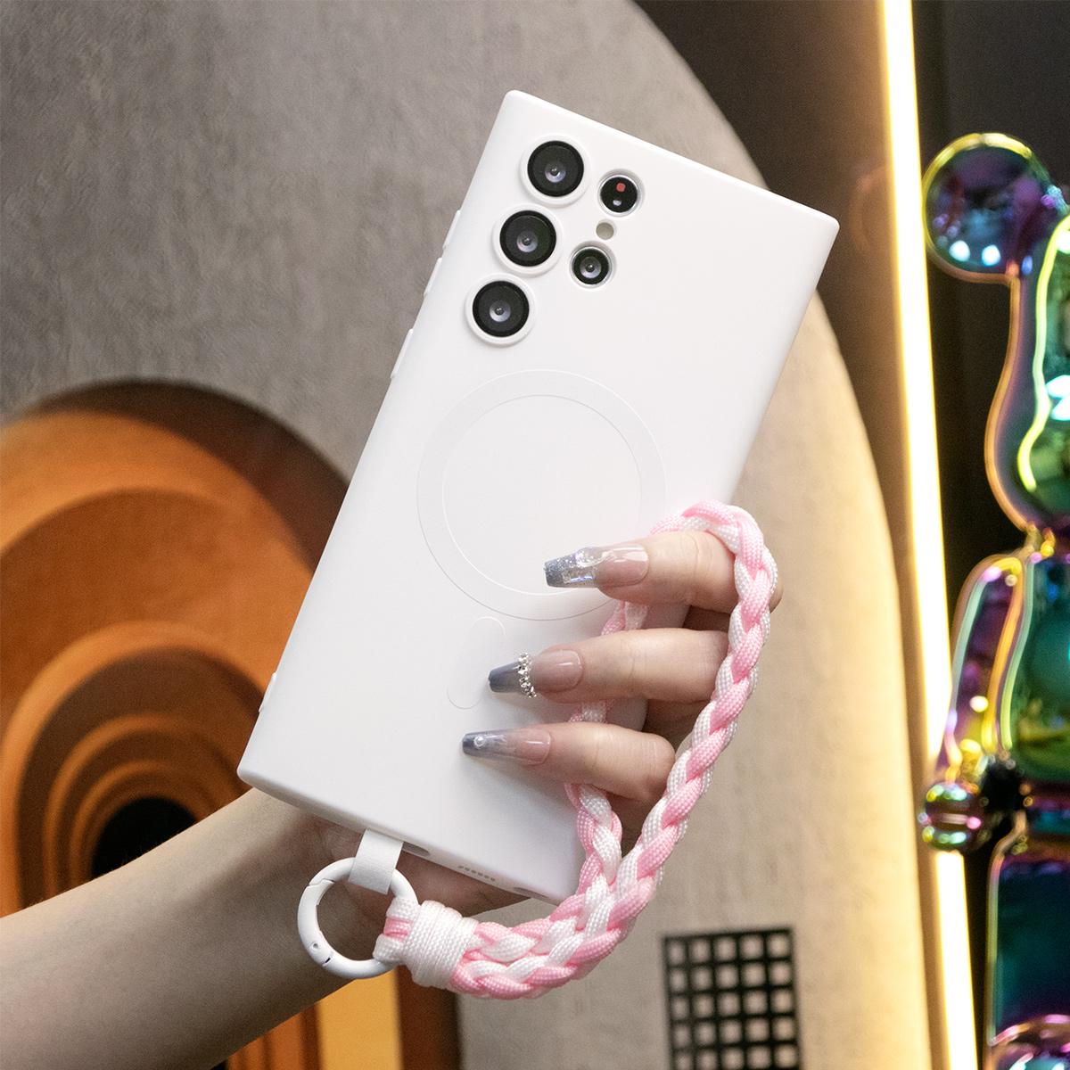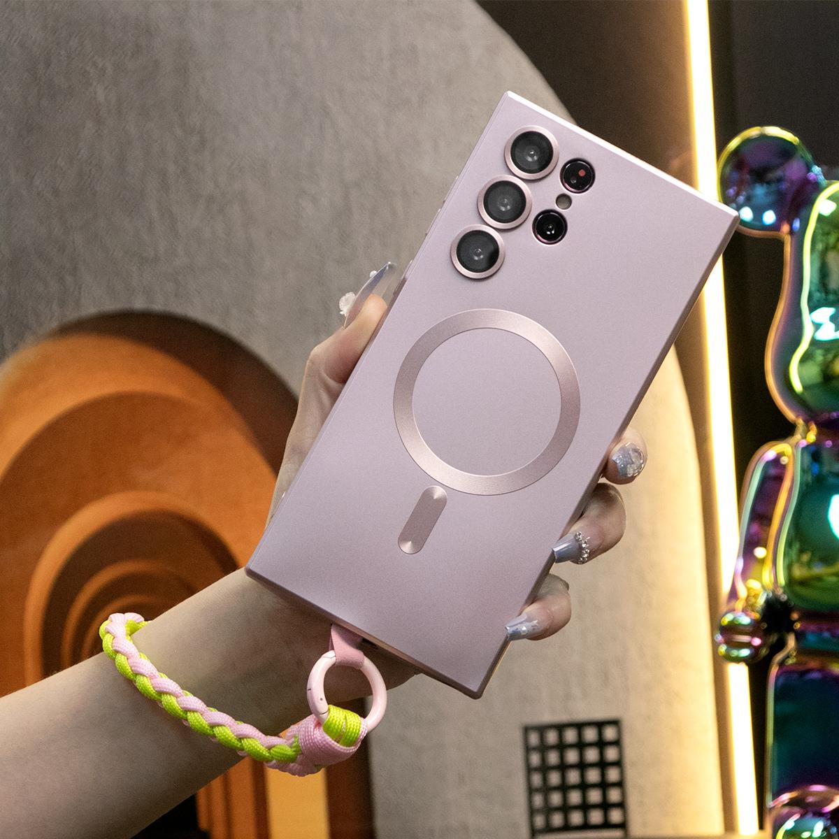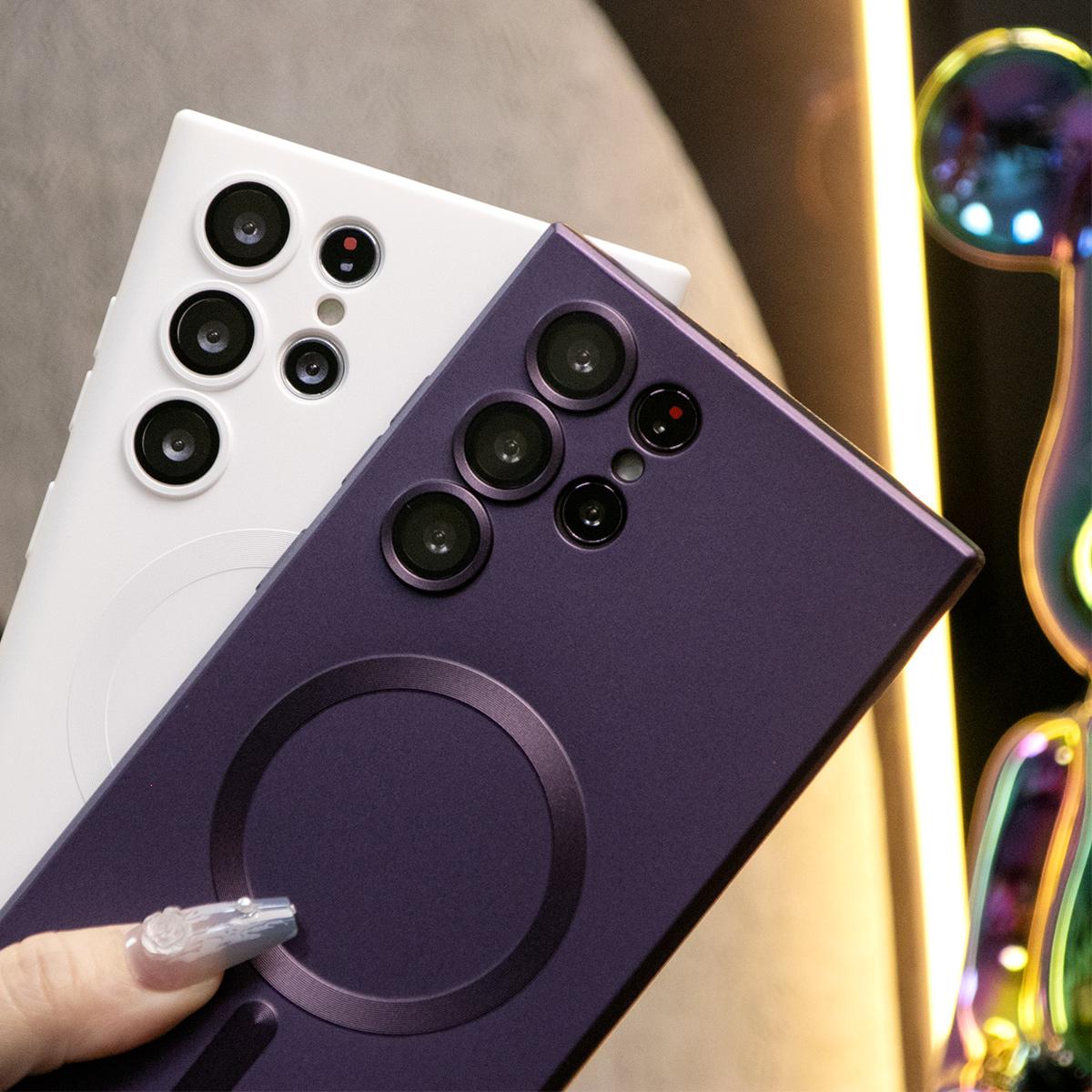For Samsung A14 A15 A16 A24 A25 A26 A34 A35 A36 A54 A55 A56 A05 A05S A06 Phone Case, Metallic Paint Magnetic Soft Glossy Slim, Full Camera Soft Cover With Woven Wristband