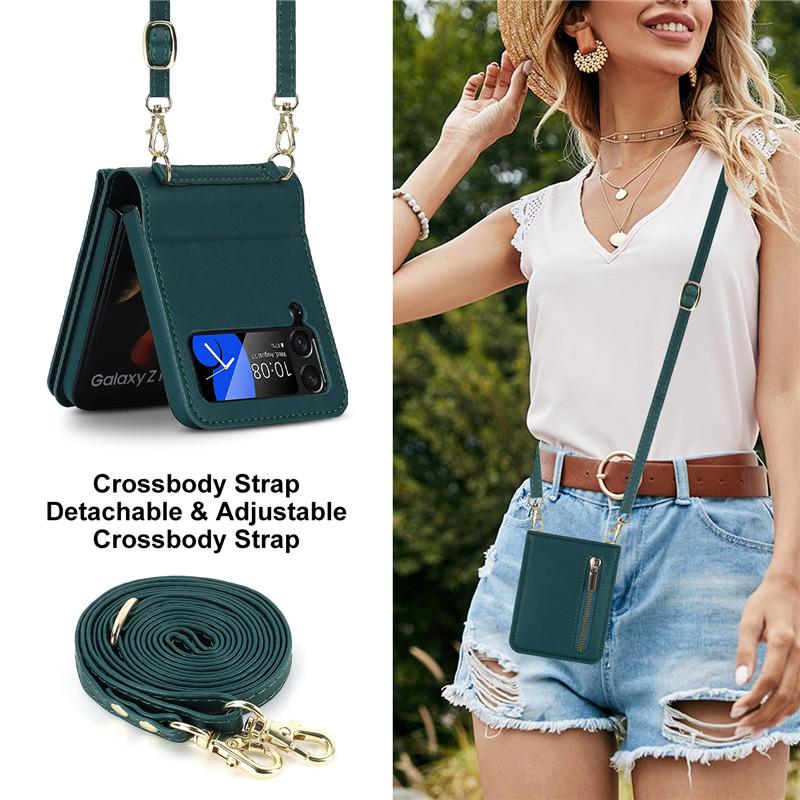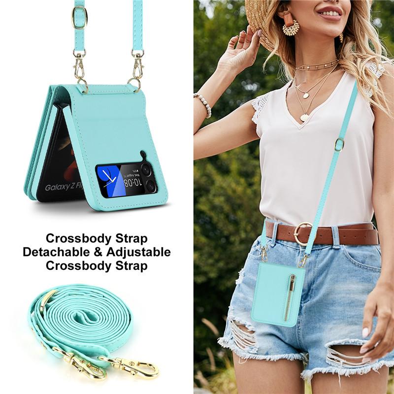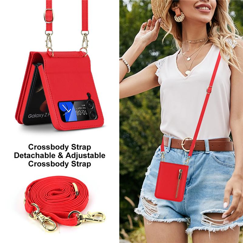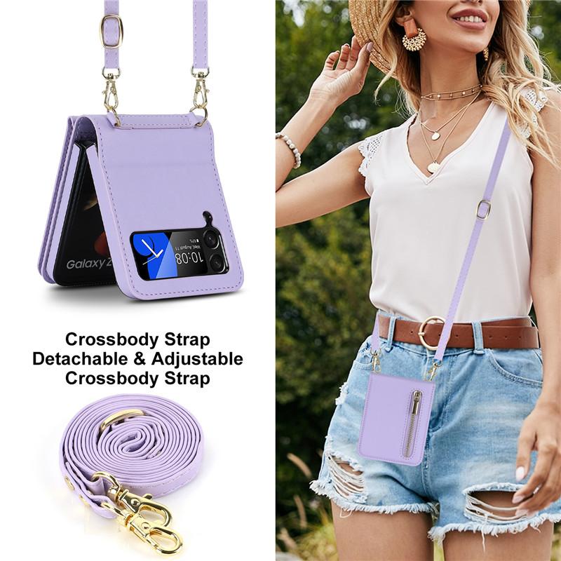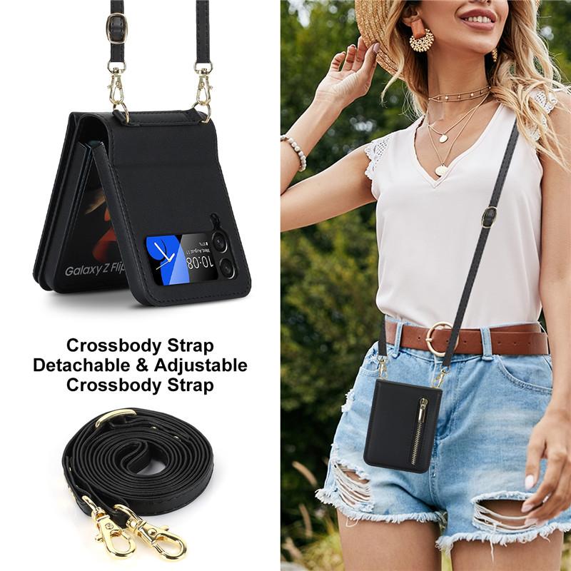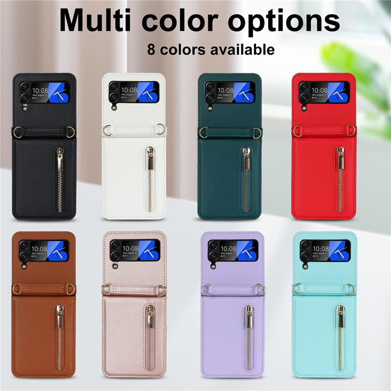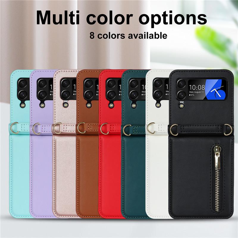 for Samsung Galaxy Z Flip 6 4 5 Z Flip 3 Case Luxury Card Slot Phone Holder Zipper Wallet Crossbody Cover Folding Case Coque
