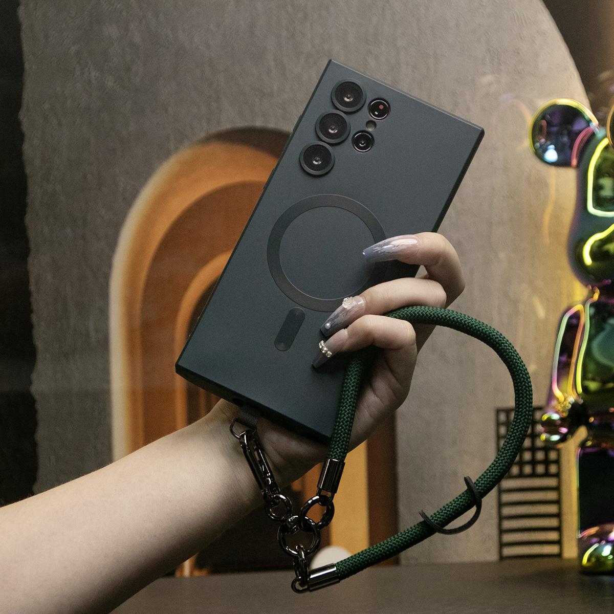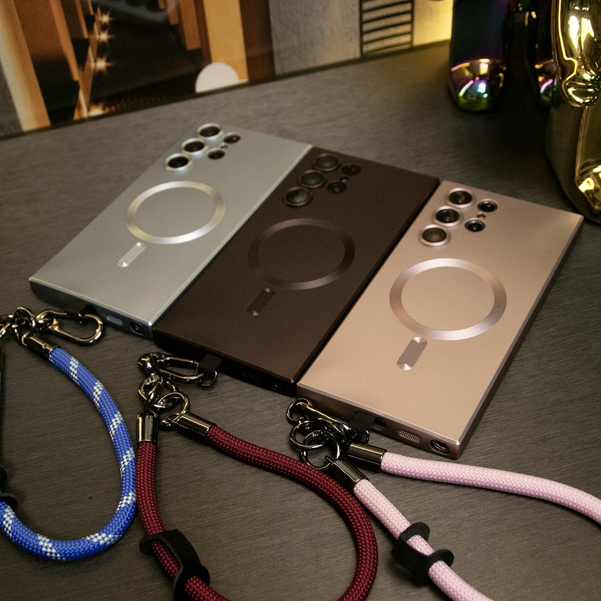 For Samsung S24FE S24Ultra S24 S23 S22 S21 Note20 FE Plus Ultra Phone Case, Metallic Paint Magnetic Soft Glossy Slim , Full Camera Cover Phone Case With Multifunctional Climbing Rope