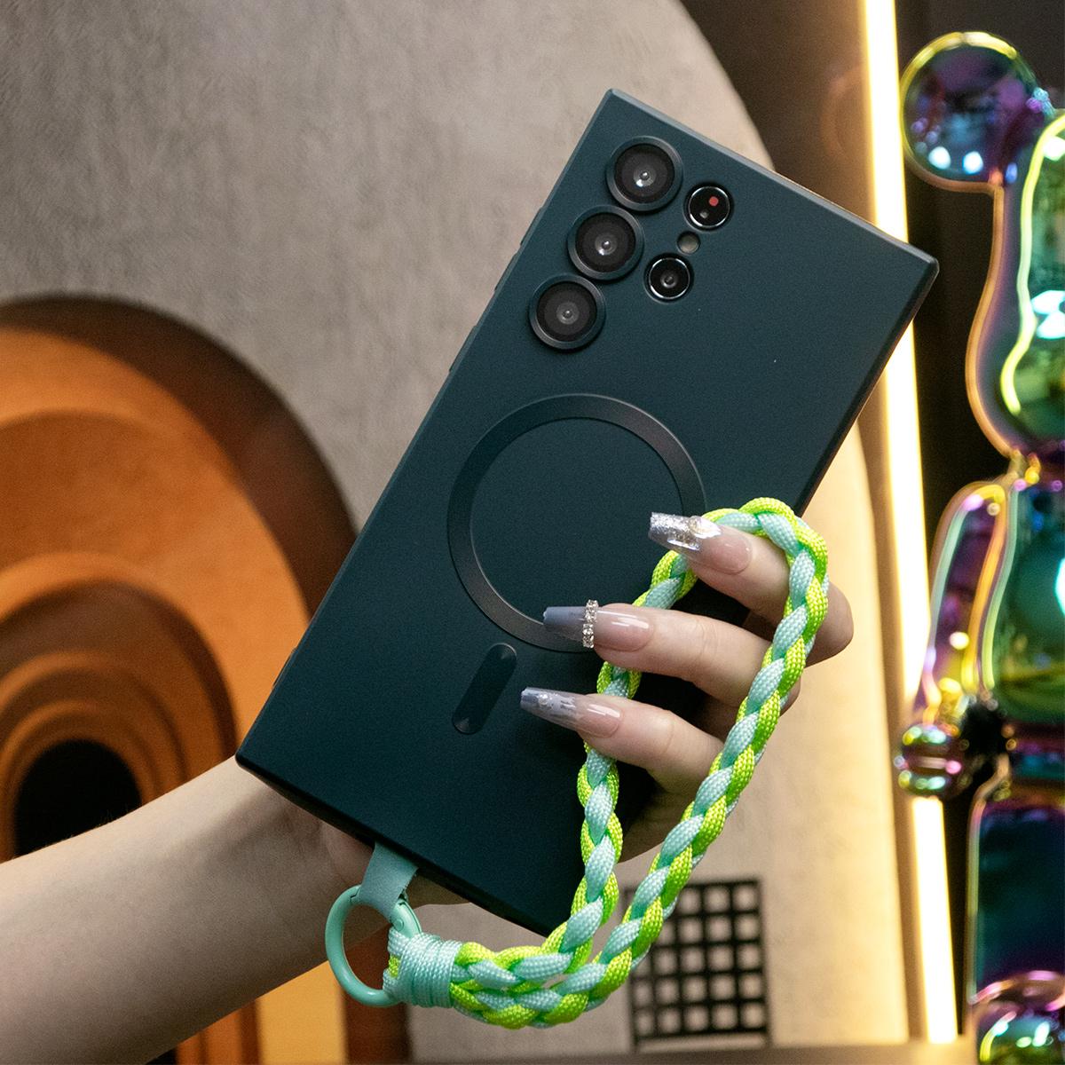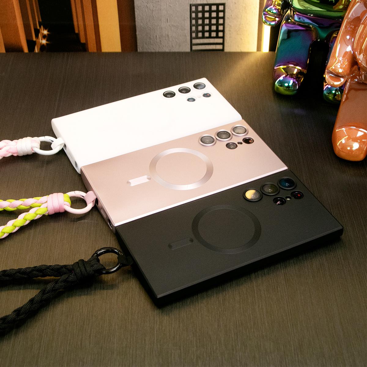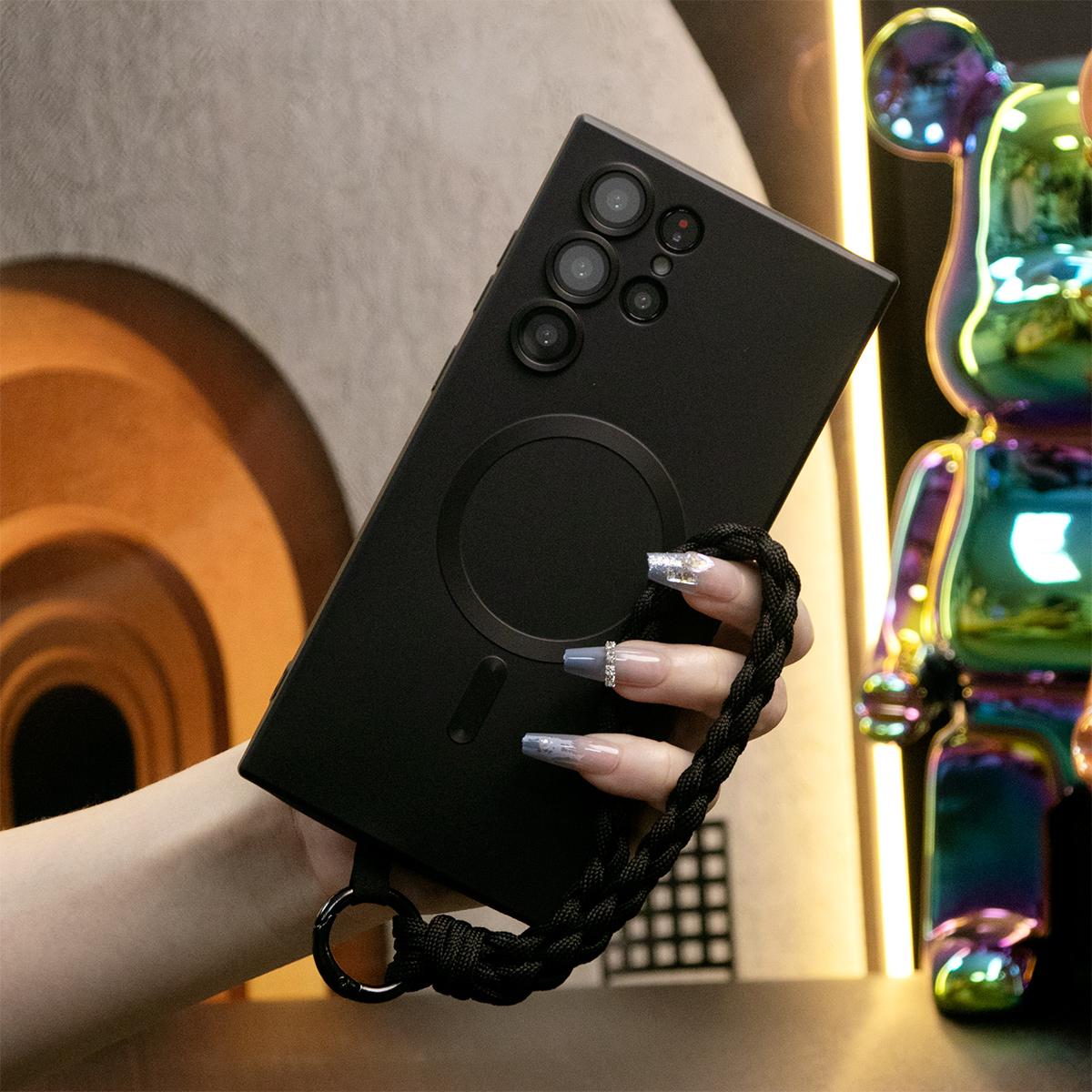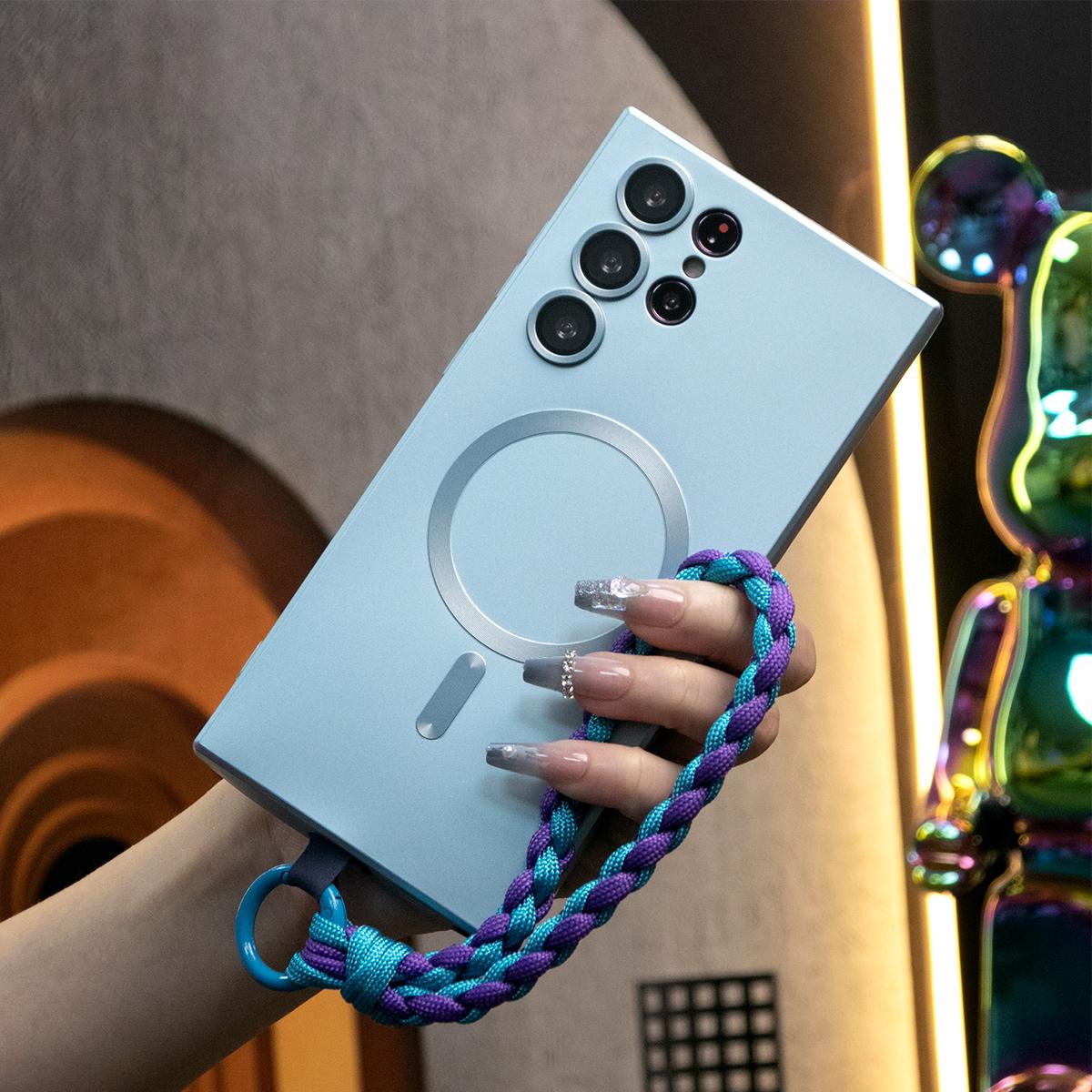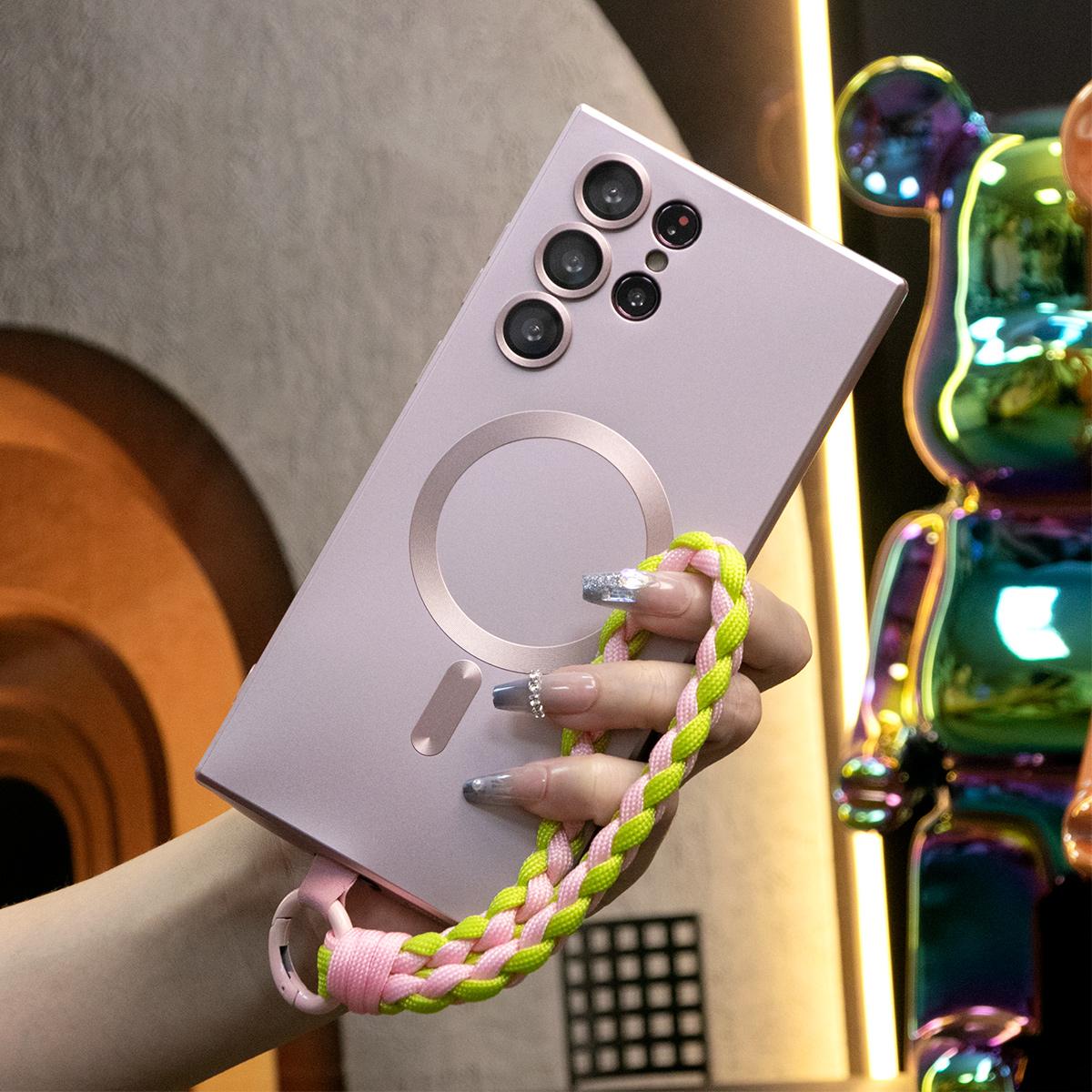 For Samsung S24FE S24Ultra S24 S23 S22 S21 Note20 FE Plus Ultra Phone Case, Metallic Paint Magnetic Soft Glossy Slim , Full Camera Cover Support Wireless Charging With Woven Wristband