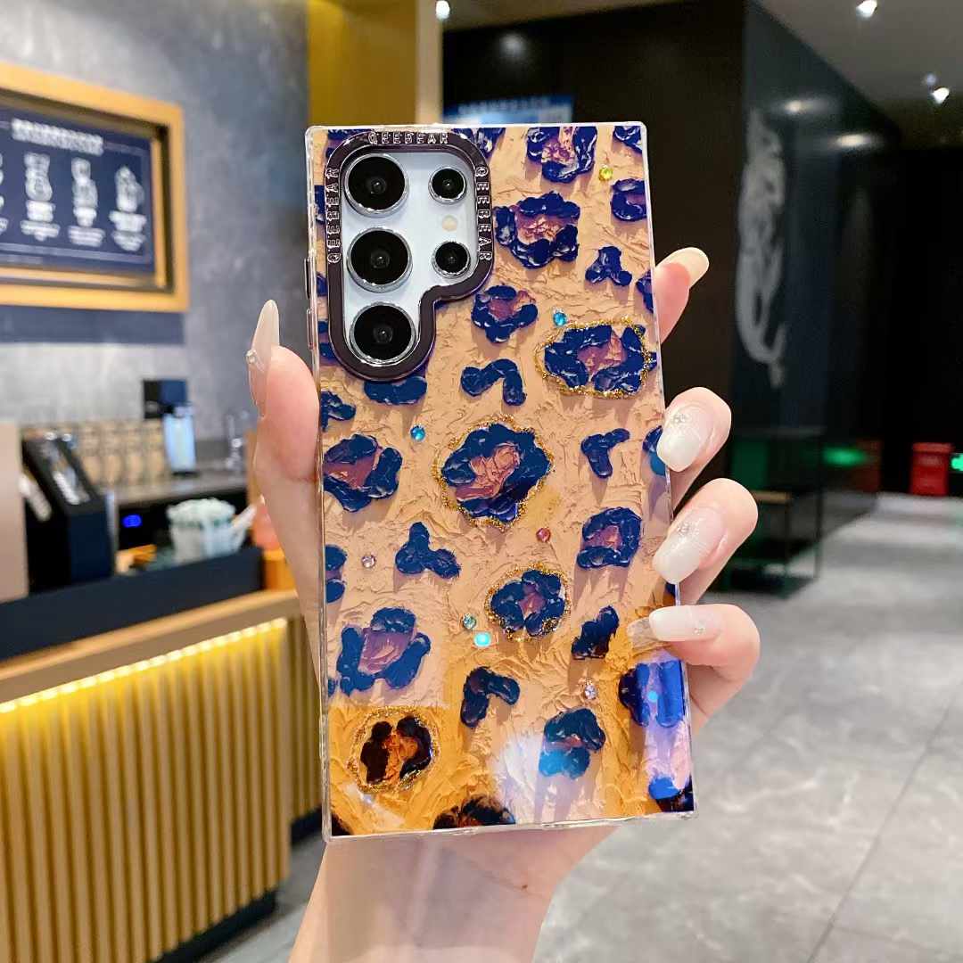 For Samsung S25 S24 S23 S22 A34 A35 A53 A54 A55 Note20Ultra Phone Case, Luxury Panda Leopard Rainbow Butterfly Elephant Oil Painting Metal Camera Frame Anti-drop Hard Shockproof Full Cover