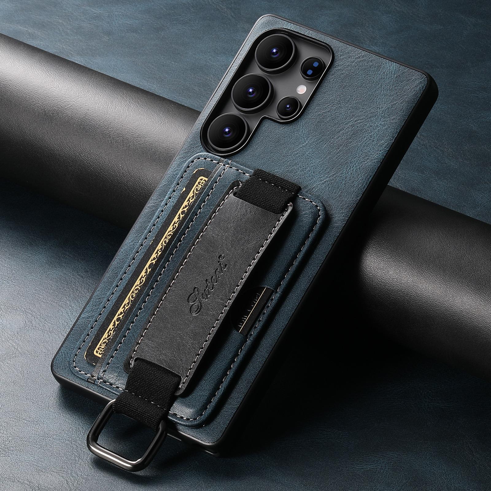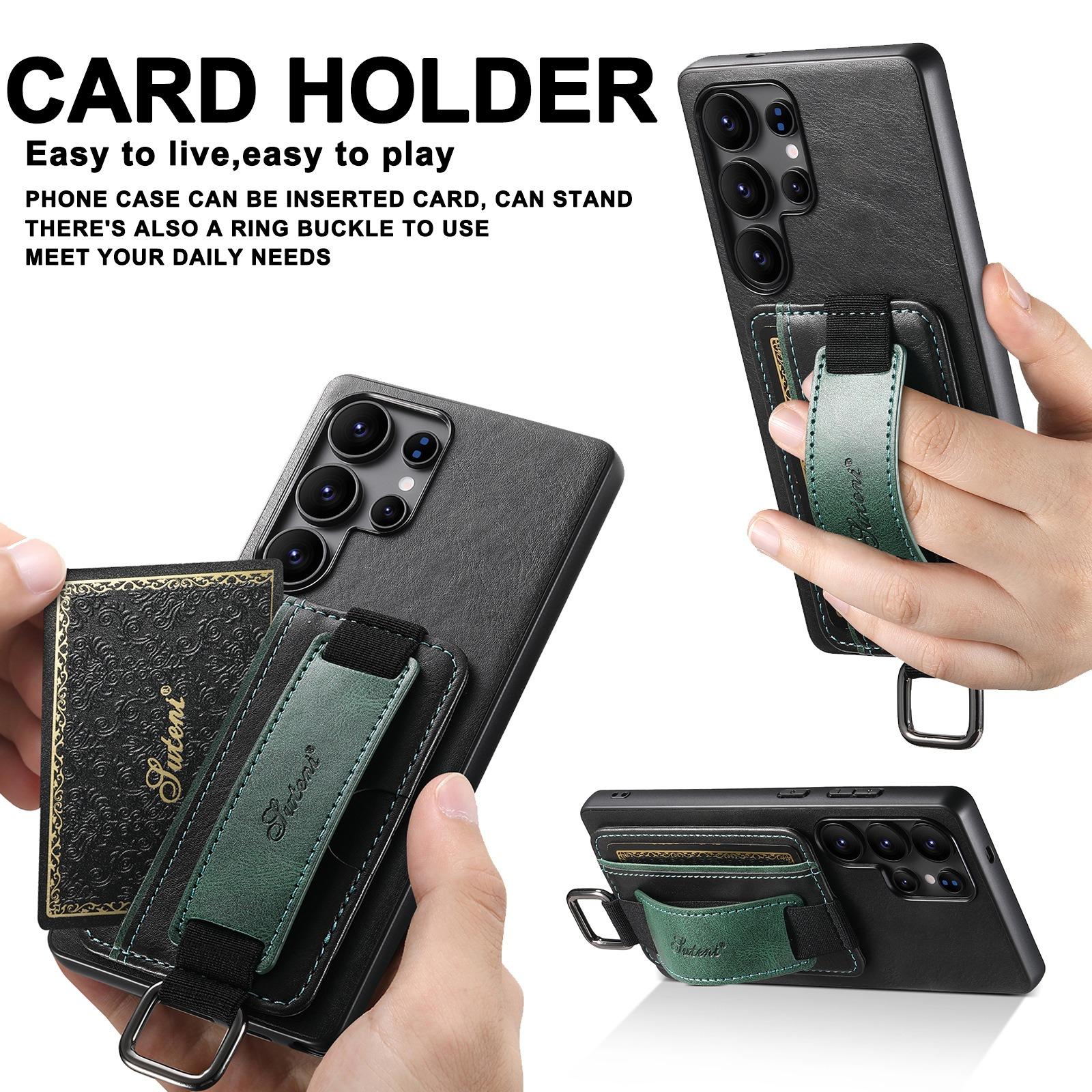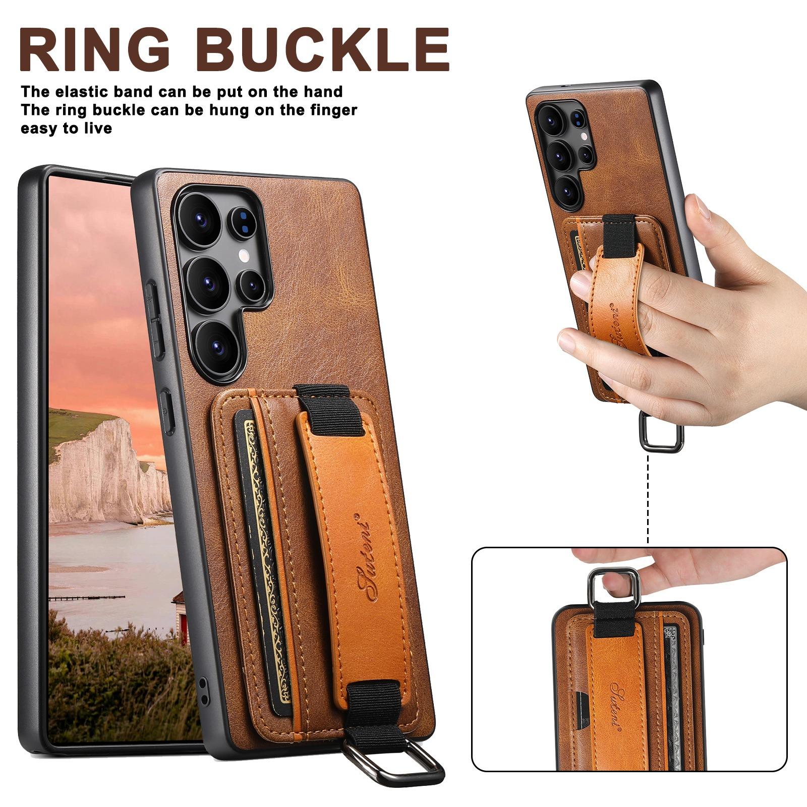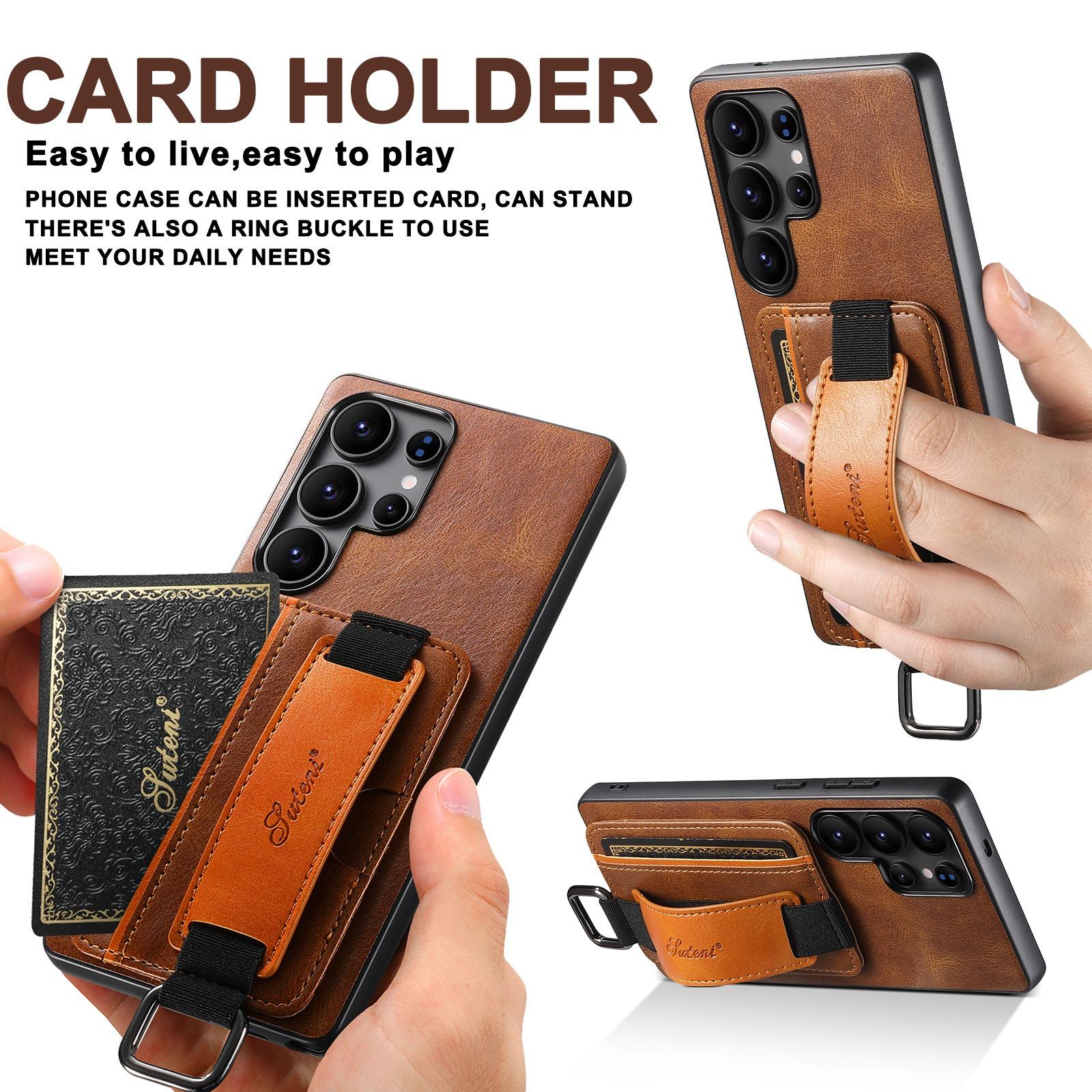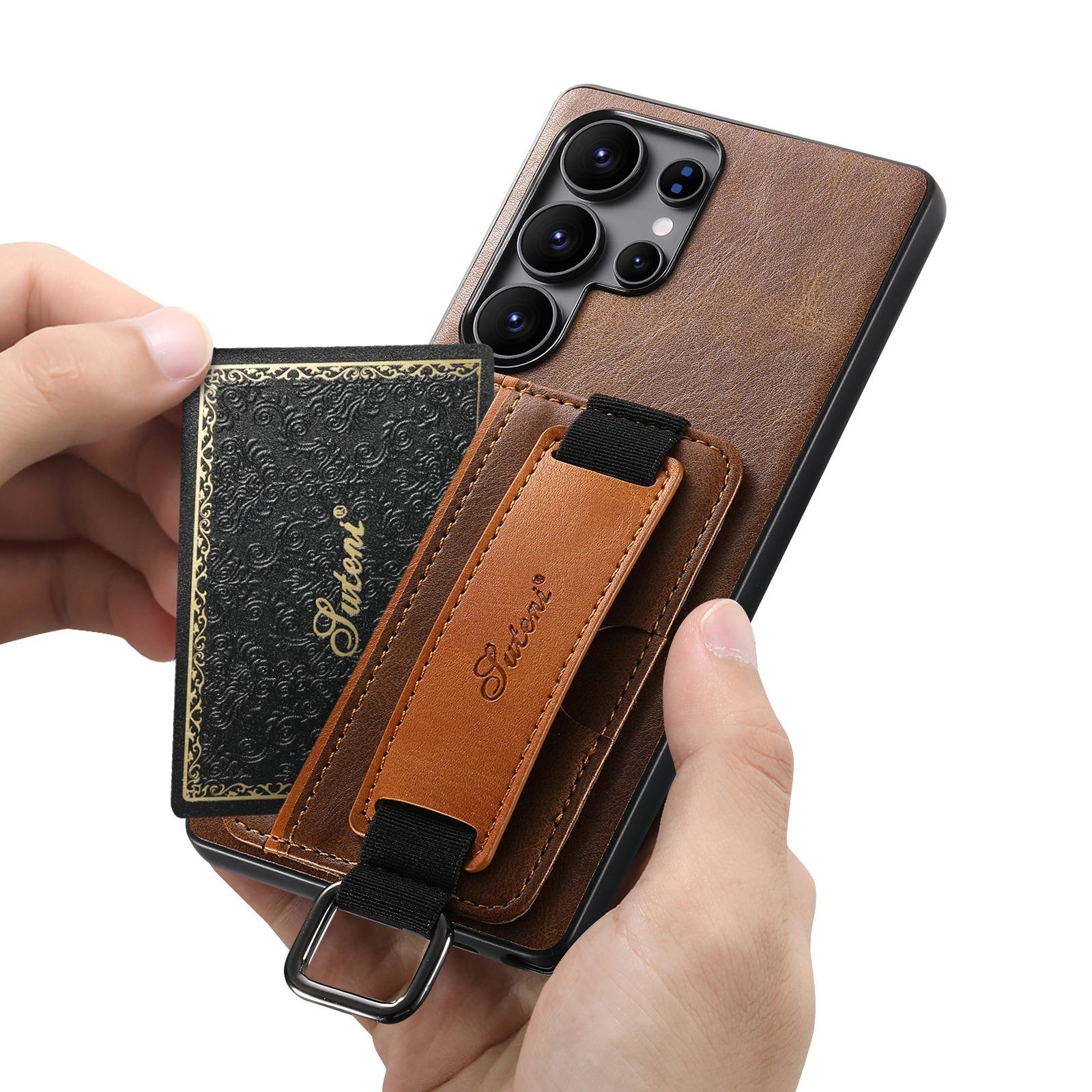 For Samsung S25 S24 S23 S22 Note20 Ultra Plus Phone Case, Smooth Surface Oil Wax Pattern Flip Elasticity Wallet Card Slot Wristband Leather Kickstand Shockproof Phone Case