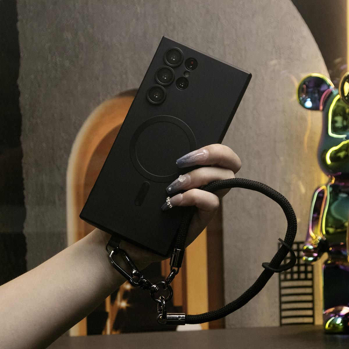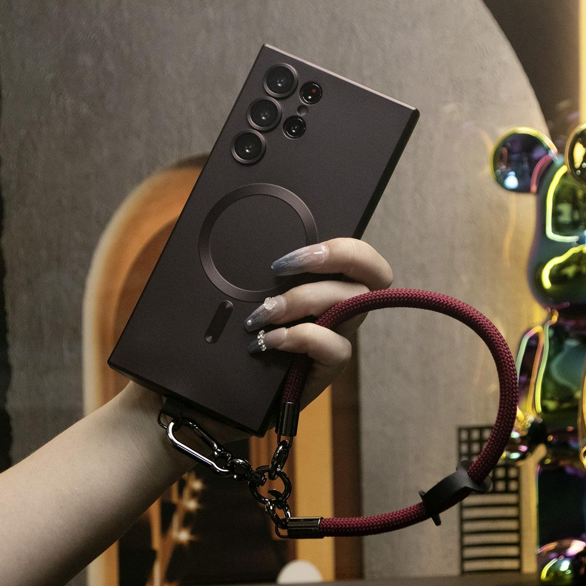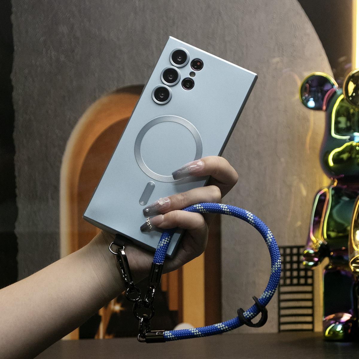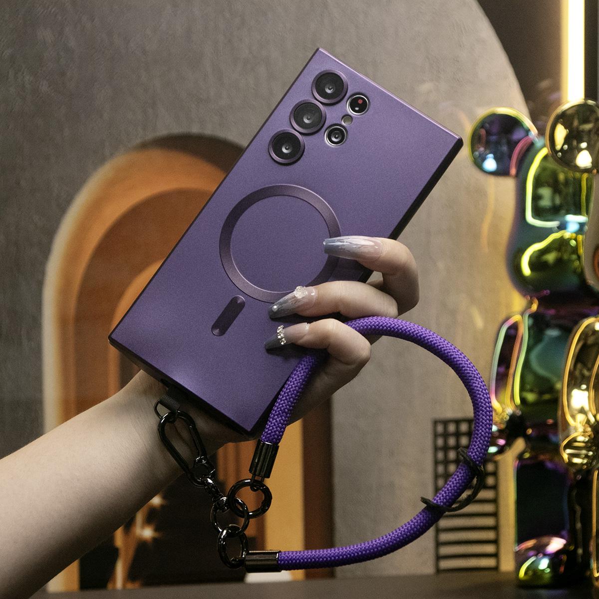 For Samsung S25 S24FE S23Plus S22 S21 Note20 Ultra Phone Case, Metallic Paint Magnetic Soft Glossy Slim , Full Camera Cover Phone Case With Multifunctional Climbing Rope