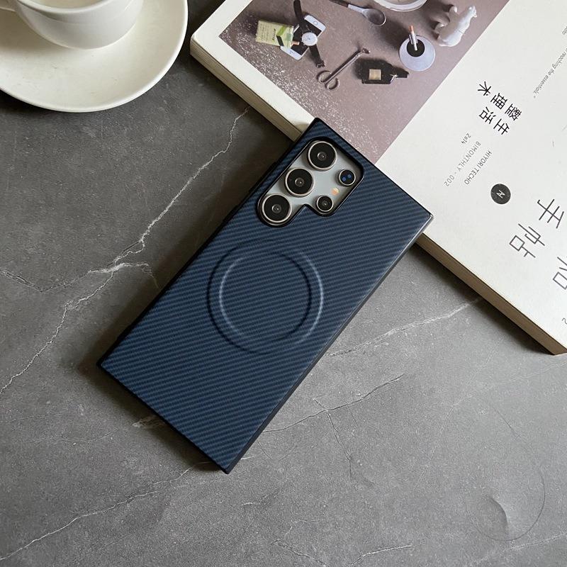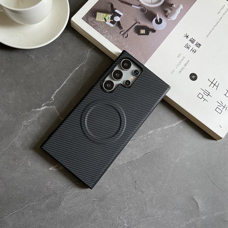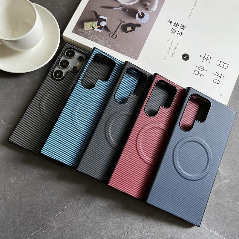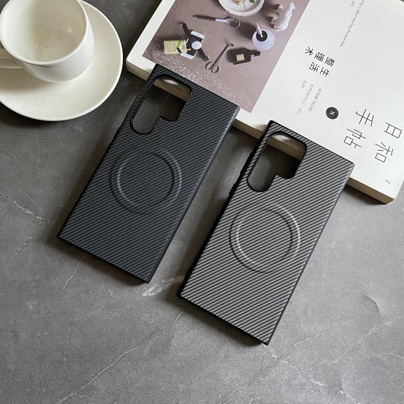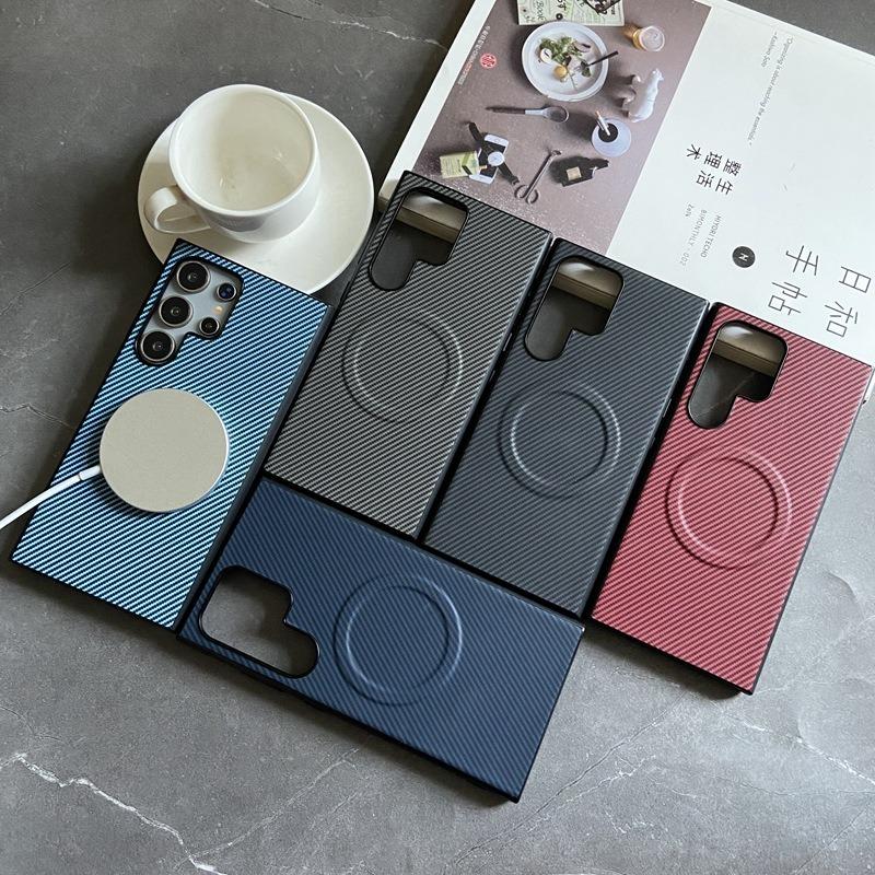 For Samsung S25Ultra S24 S23 S22 Note20 A15 A25 A35 A36 A55 A56 Phone Case, Antislip Carbon Fiber Matte Luxury Leather Strong Magnetic Slim Emboss Protection Shockproof Hard Full Cover