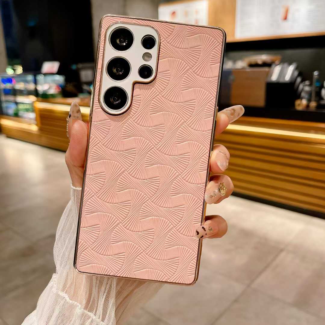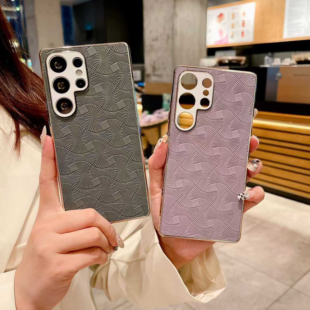 For Samsung S25Ultra S25 S24 S23 A56 A55 A54 A53 A36 A26 A16 Phone Case, Luxury Glitter Fanshaped Pattern Leather Plating Matte Shockproof Hard Full Cover