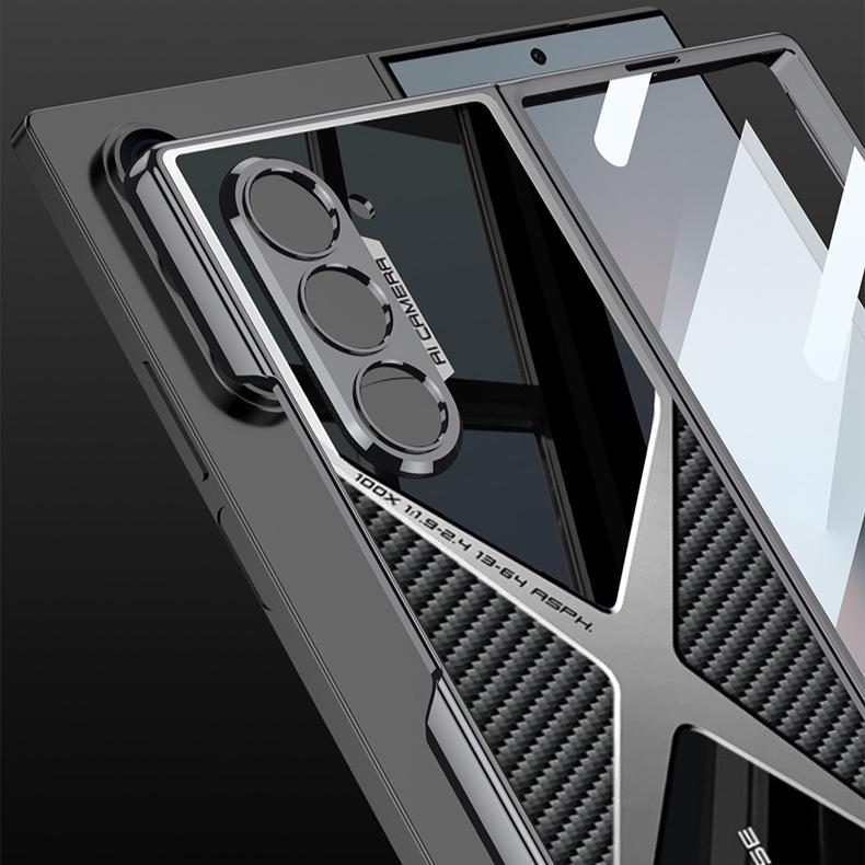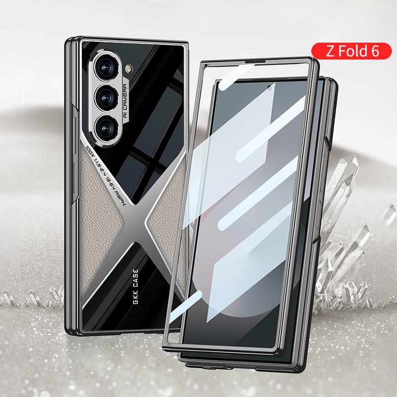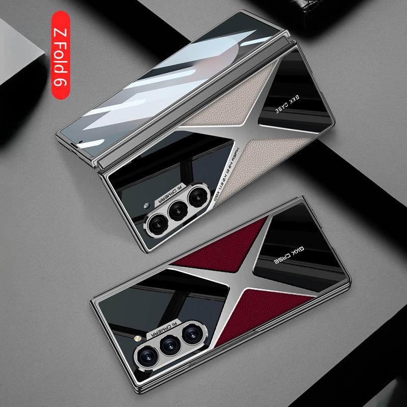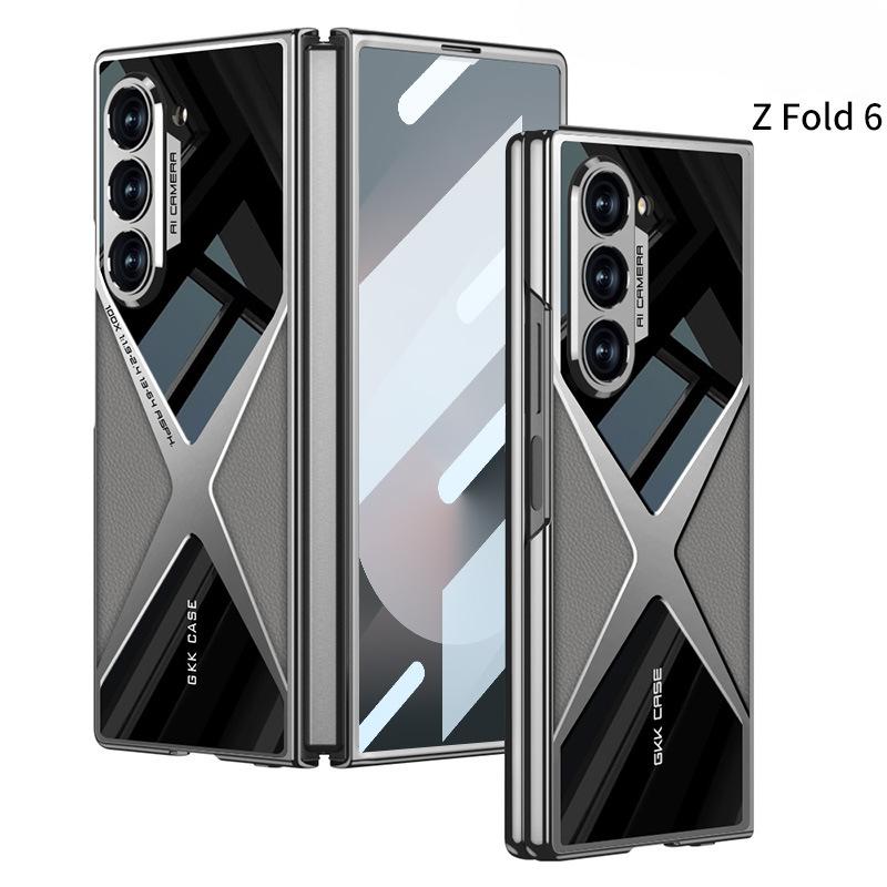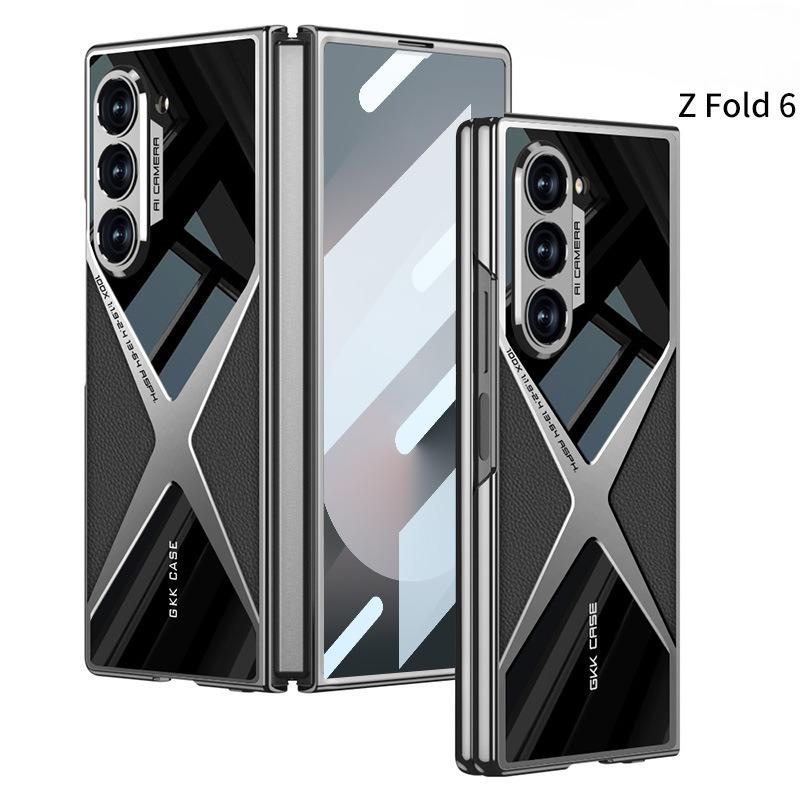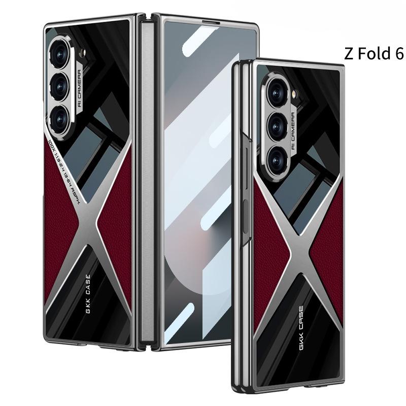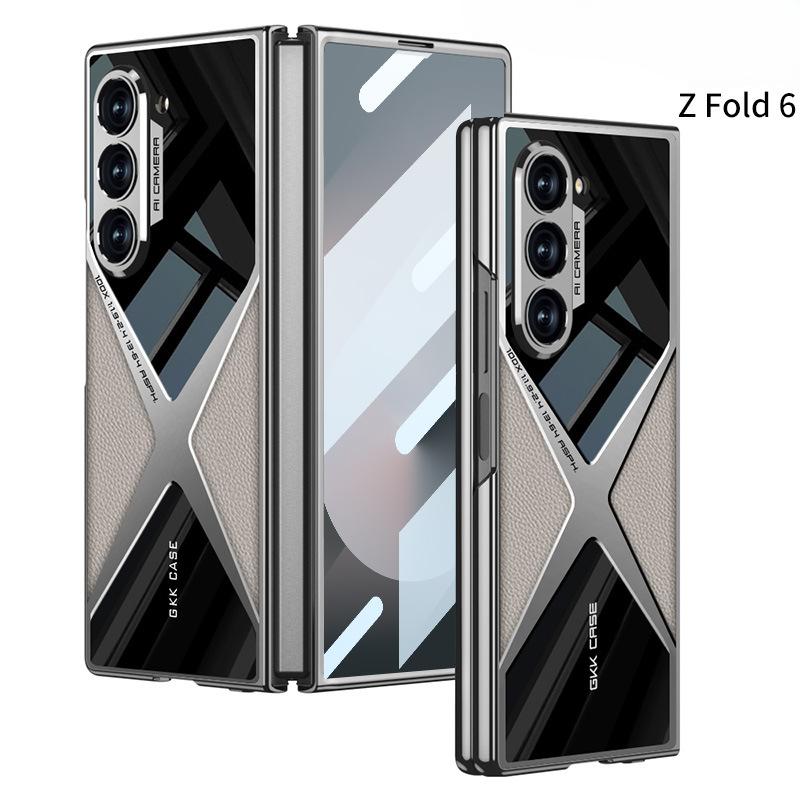 For Samsung Z Fold6 Fold5 Fold4 Fold3 Case, Men Leather Electroplate Slim Fit Business Full Cover, Luxury Elegant Phone Case Camera Protection Shockproof Hard Cover