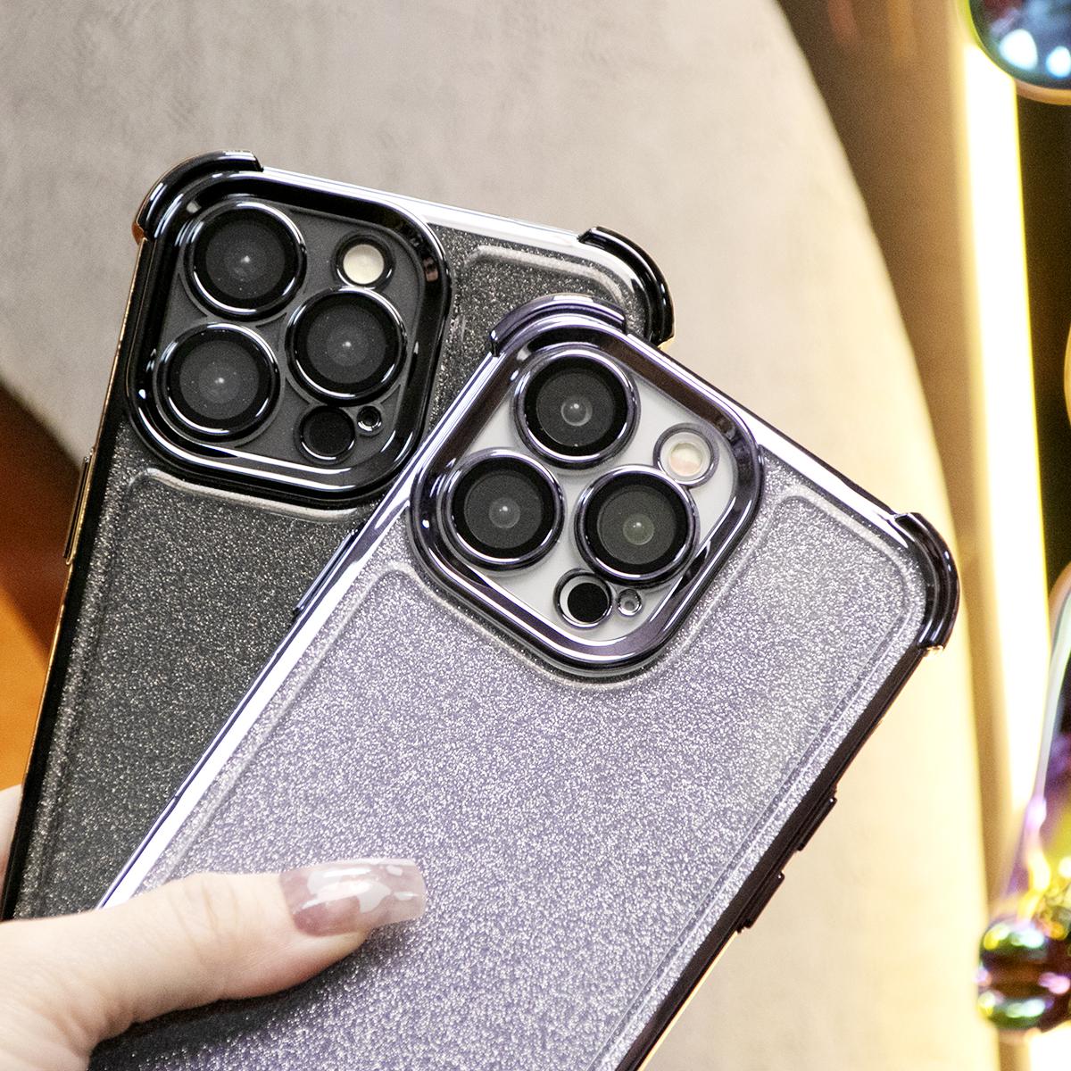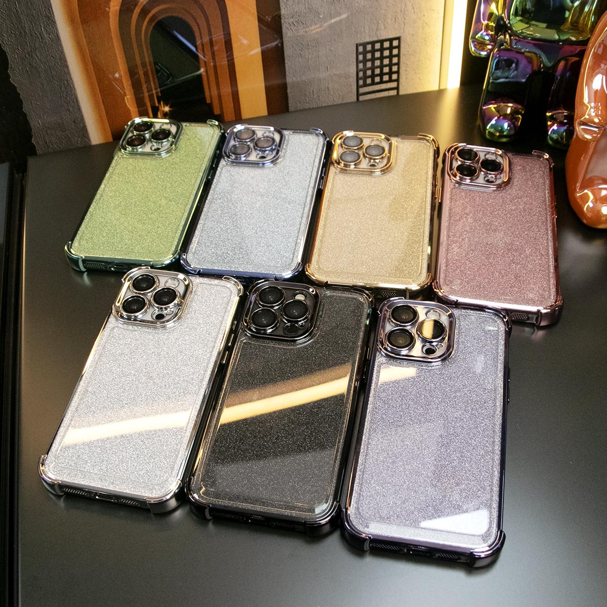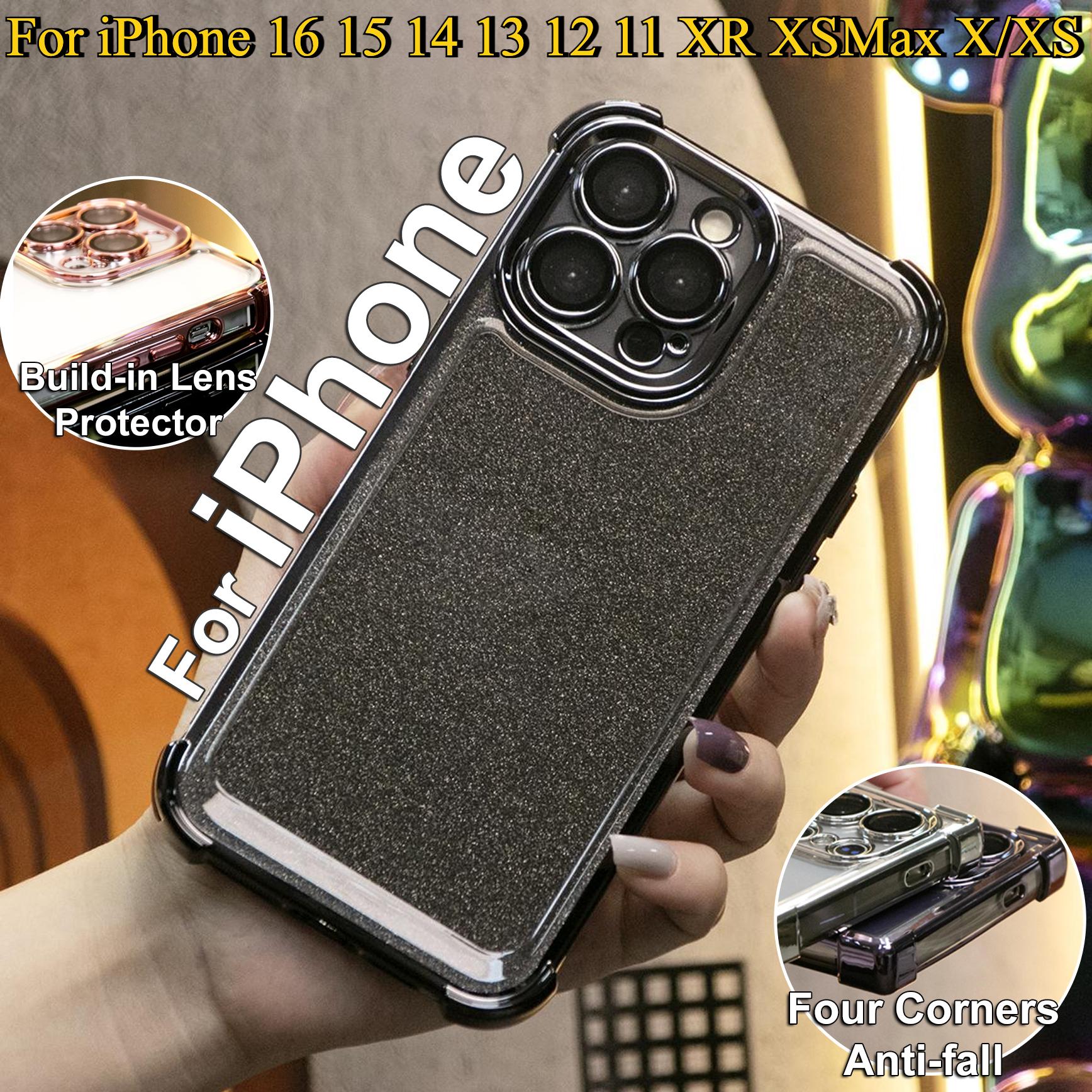 Glitter Clear Four Corners Anti Fall Transparent Plating Phone Case For iPhone 16 15 14 13 12 11 XR XSMax X/XS Built-in Camera Protector Hard Full Cover