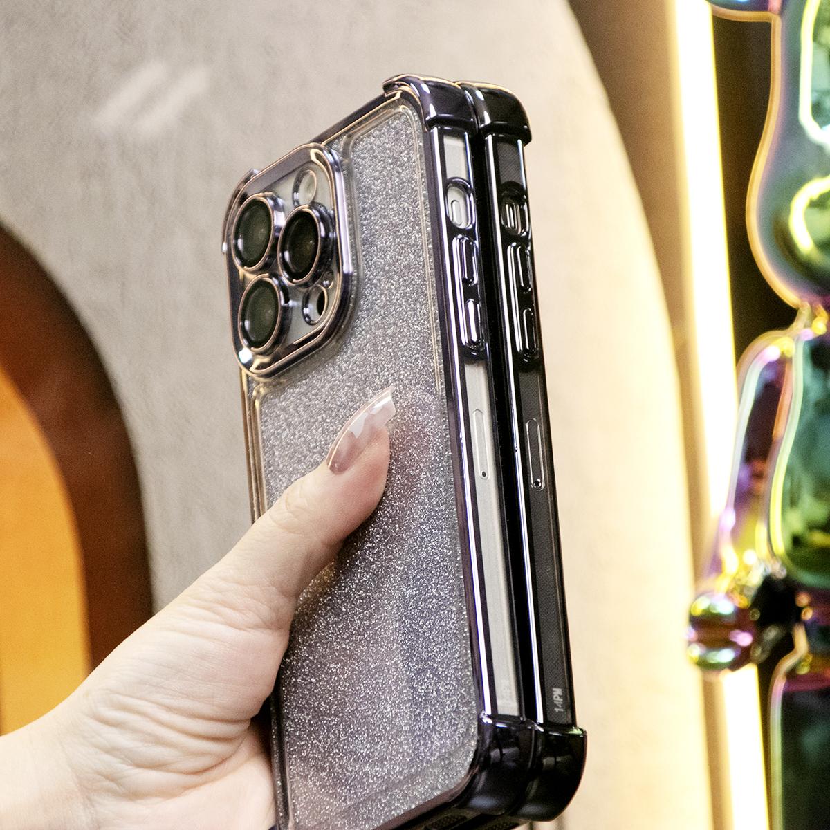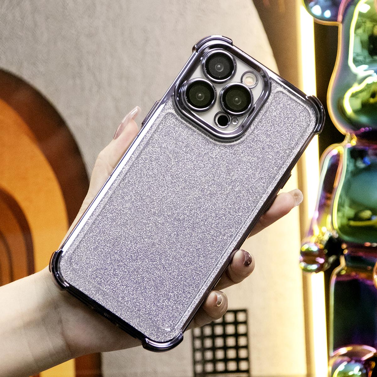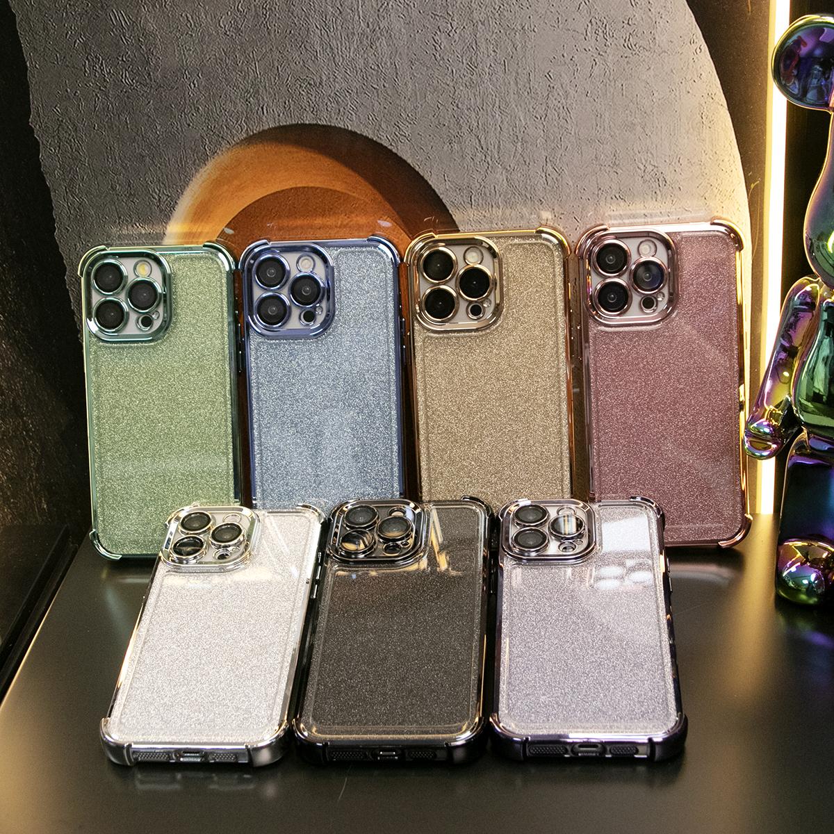 Glitter Clear Four Corners Anti Fall Transparent Plating Phone Case For iPhone 16 15 14 13 12 11 XR XSMax X/XS Built-in Camera Protector Hard Full Cover