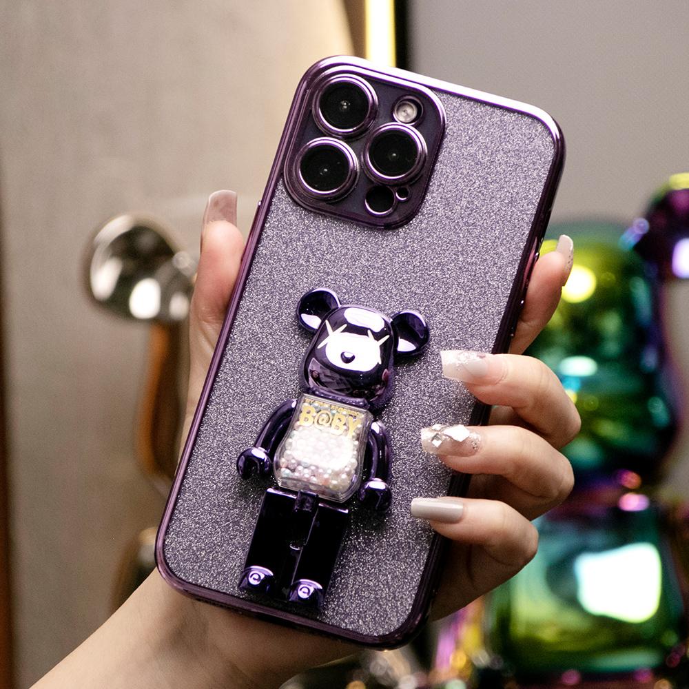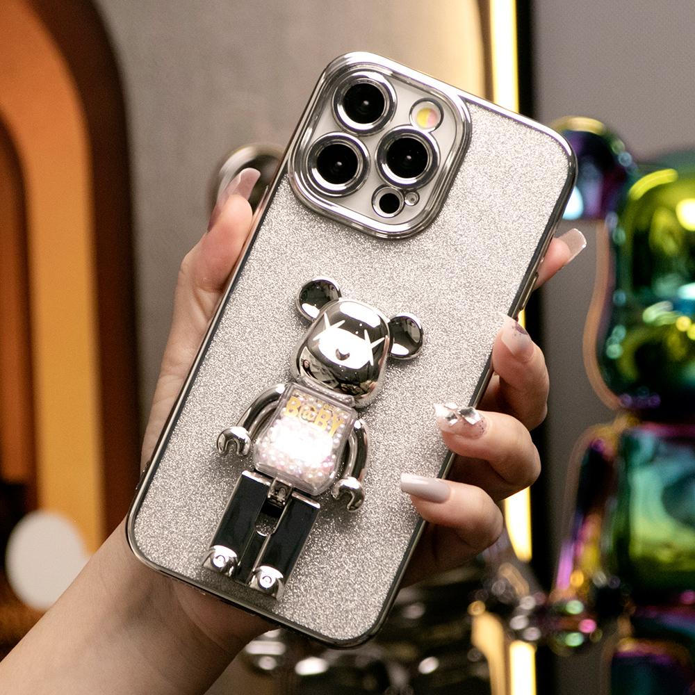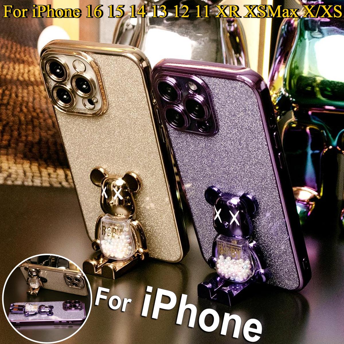 Glitter Electroplated 3D Candy Bear Kickstand Phone Case For iPhone 16 15 14 13 12 11 XR XSMax X/XS