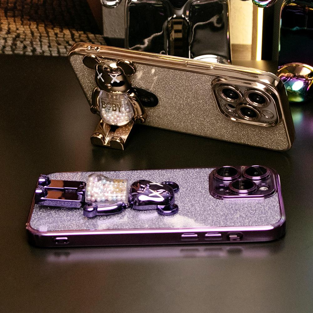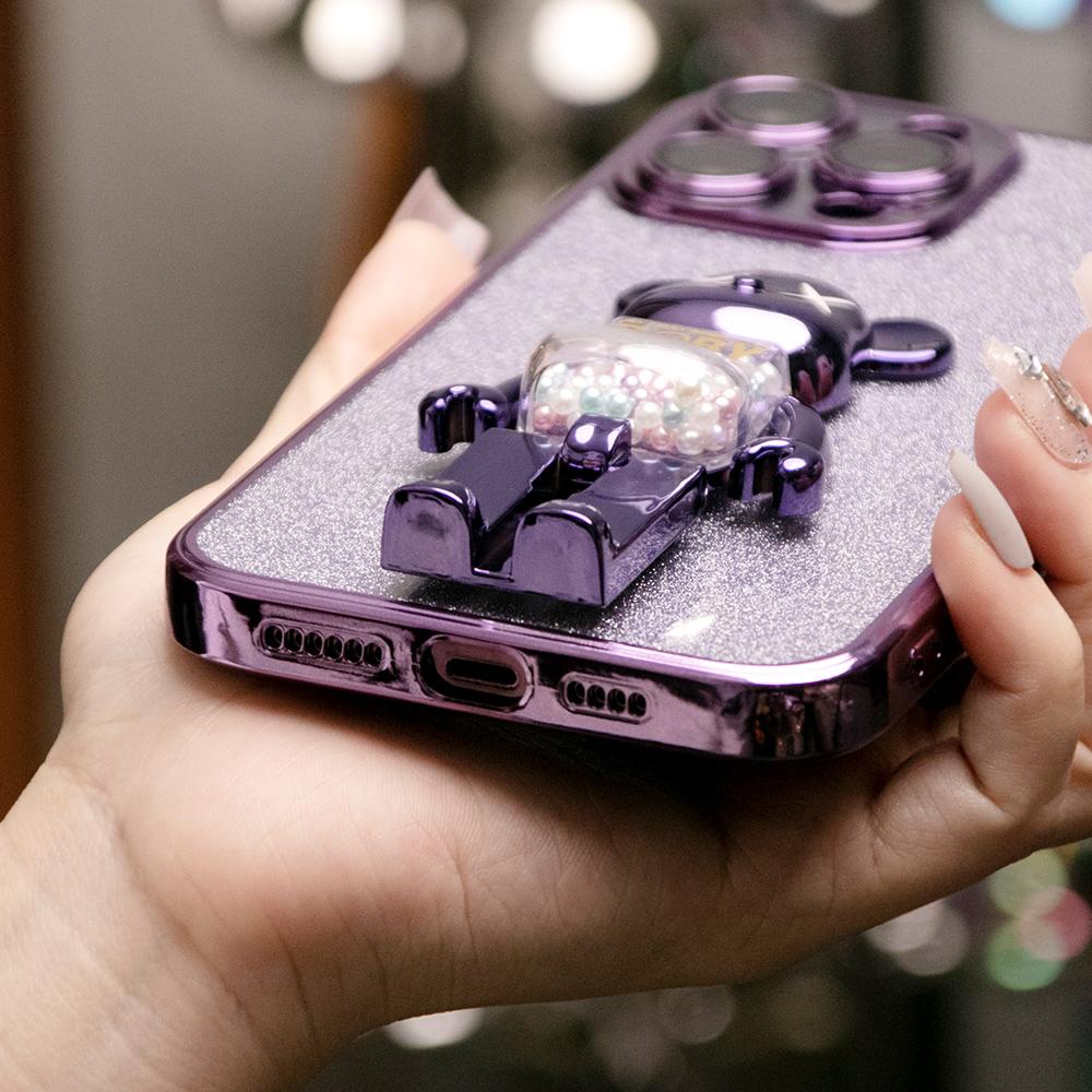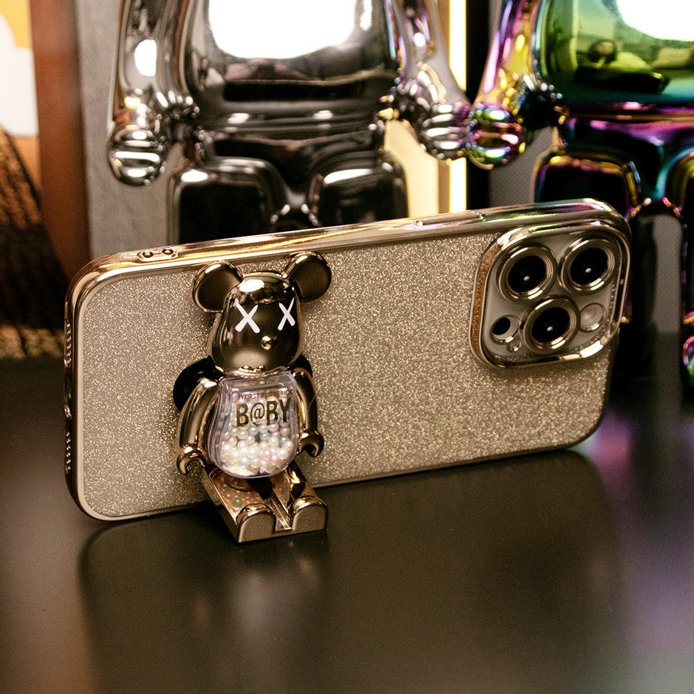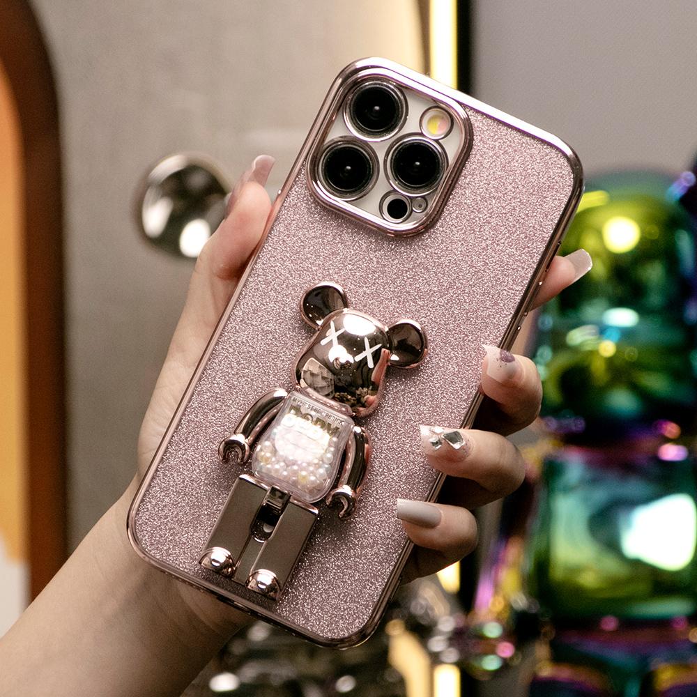Glitter Electroplated 3D Candy Bear Kickstand Phone Case For iPhone 16 15 14 13 12 11 XR XSMax X/XS