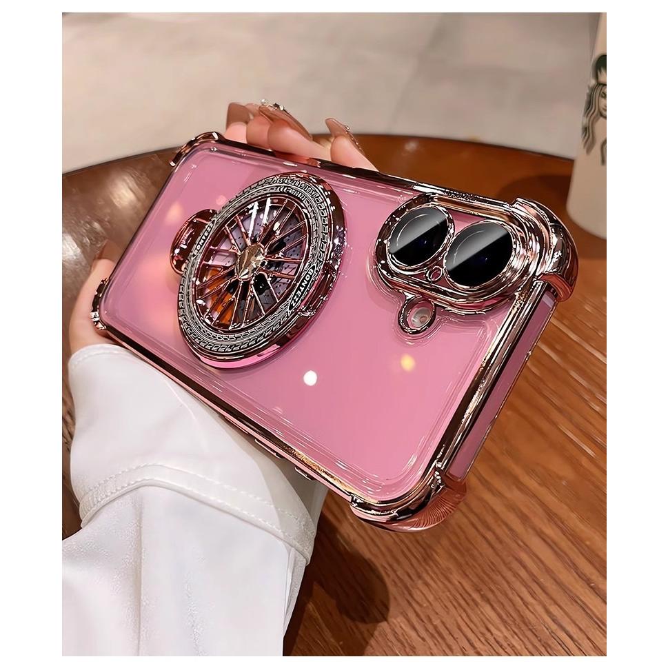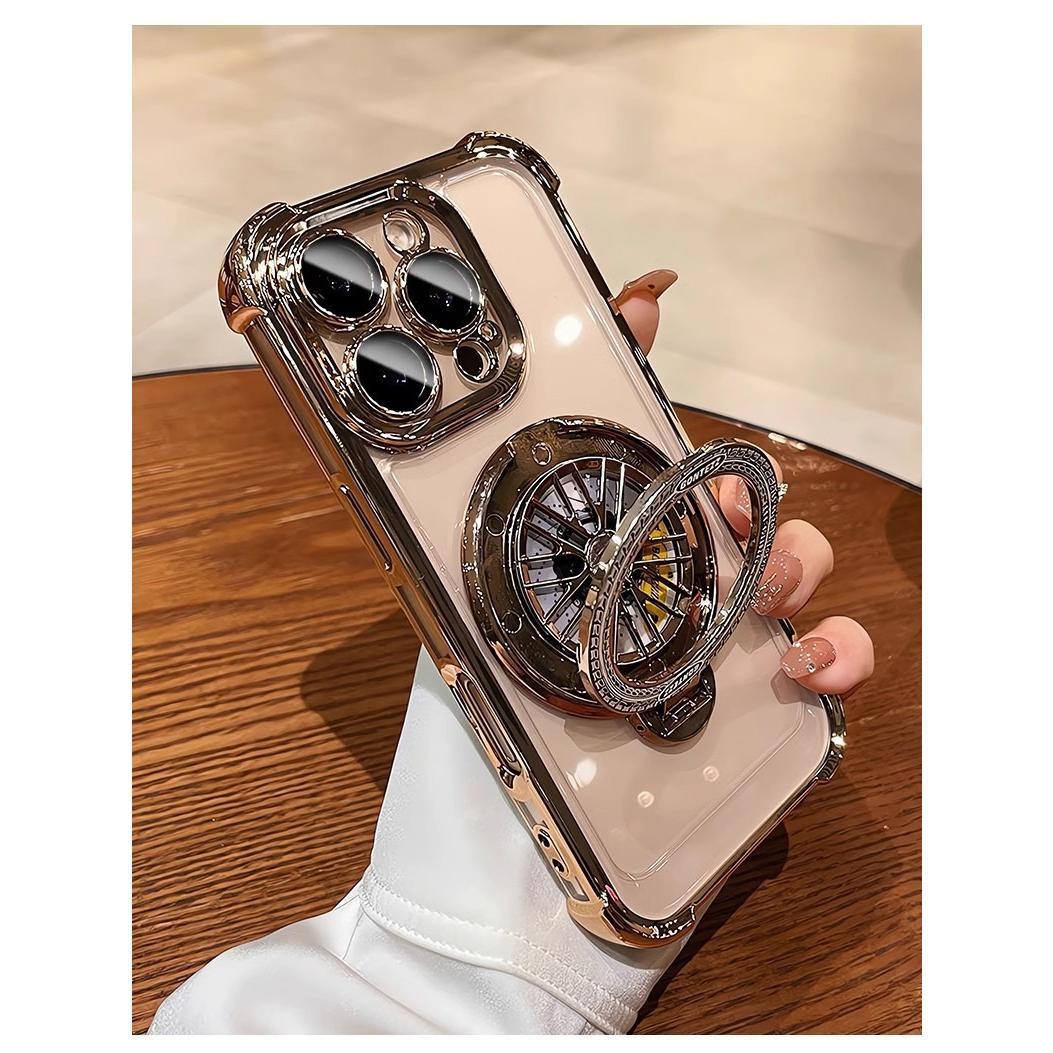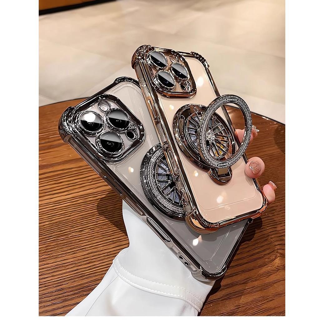 Glitter Plating Acrylic with Len Protector Phone Case with Metal Magnetic Gyro Rotating Kickstand For iPhone 16ProMax 15 14 13 12 Four Corner Shockproof Hard Full Cover