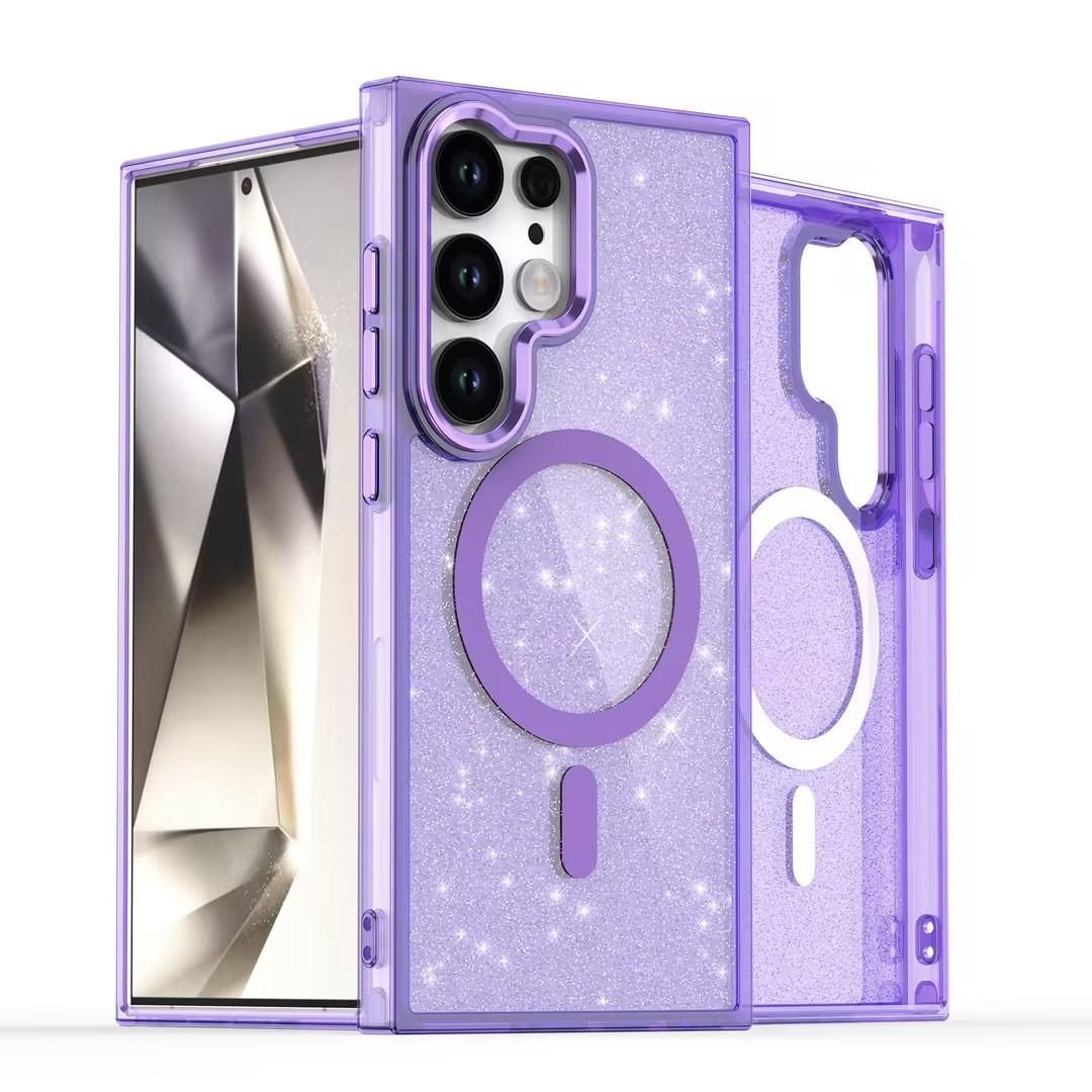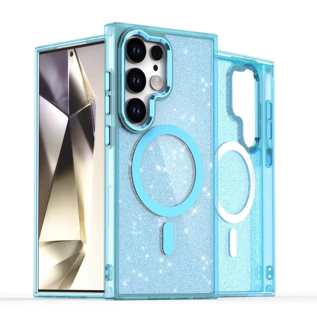 Glitter Shining Case For Samsung S24 23  Ultra Plus FE A05 A05S A15 A25 A35 A55 Magsafe Plating Wireless Charging Bling Cover Back Shell Girls