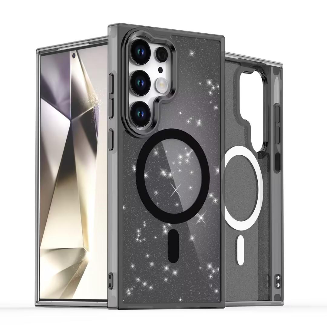 Glitter Shining Case For Samsung S24 23 Ultra Plus FE A05 A05S A15 A25 A35 A55 Magsafe Plating Wireless Charging Bling Cover Back Shell Girls