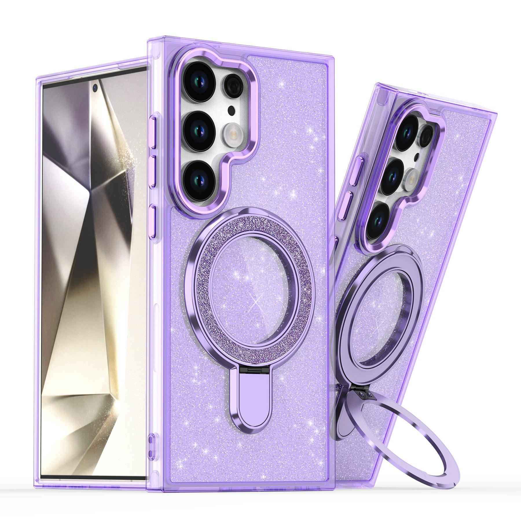 Glitter Shining Case With Magnetic Kickstand For Samsung S24 23  Ultra  Plus FE A05 A05S A15 A25 A35 A55 Magsafe Plating Wireless Charging Bling Cover Back Shell Girls