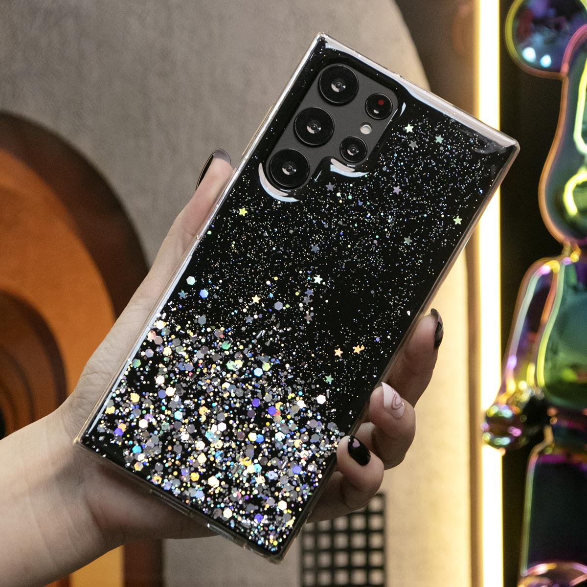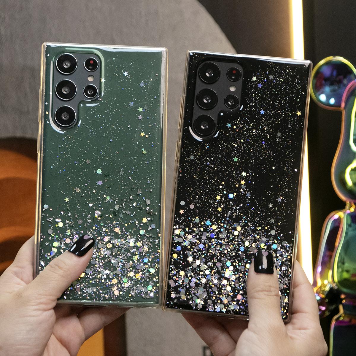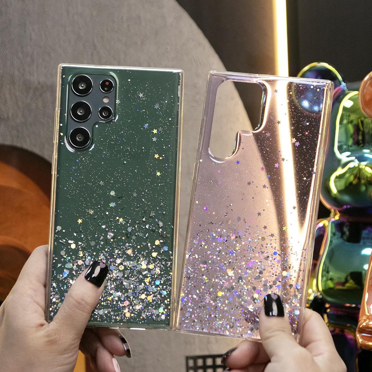 Glitter Star Sequin Basic Phone Case For Samsung Galaxy S24Ultra S24FE S24 S23 S22 S21 FE Note20Ultra A55 A35 A25 A15 Clear Soft TPU Back Cover