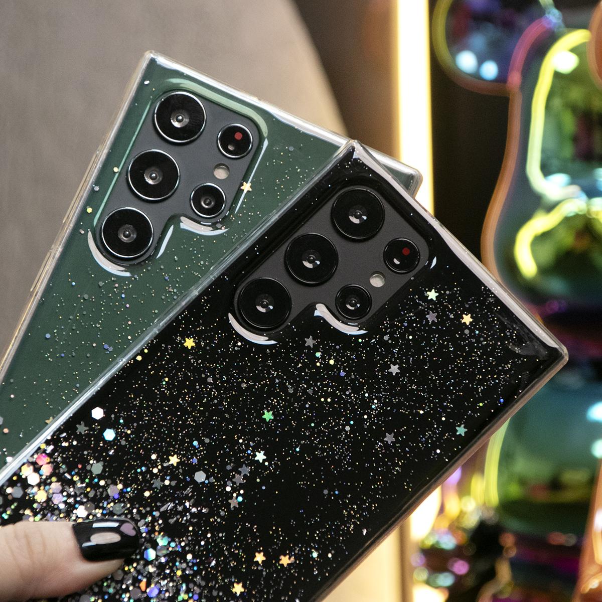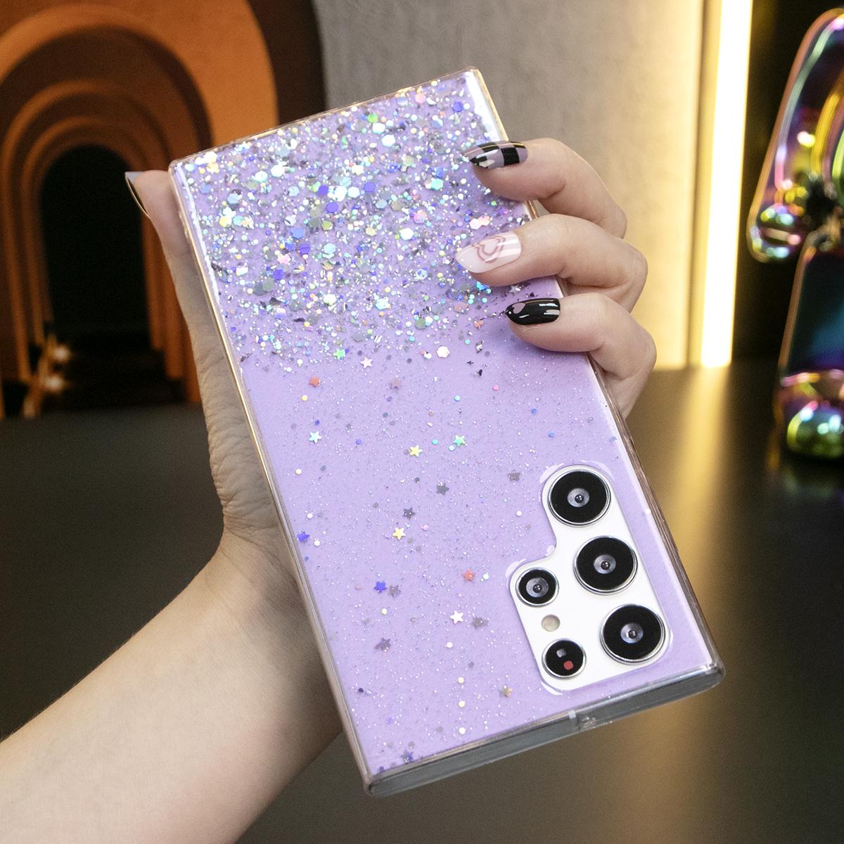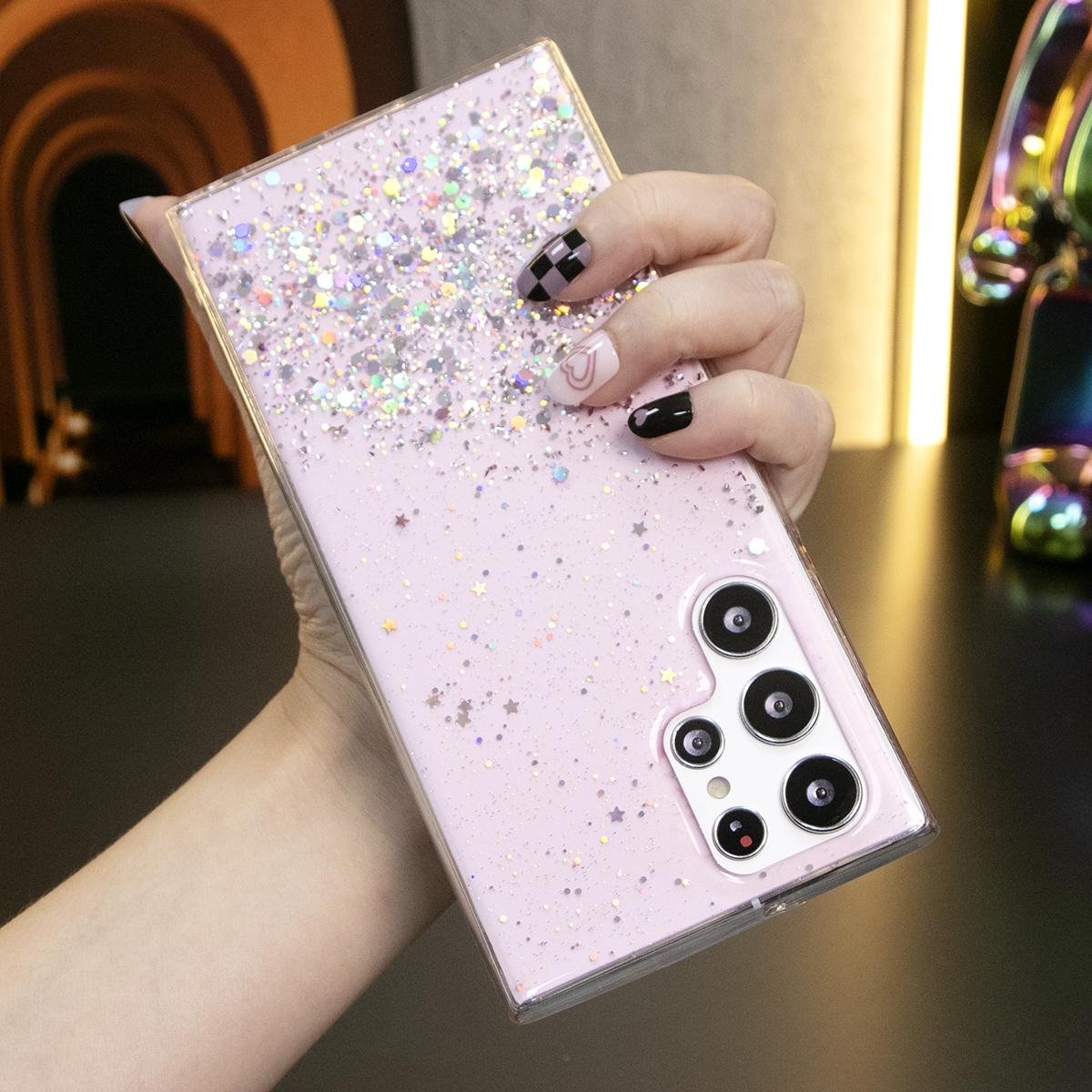 Glitter Star Sequin Basic Phone Case For Samsung Galaxy S24Ultra S24FE S24 S23 S22 S21 FE Note20Ultra A55 A35 A25 A15 Clear Soft TPU Back Cover