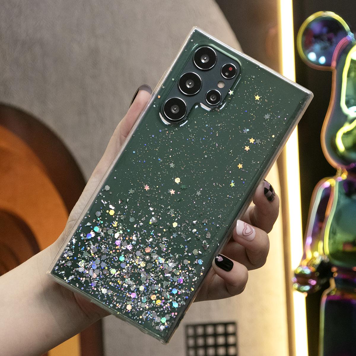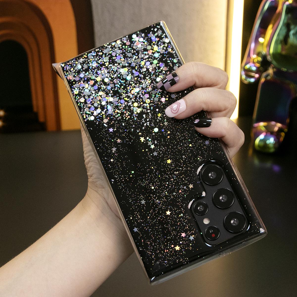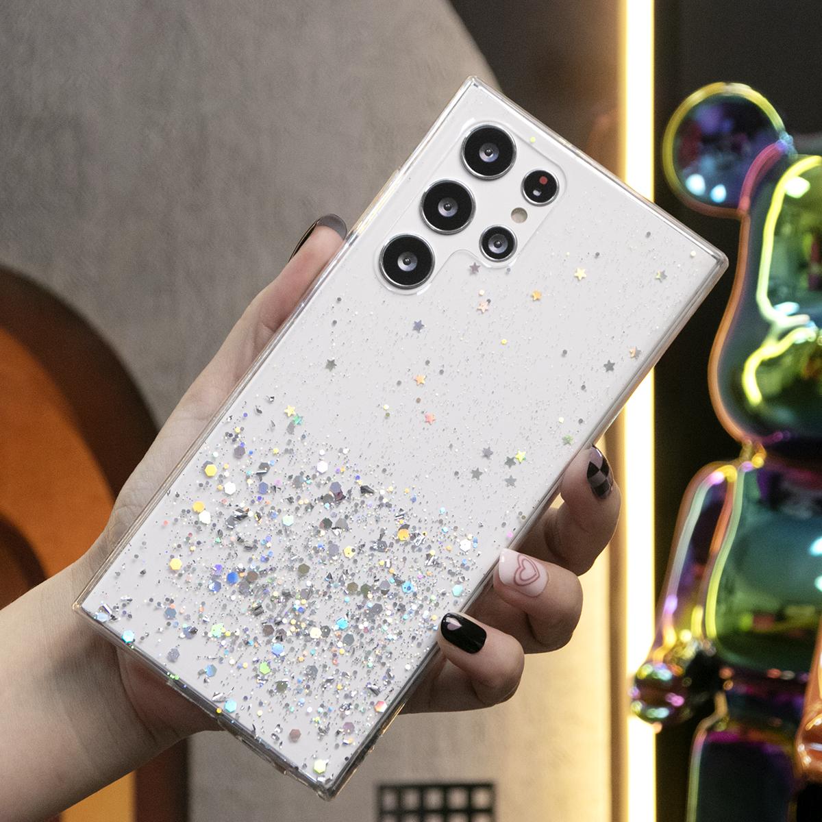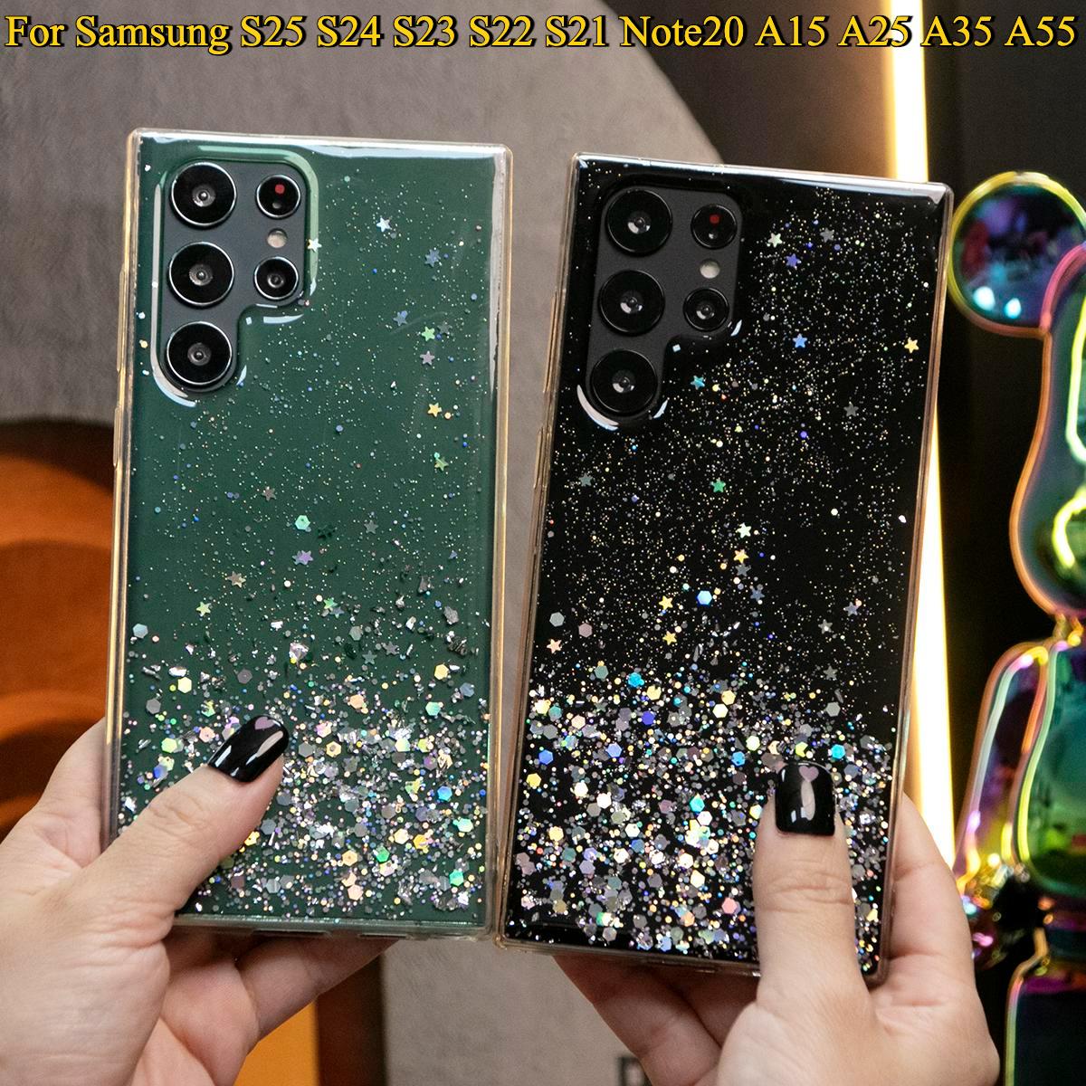 Glitter Star Sequin Basic Phone Case For Samsung S25 S24 S23 S22 S21 Note20 A15 A25 A35 A55 Clear Soft TPU Back Cover