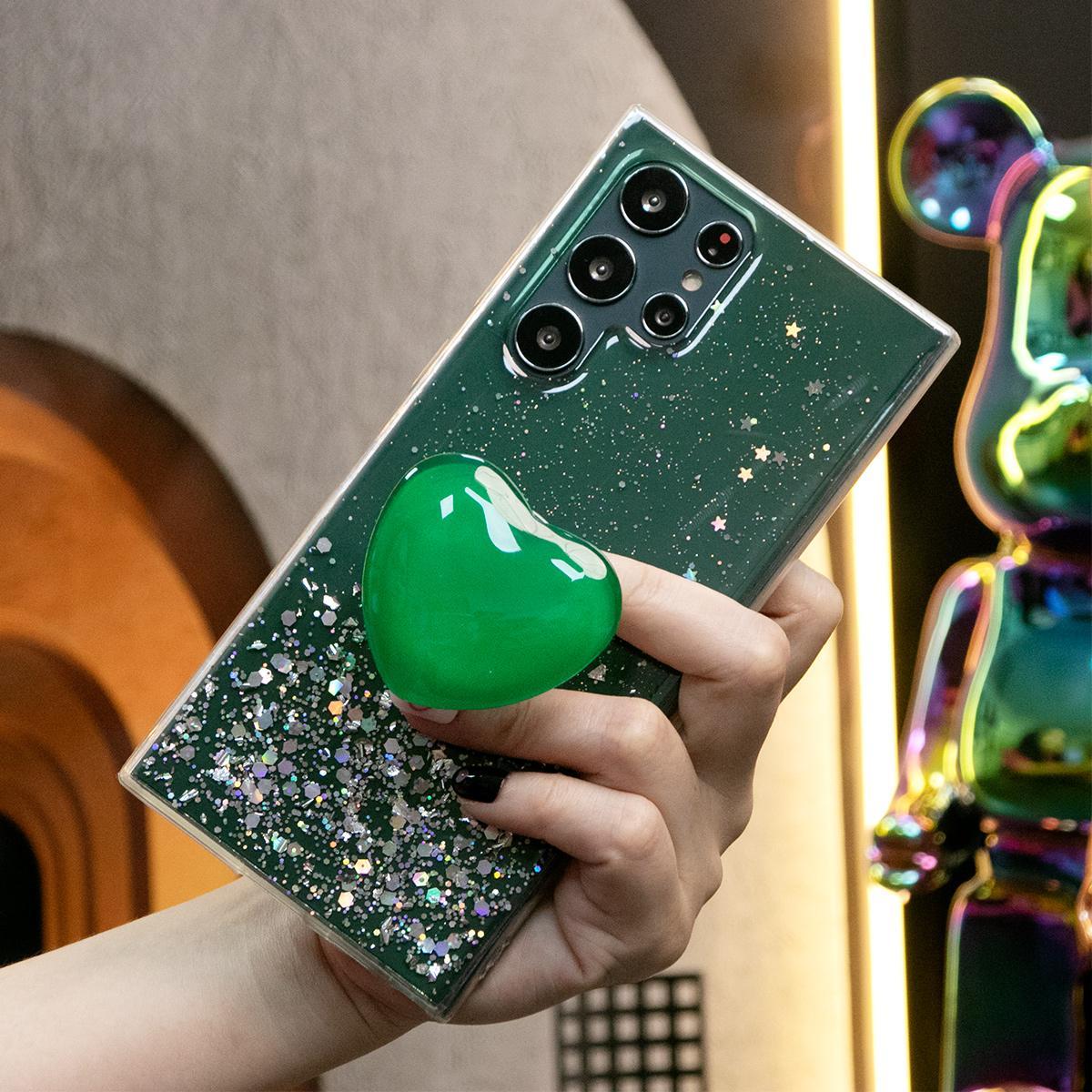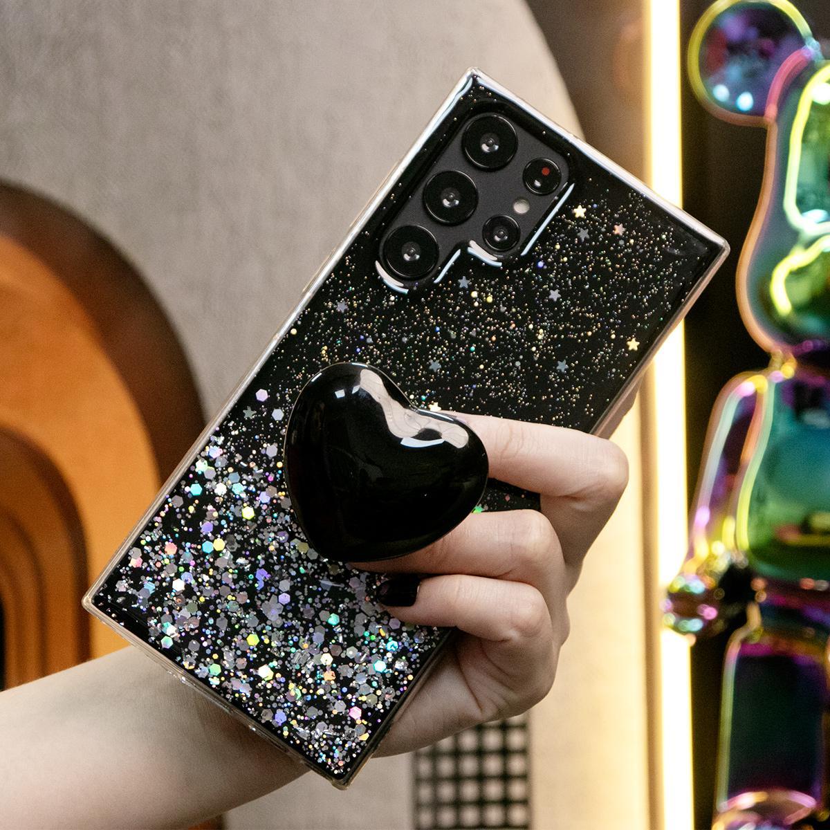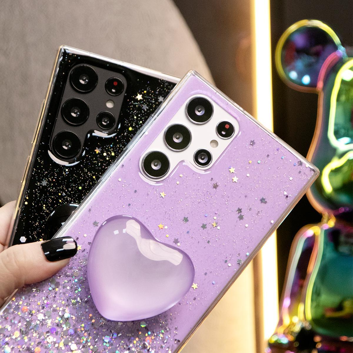 Glitter Star Sequin Crystal Love Heart Stand Phone Case For Samsung Galaxy S24Ultra S24FE S24 S23 S22 S21 FE Note20 Ultra A15 A25 A35 A55 Clear Soft TPU Back Cover