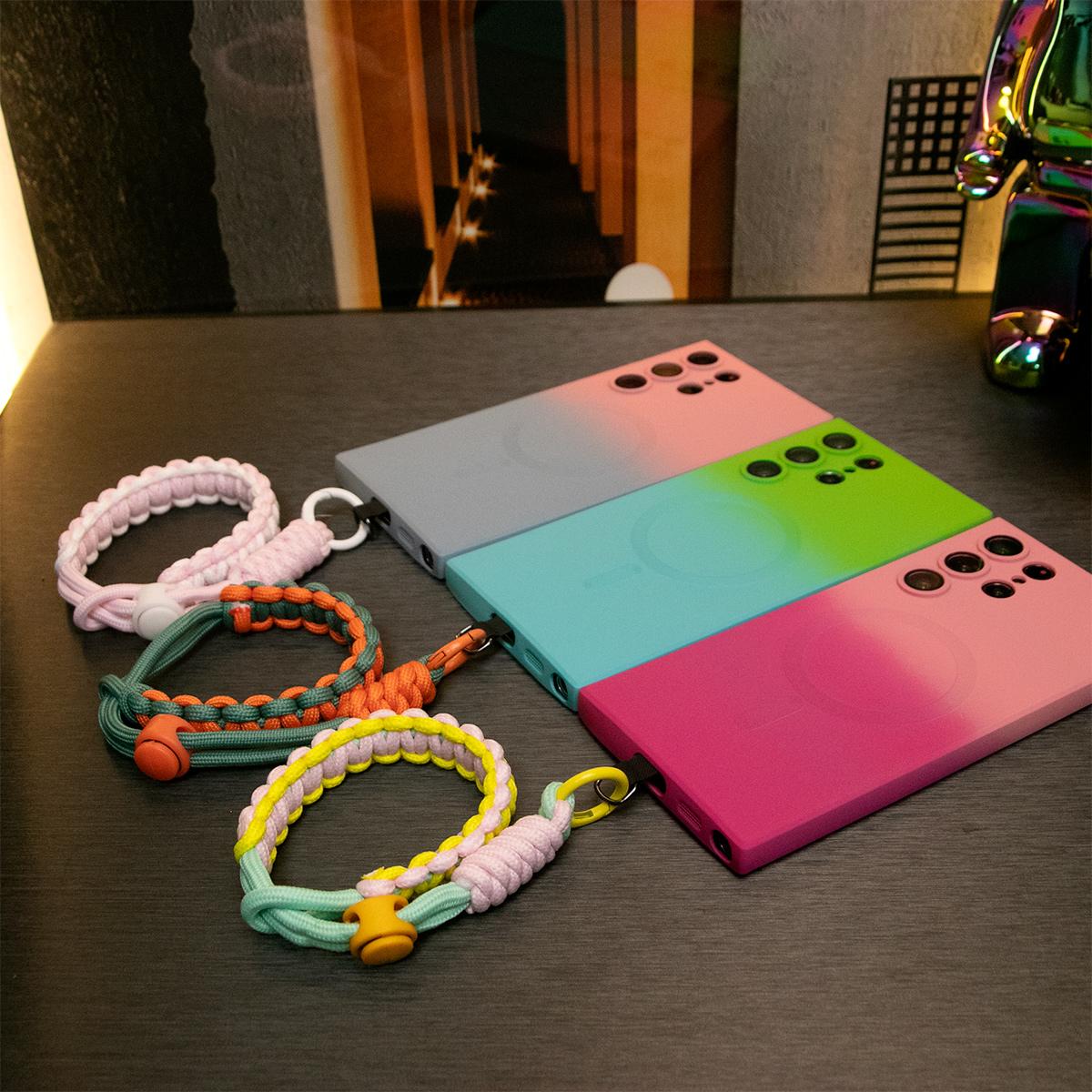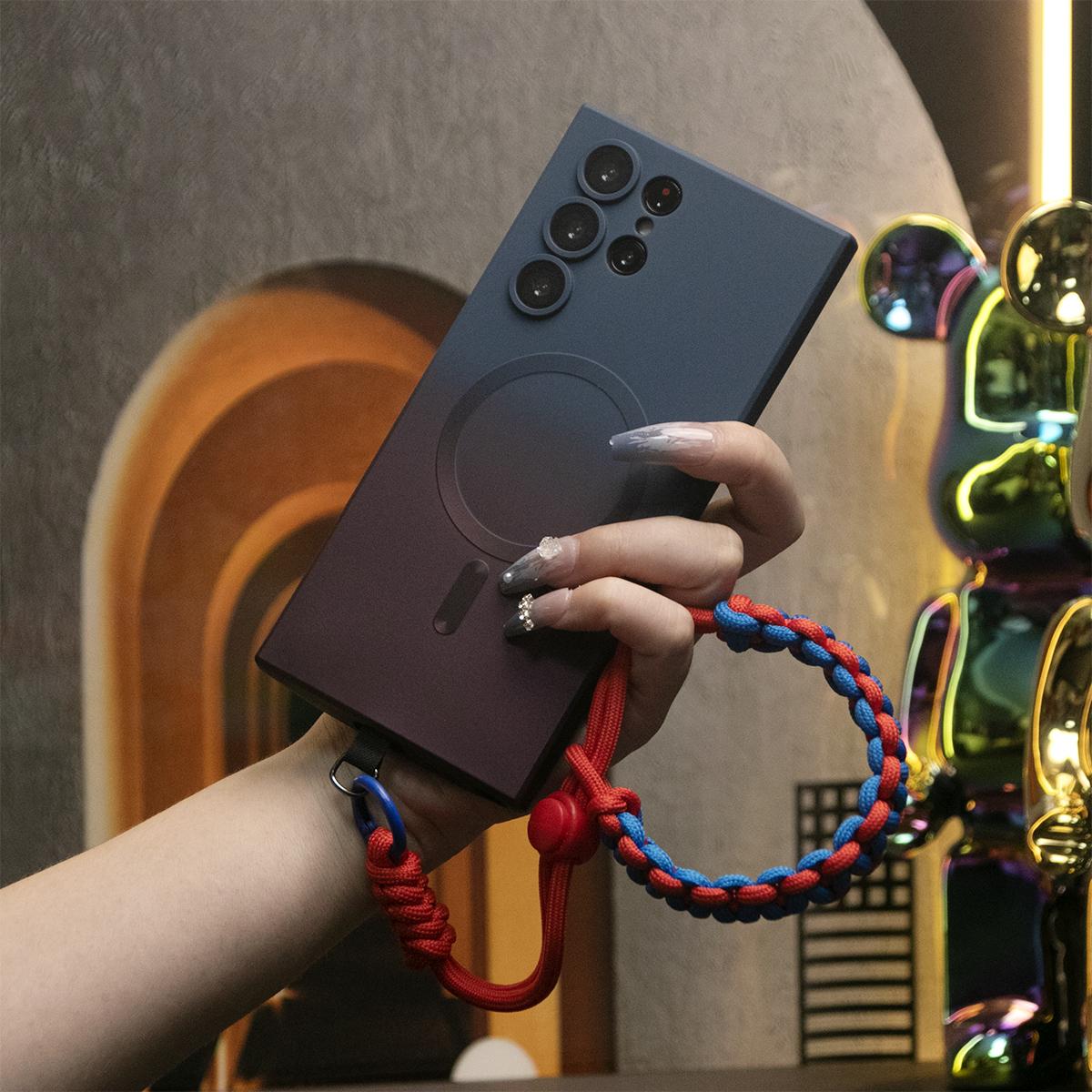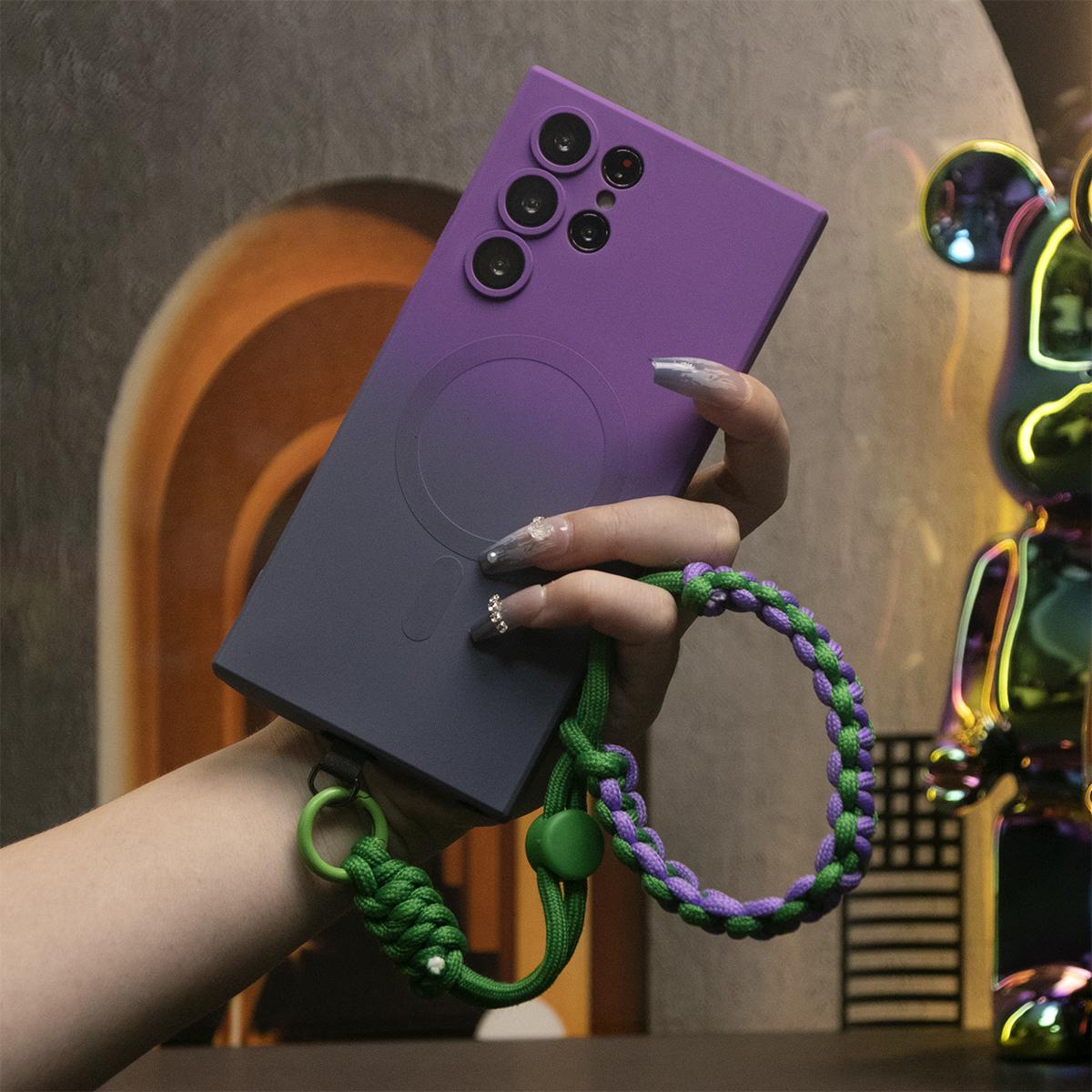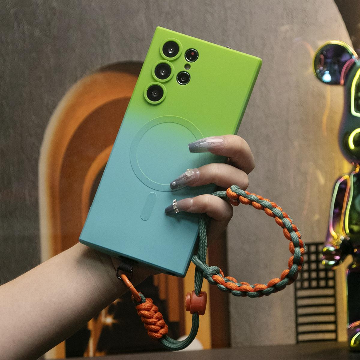 Gradient Color Magnetic Wireless Charge Matte Case With Adjustable Woven Strap For Samsung S25 S24 S23 S22 S21 Note20 Wireless Charging Soft Bumper Cover