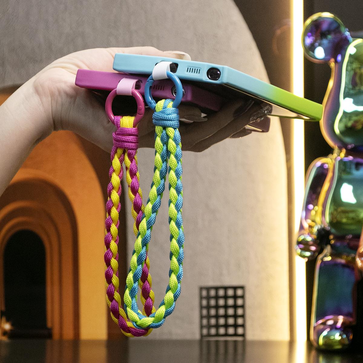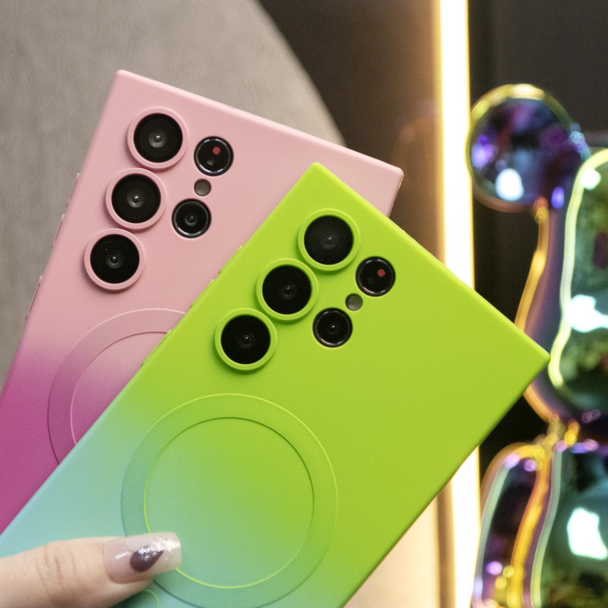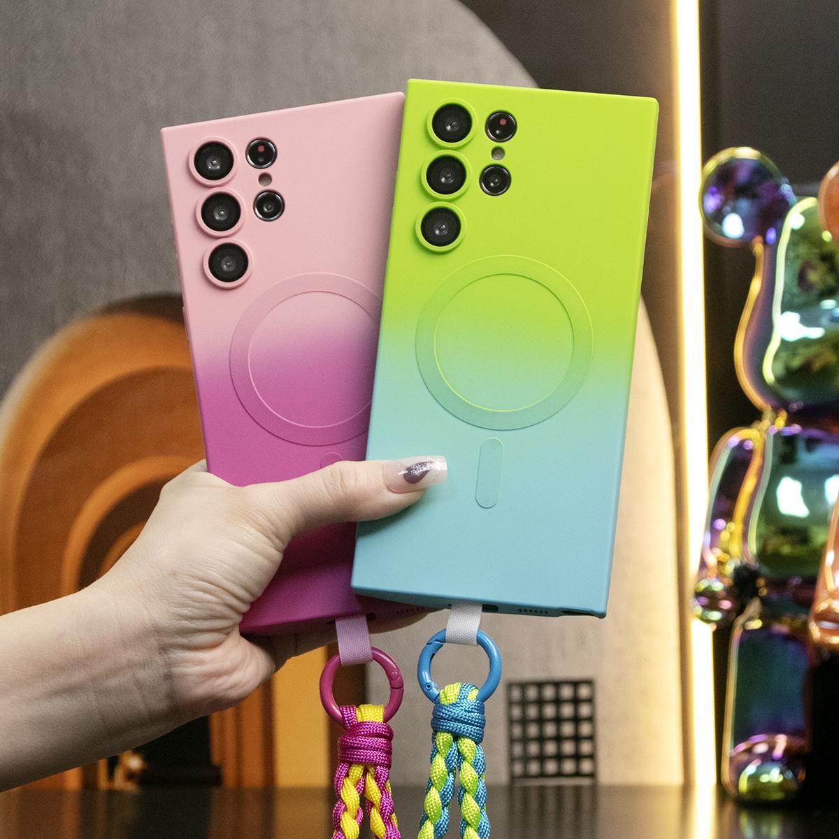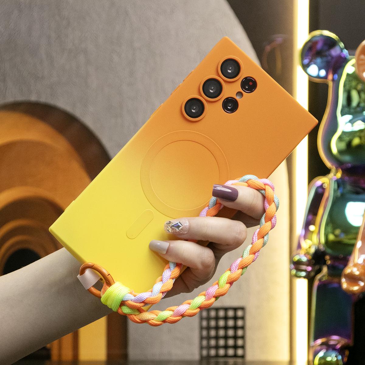 Gradient Color Magnetic Wireless Charge Matte Case with Woven Wristband For Samsung S25 S24 S23 S22 S21 Note20 Wireless Charging Soft Bumper Cover