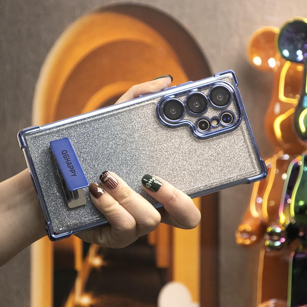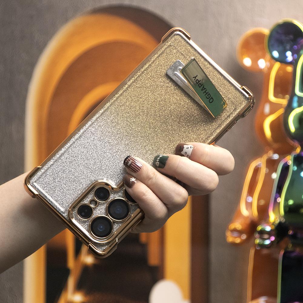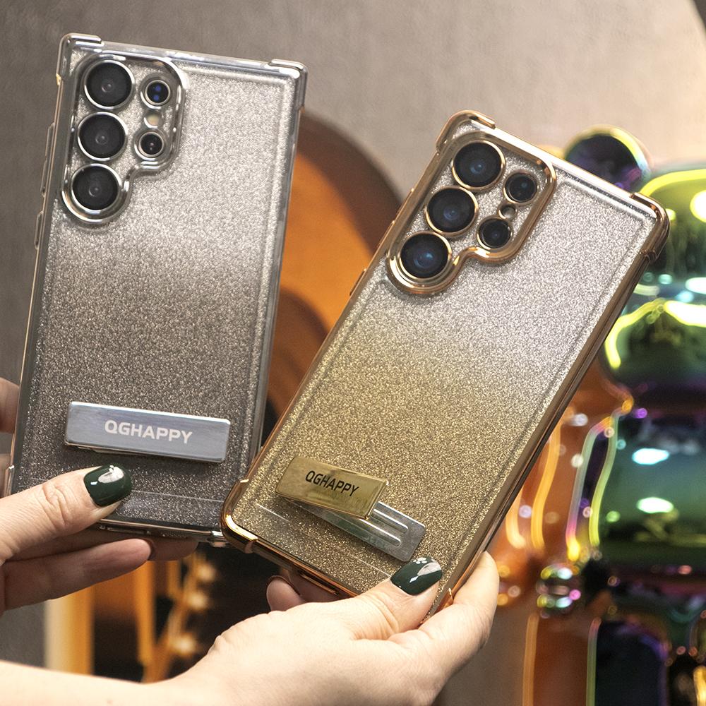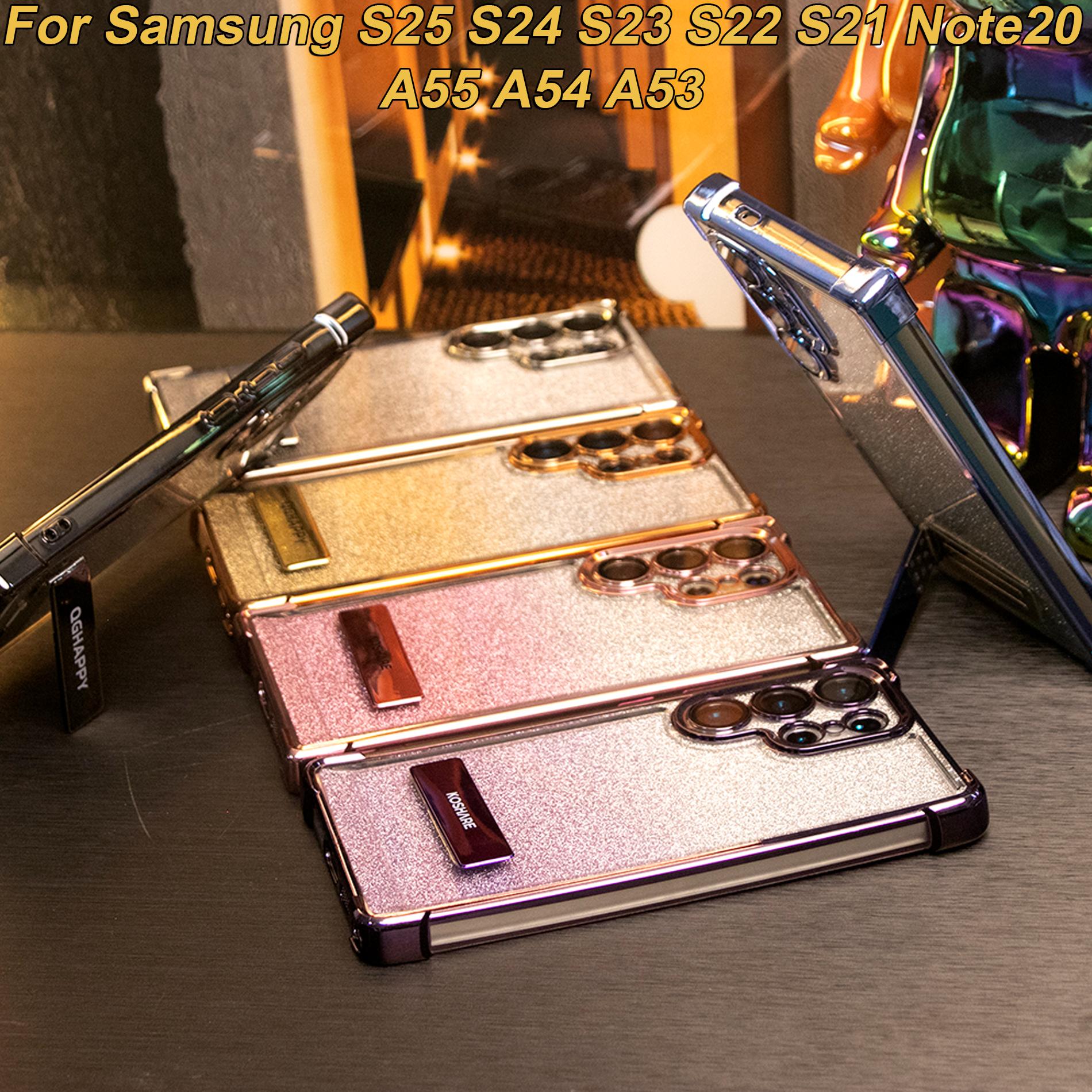 Gradient Plating Four Corners Thin Kickstand Phone Case for Samsung S25Ultra S25 S24 S23 S22 S21 Note20 A53 A54 A55 Hard Acrylic Bumper Full Cover