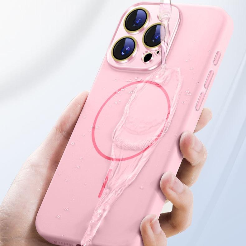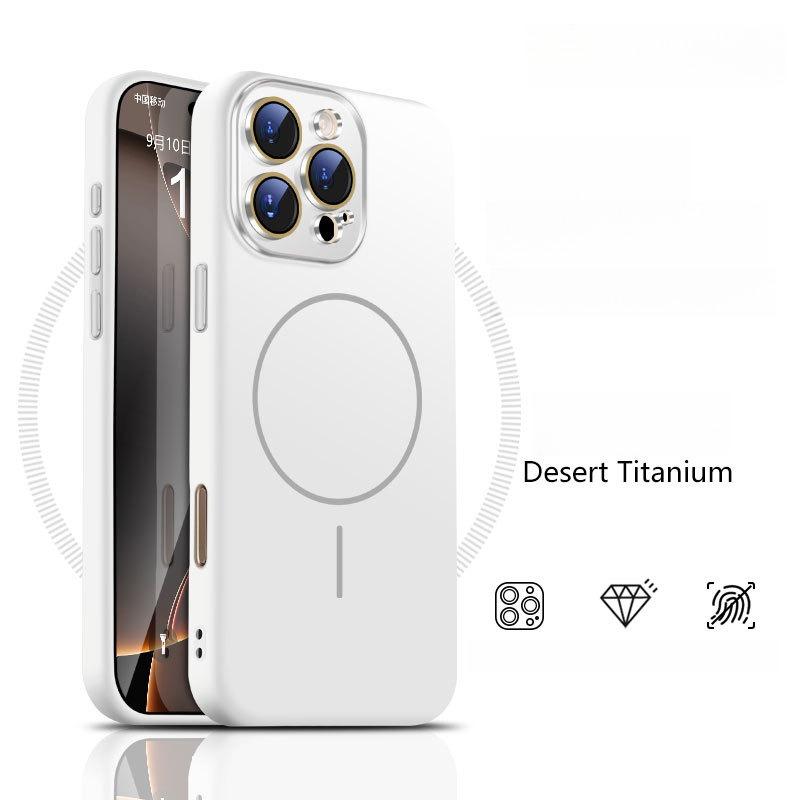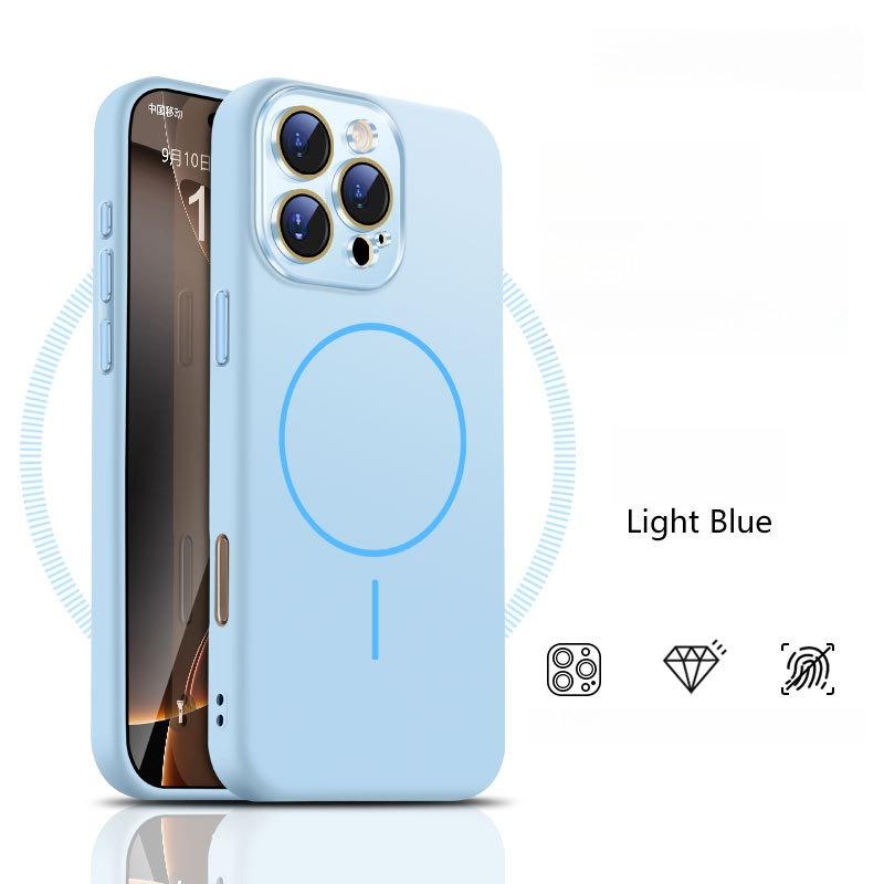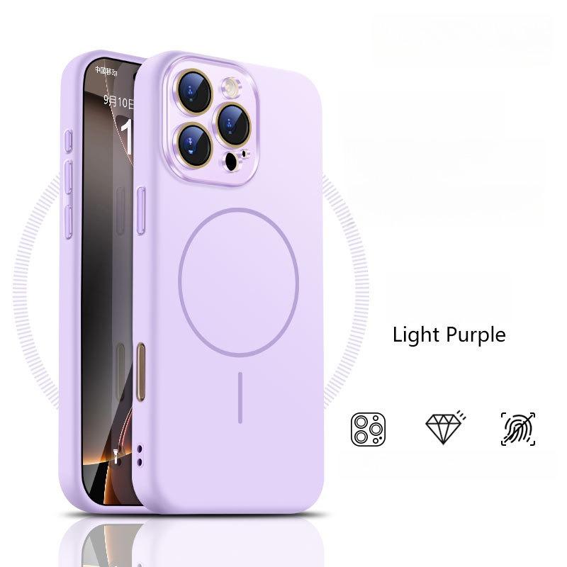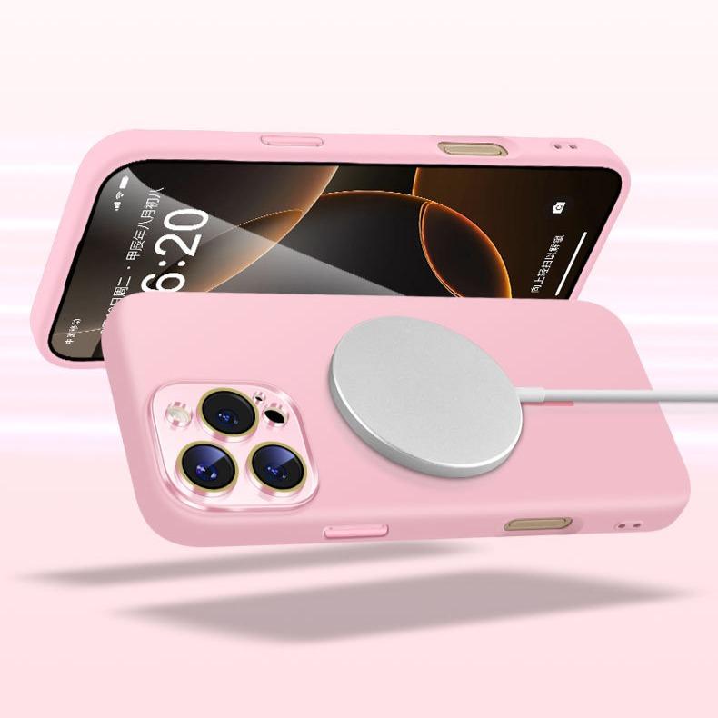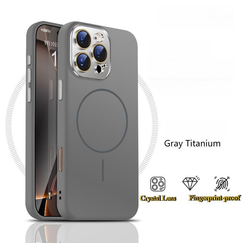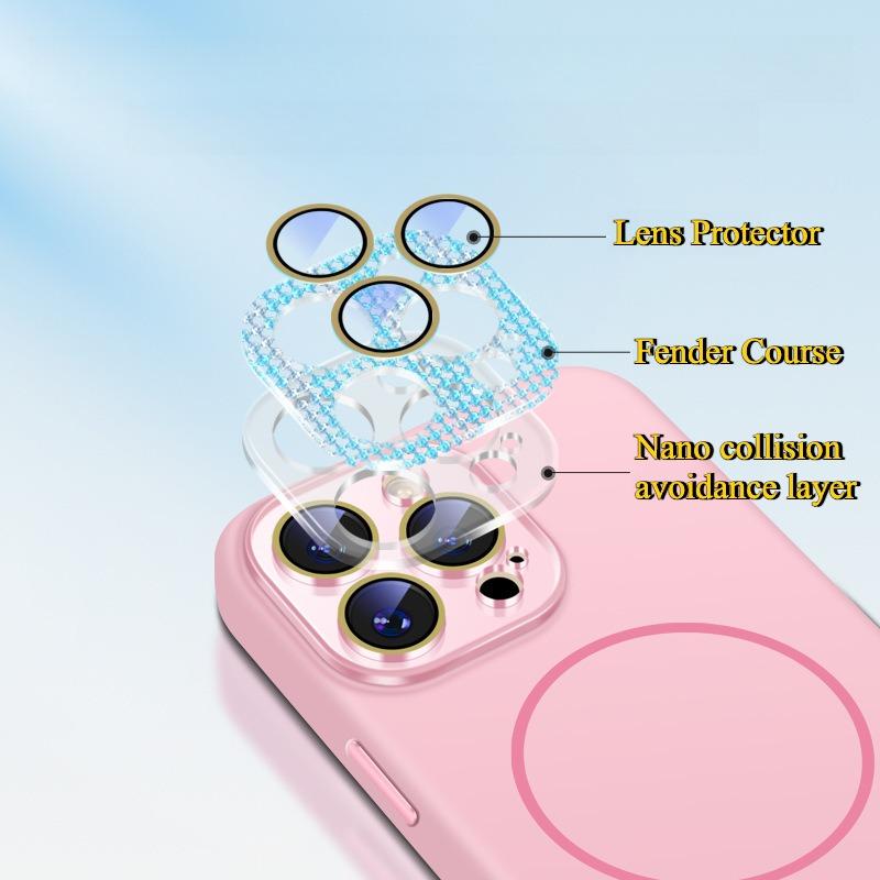 Liquid Silicone Fine Ring Strong Magnetic Precision Crystal Len Protector Fingerprint-proof Phone Case For iPhone 16ProMax 15 14, Soft Skin Feel Shockproof Soft Full Cover