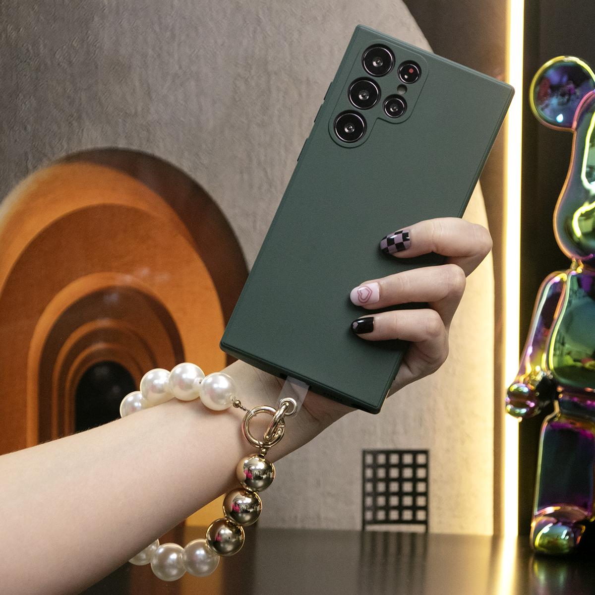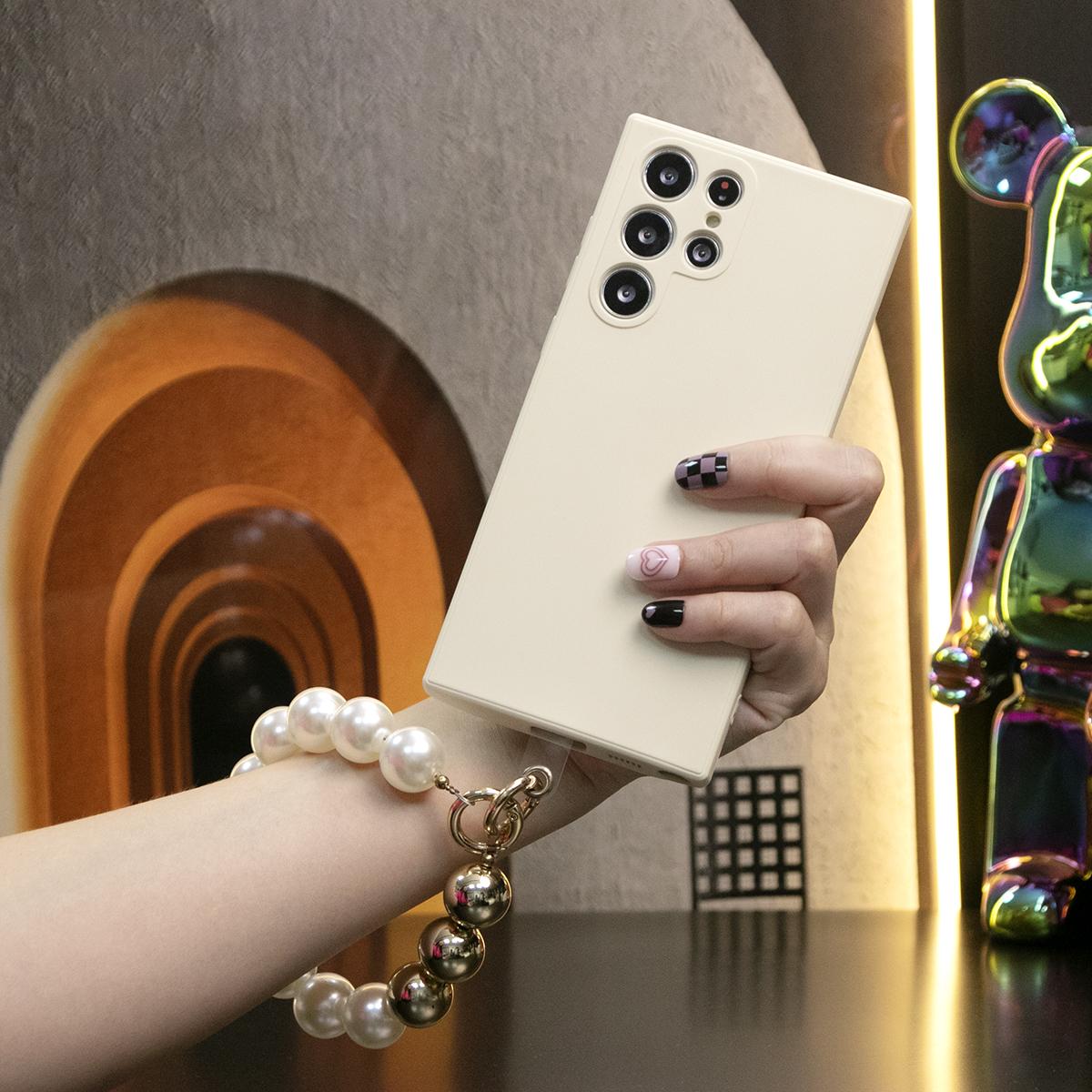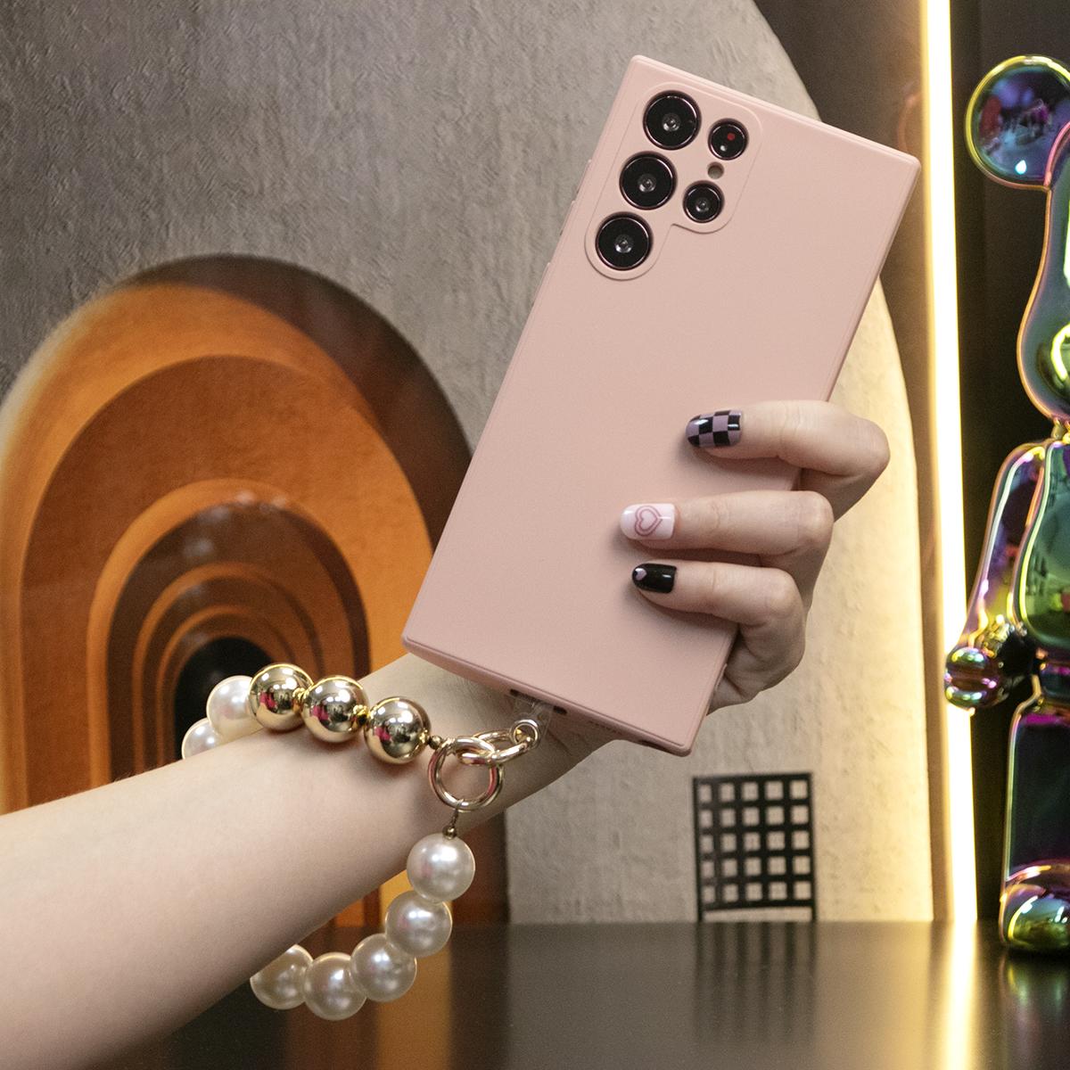 Liquid Silicone Matte Shockproof Phone Case with Pearl Metal Lanyard For Samsung S24Ultra S24FE S24 S23 S22Ultra S21Ultra S23Plus S23Ultra Note20Ultra Camera Protect Soft Cover