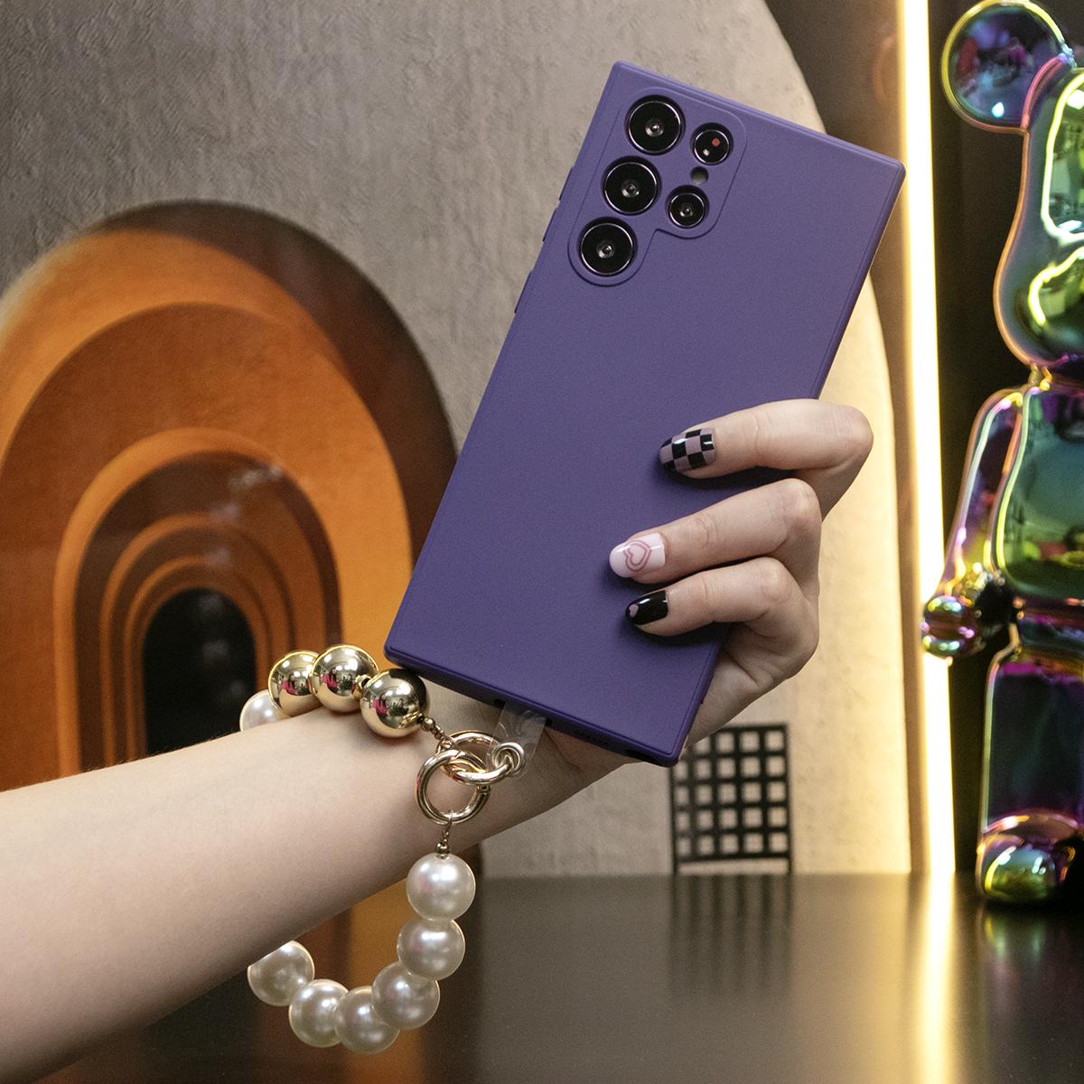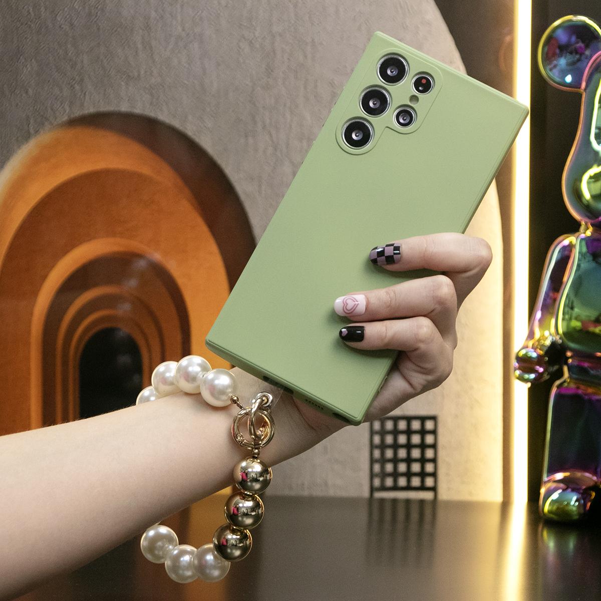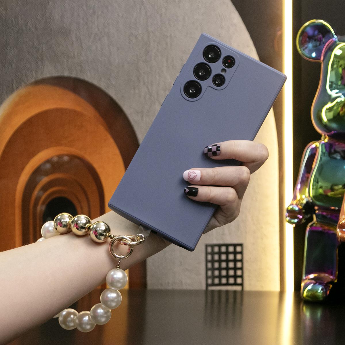 Liquid Silicone Matte Shockproof Phone Case with Pearl Metal Lanyard For Samsung S24Ultra S24FE S24 S23 S22Ultra S21Ultra S23Plus S23Ultra Note20Ultra Camera Protect Soft Cover