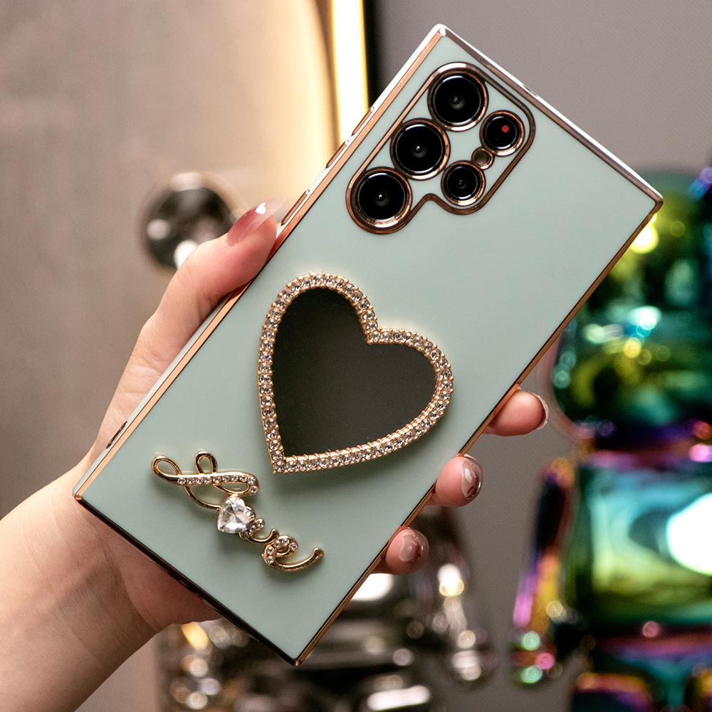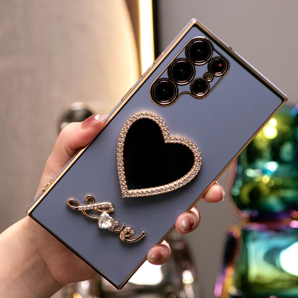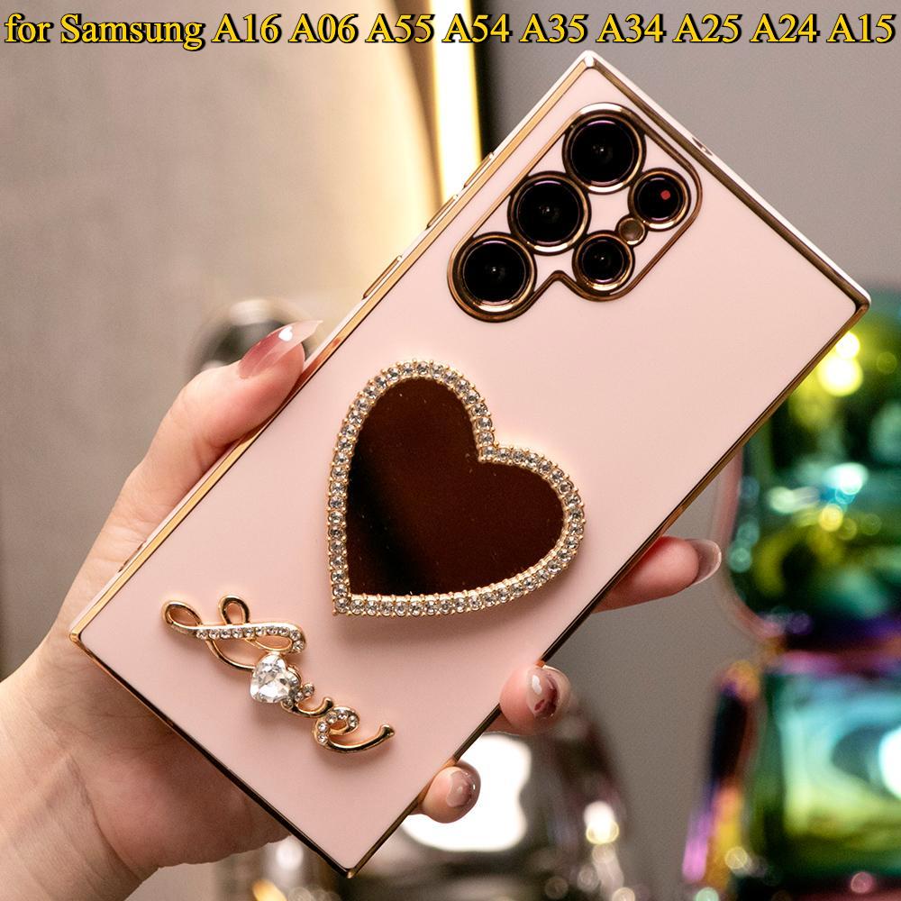 Love Heart Mirror Plating Phone Case for Samsung A16 A06 A55 A54 A35 A34 A25 A24 A15