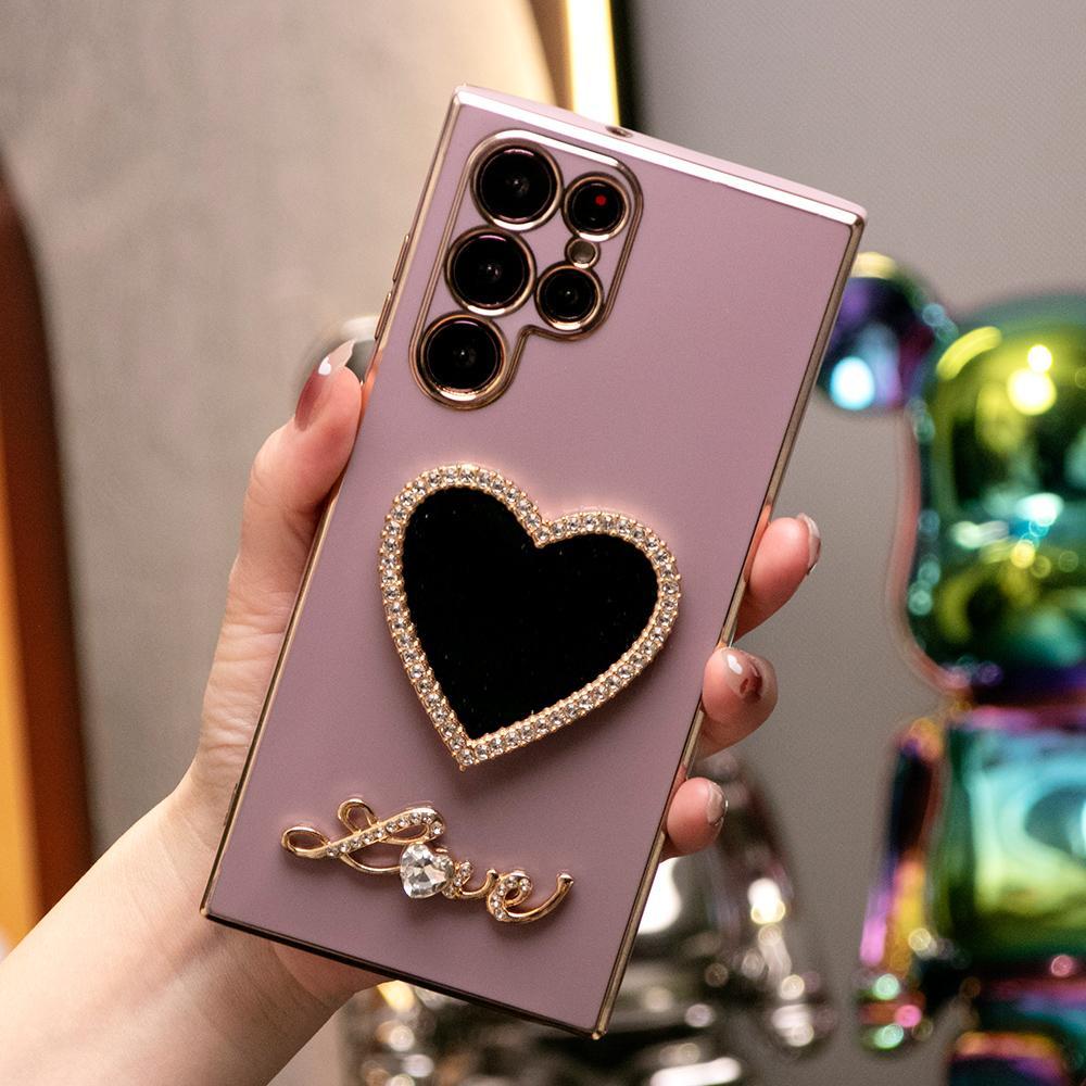 Love Heart Mirror Plating Soft Phone Case for Samsung A13 A14 A15 A23 A24 A25 A33 A34 A35 A52 A53 A54 A55 A72 A73