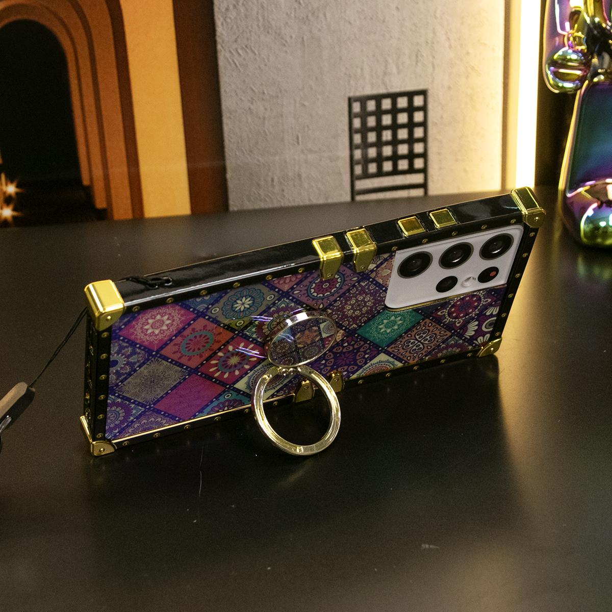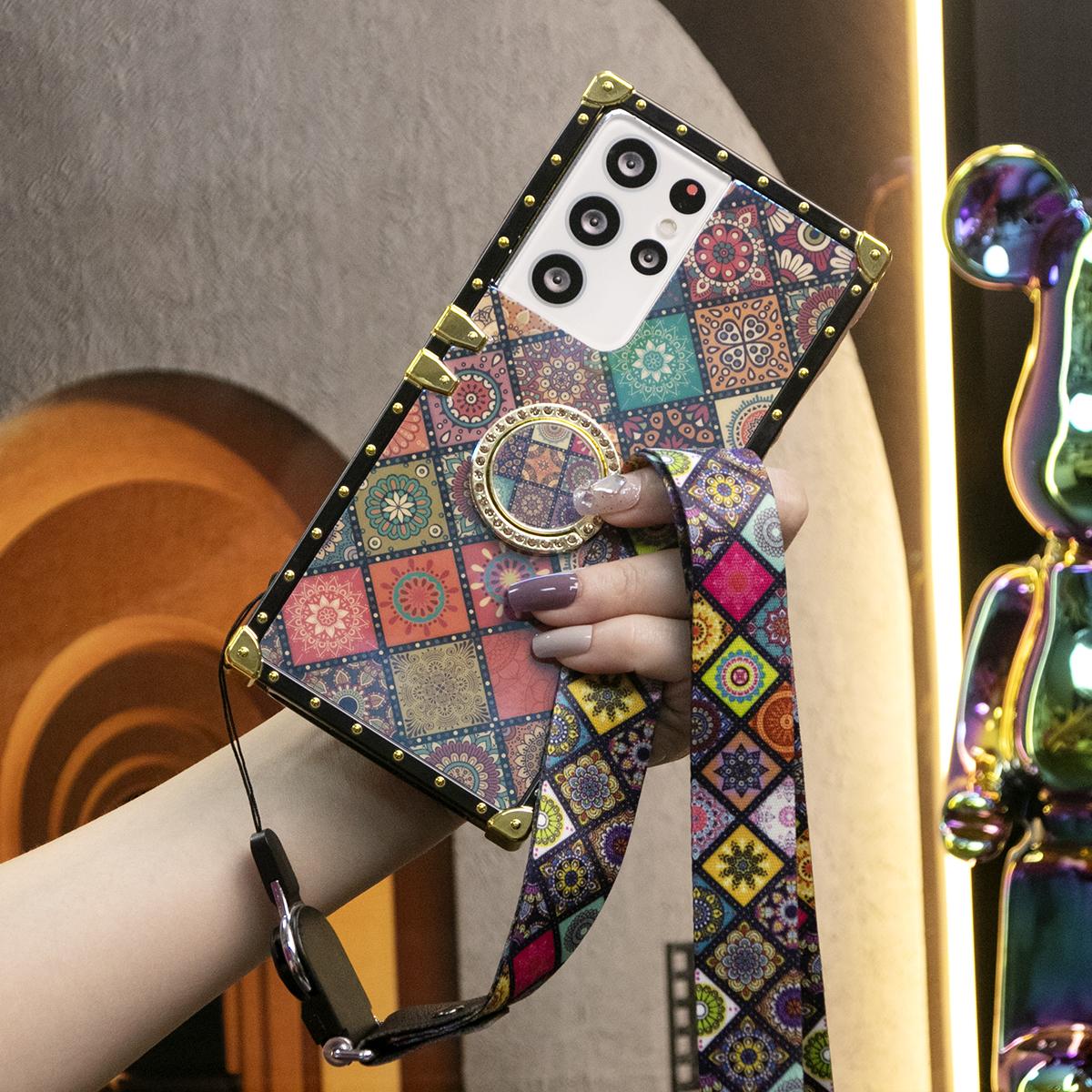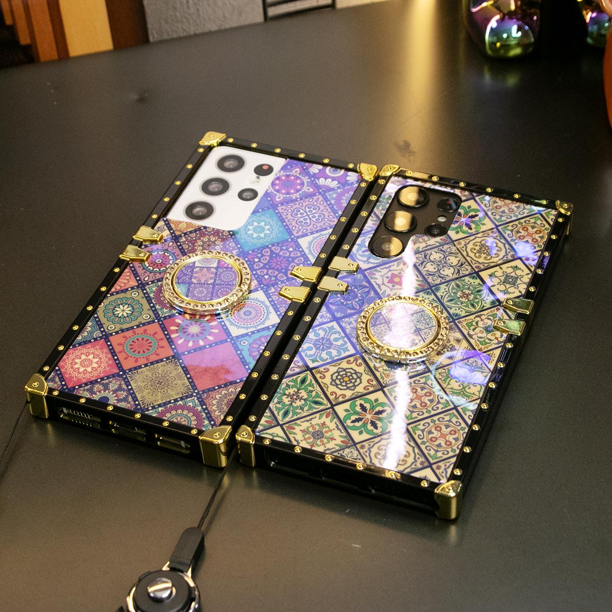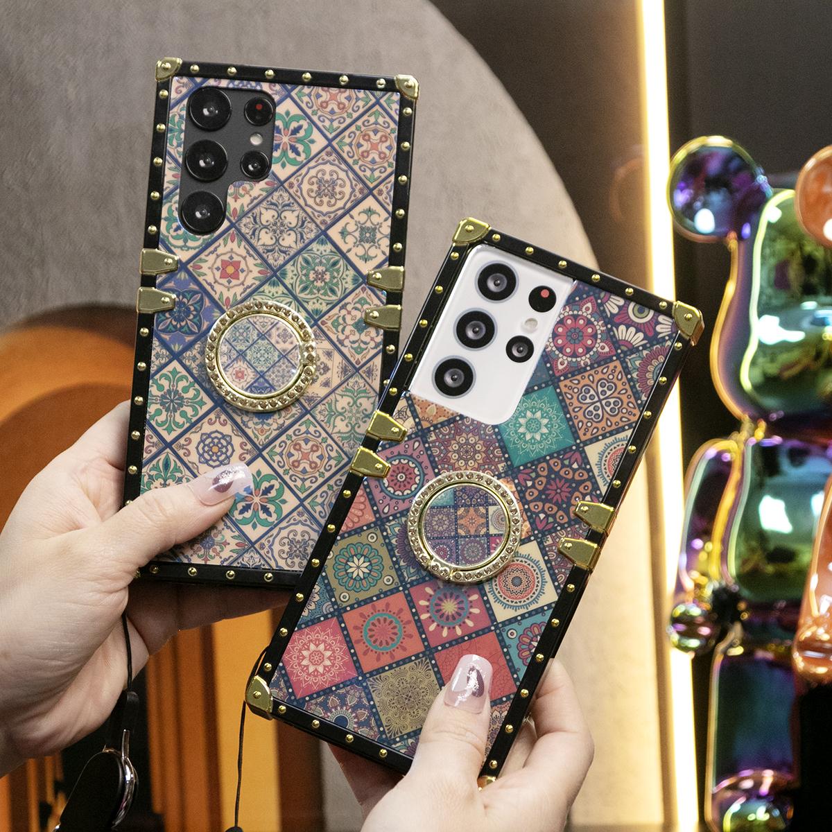 Luxury Glitter Retro Flower Pattern Cover For Samsung Galaxy S24 S21 S22 S23Ultra Fashion Geometric Square Case For Samsung A74 A73 A72 A71 A55 A54 A53 A52 A35 A34 A24 A25 A14 A15