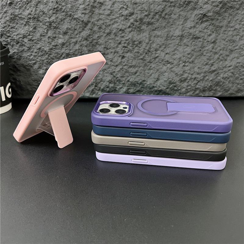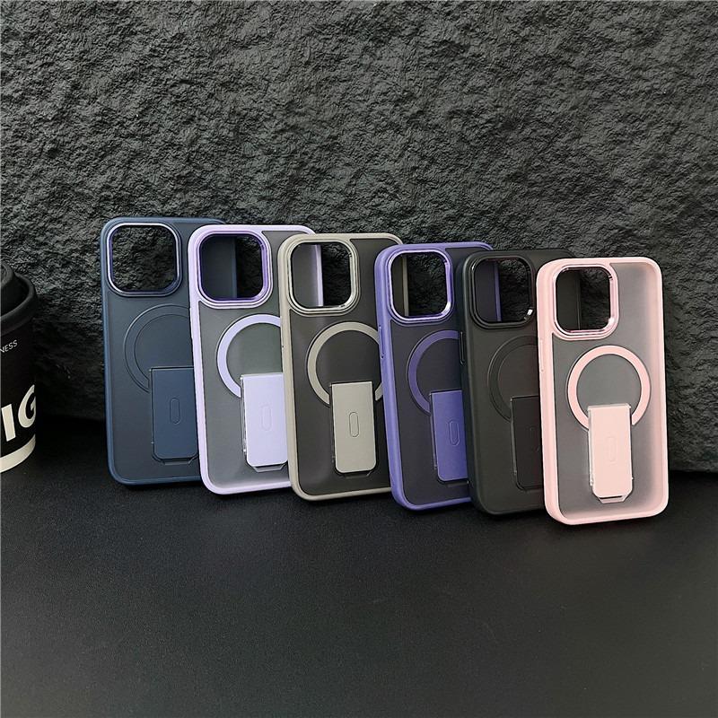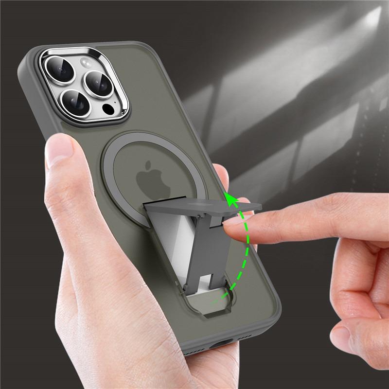 Luxury Matte Clear Kickstand Support Magnetic Phone Case For iPhone 16 15 14 13 12 11 for MagSafe Not Yellowing Skin Feel Hard Full Cover
