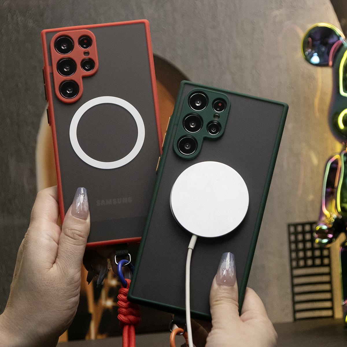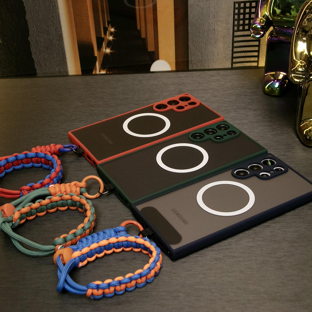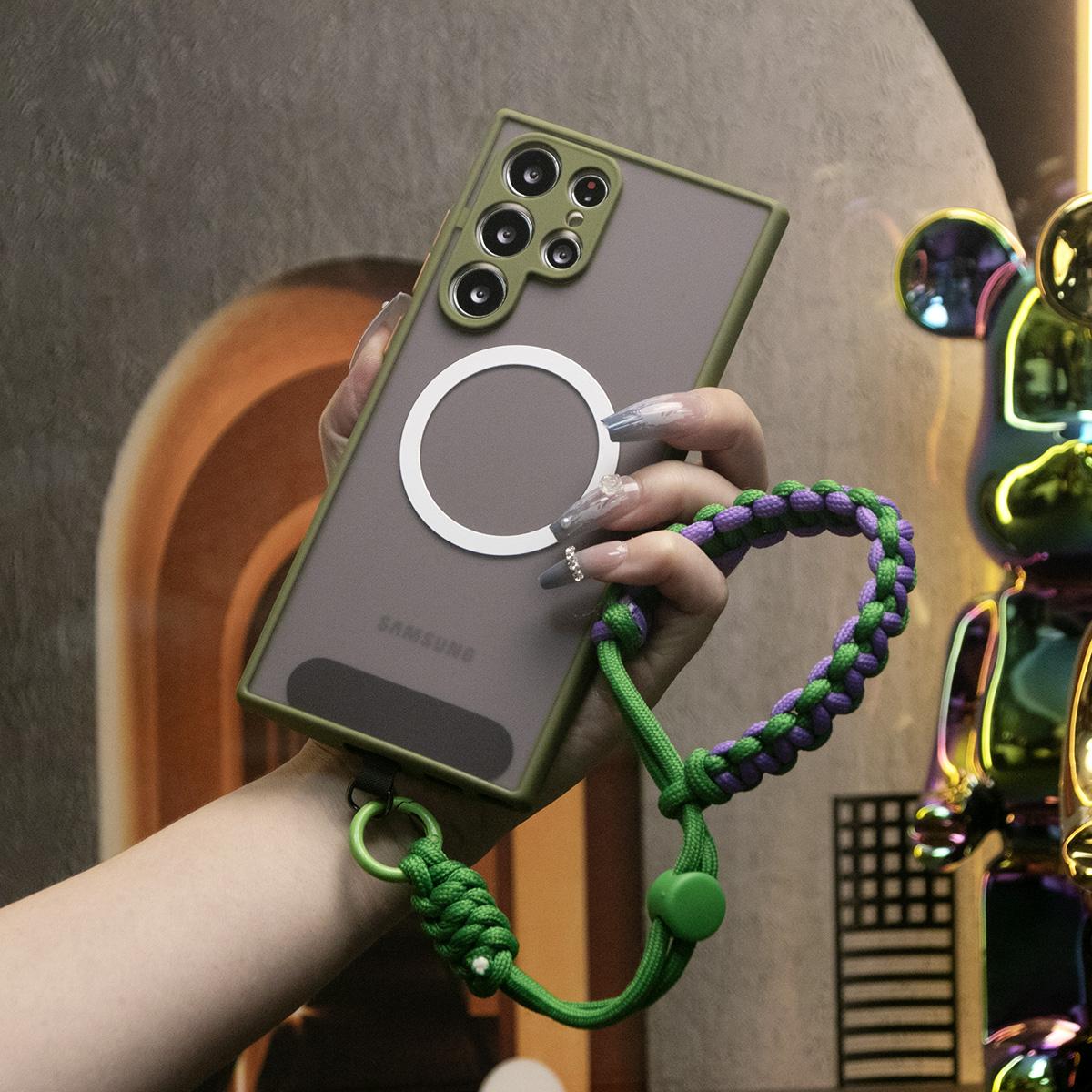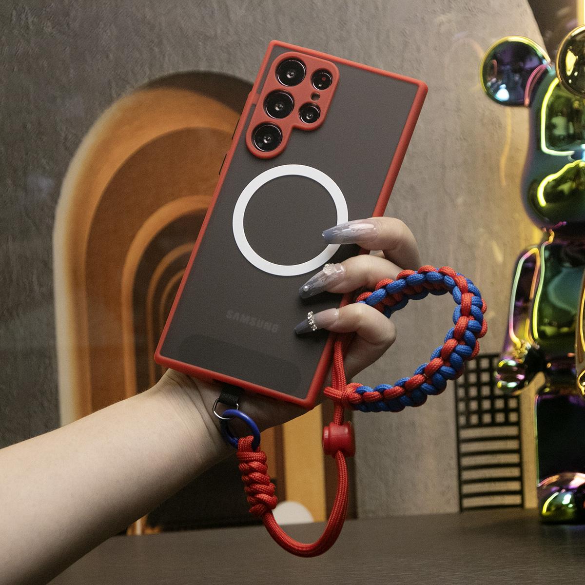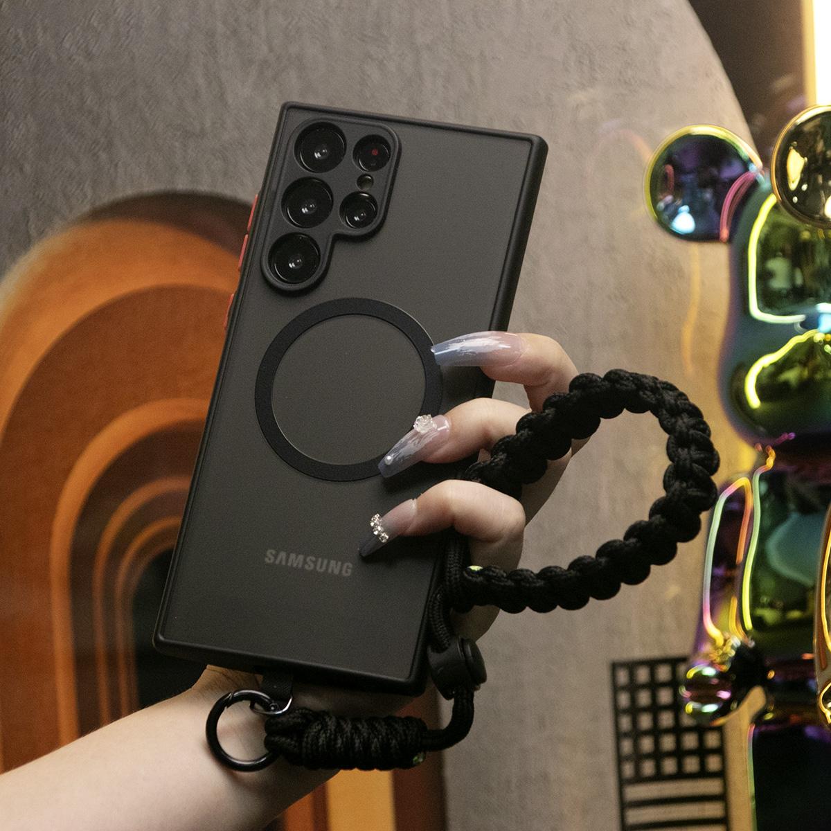 Luxury Matte Clear Support Magnetic With Adjustable Woven Strap For Samsung S25 S24 S23 S22 S21 Note20