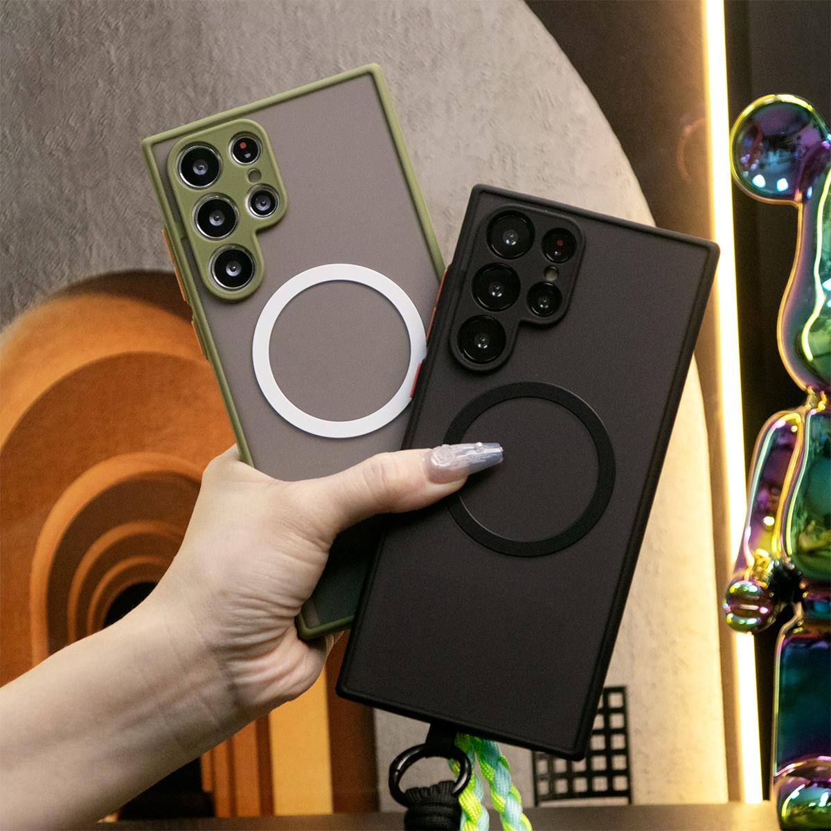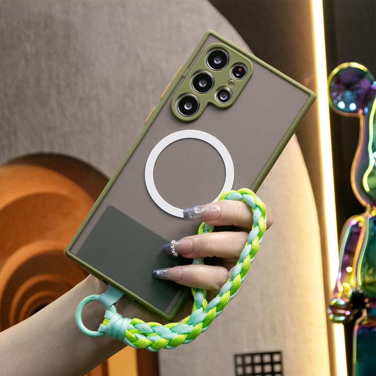 Luxury Matte Clear Support Magnetic With Woven Wristband For Samsung S25 S24 S23 S22 S21 Note20 A16 A15 A25 A35 A55