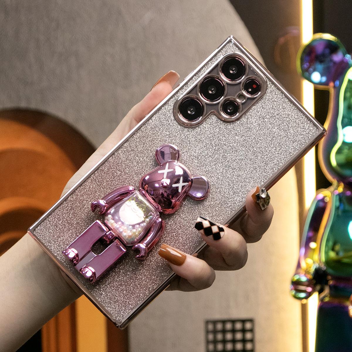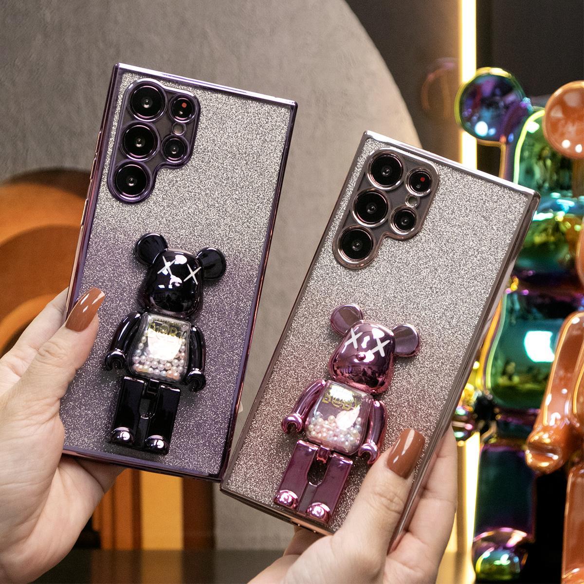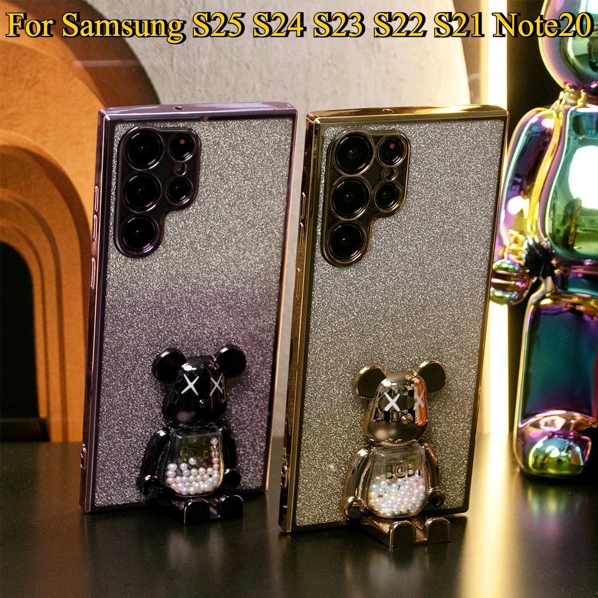 Luxury Plating 3D Candy Bear Glitter Clear Gradient TPU Plating Shockproof Soft Phone Case For Samsung S25 S24 S23 S22 S21 Note20