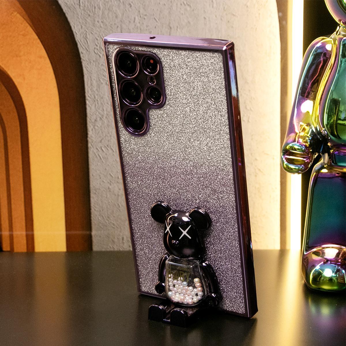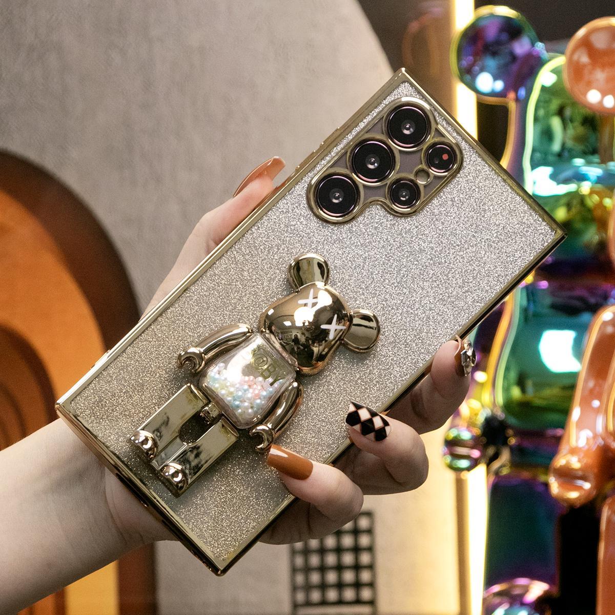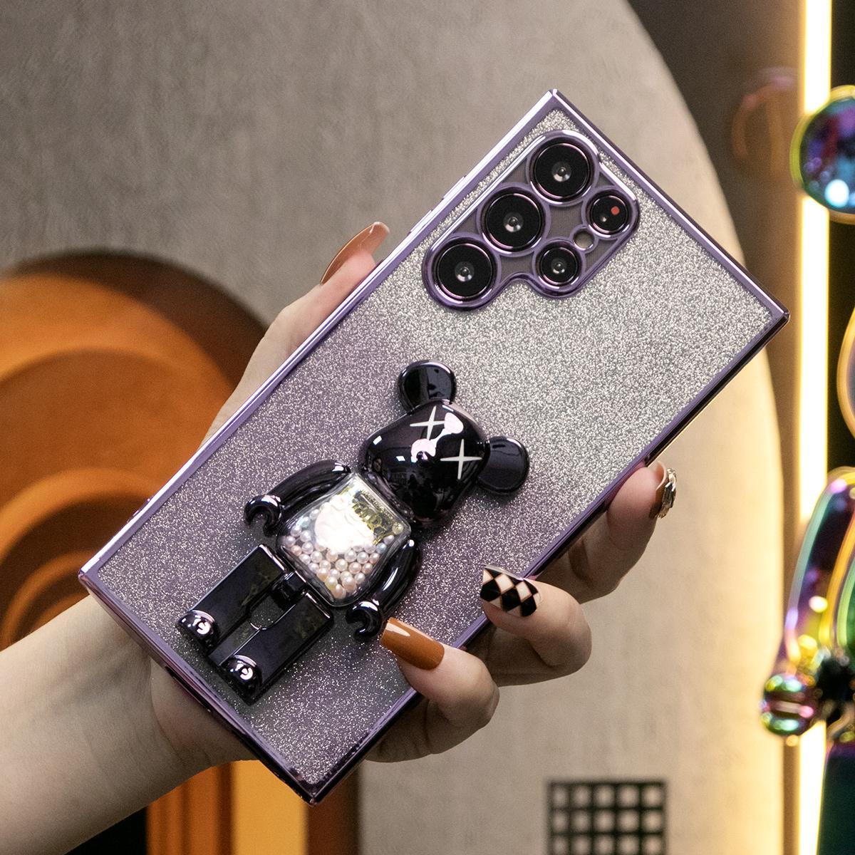 Luxury Plating 3D Candy Bear Glitter Clear Gradient TPU Plating Shockproof Soft Phone Case For Samsung S25 S24 S23 S22 S21 Note20